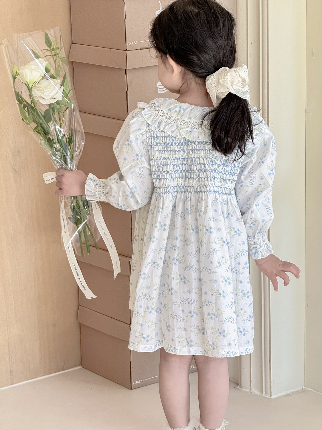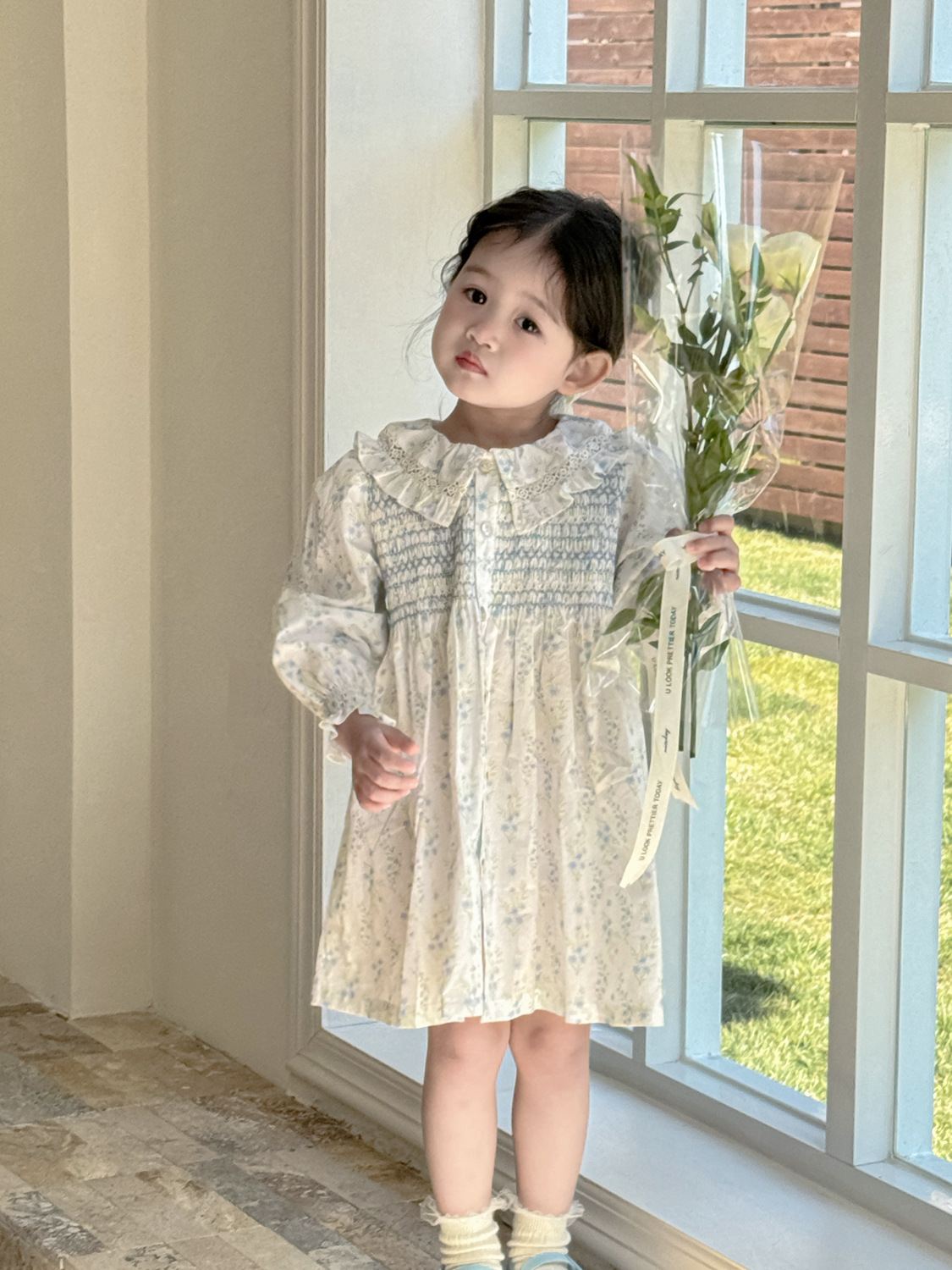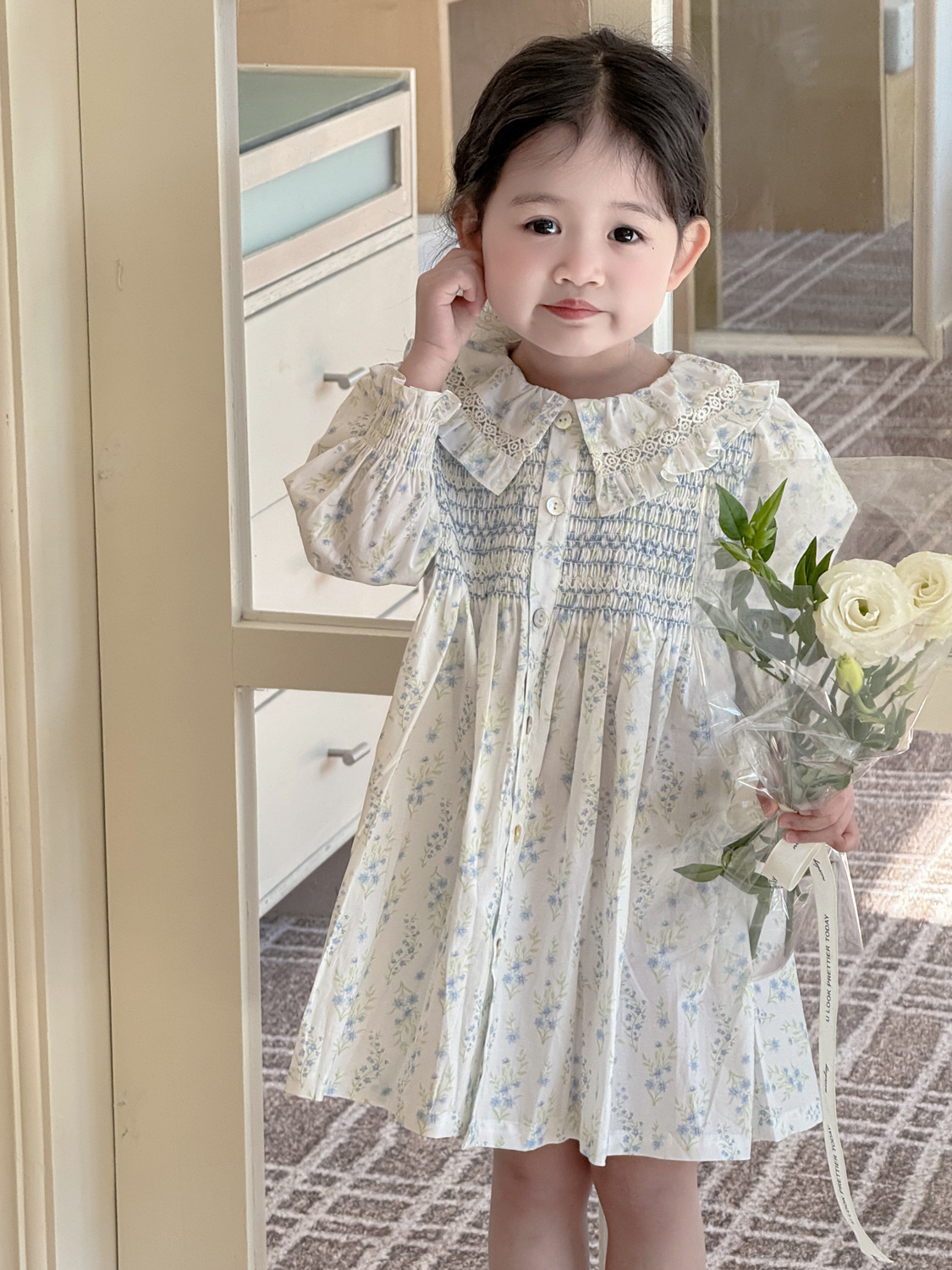 2026년 크로스보더 여아용 원피스, 여자 아기 긴팔 꽃무늬 원피스, 전원풍의 상큼한 면 프린트 원피스스토어 가기