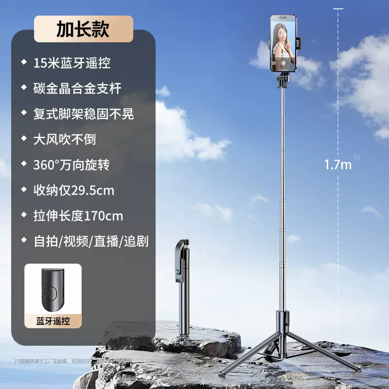 1.7 미터 긴 셀카 스틱 삼각대 다기능 카메라 아티팩트 야외 휴대용 블루투스 범용 휴대 전화 랙