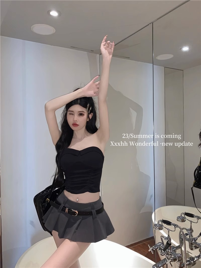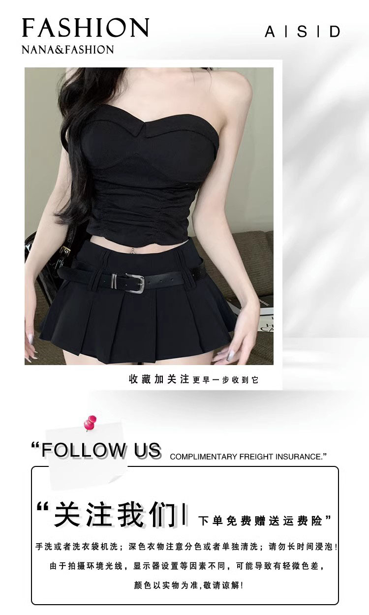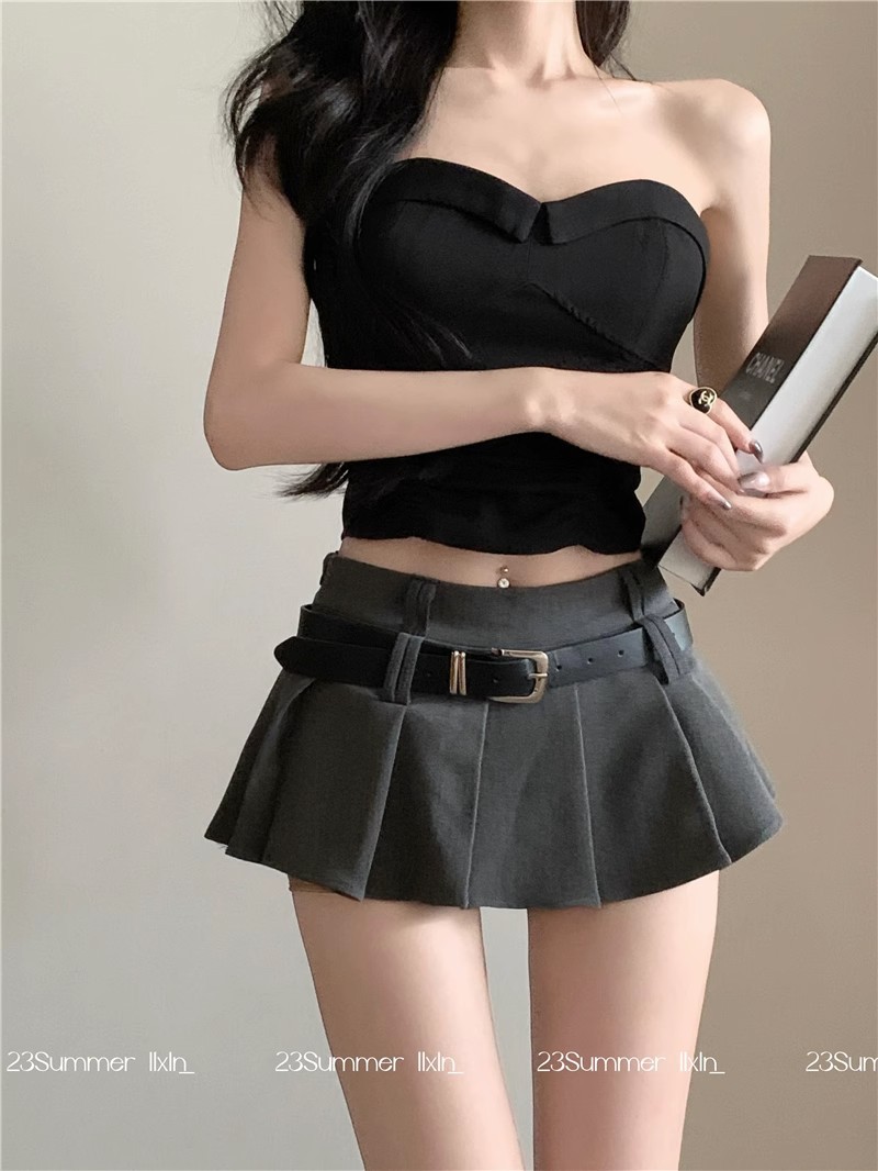 벨트 높은 허리 짧은 치마 봄과 여름 울트라 짧은 치마 섹시한 스파이스 소녀 주름 치마 A-라인 짧은 치마