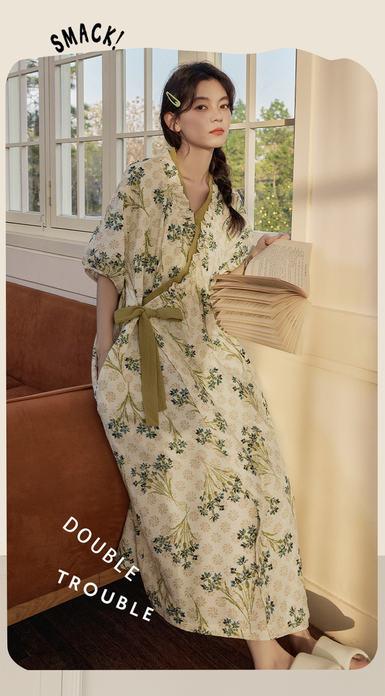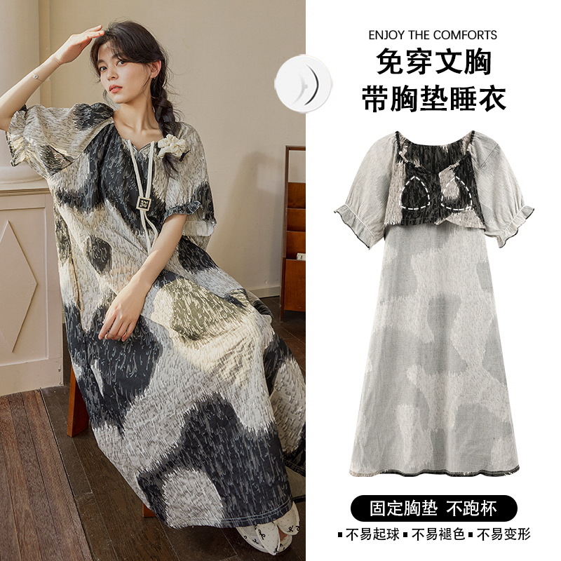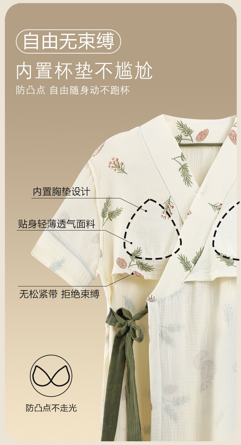 가슴 패드가 있는 반팔 잠옷, 여름 잠옷, 호텔 여성용 여름 성인 목욕 가운, 기모노 잠옷, 홈웨어스토어 가기