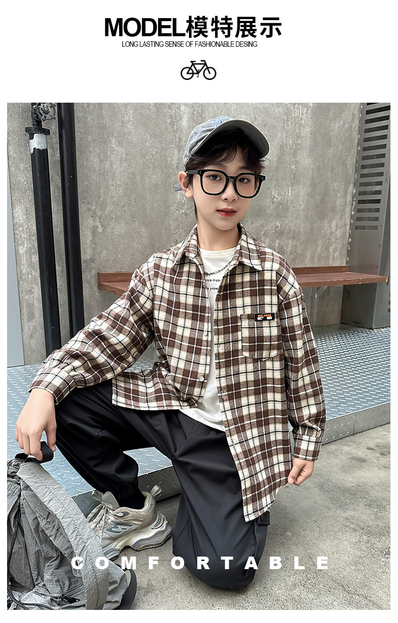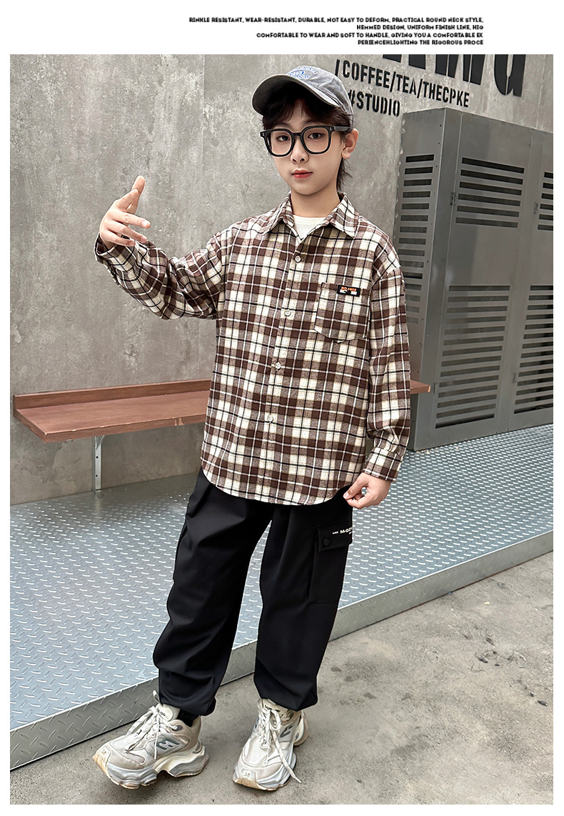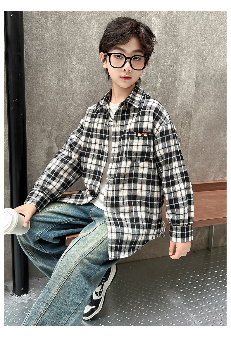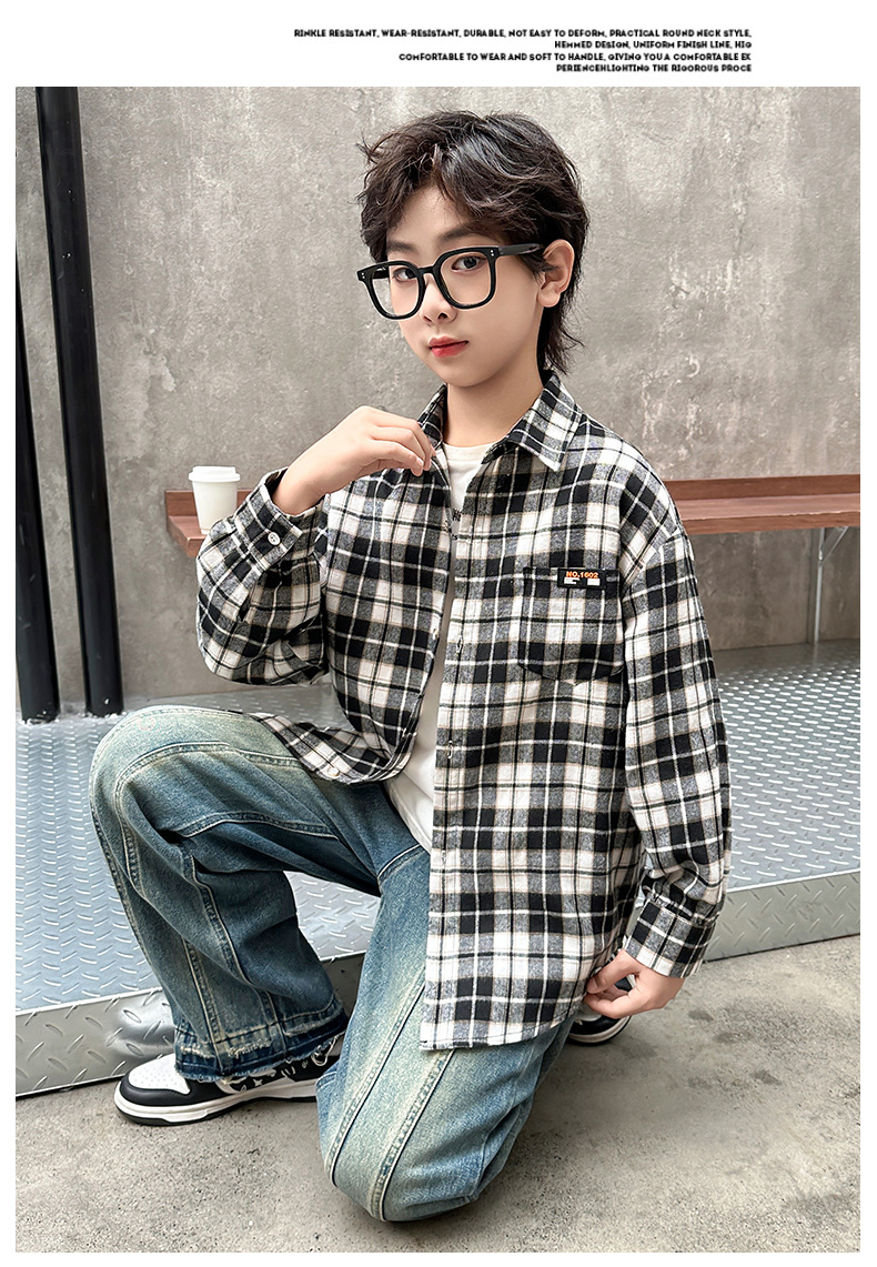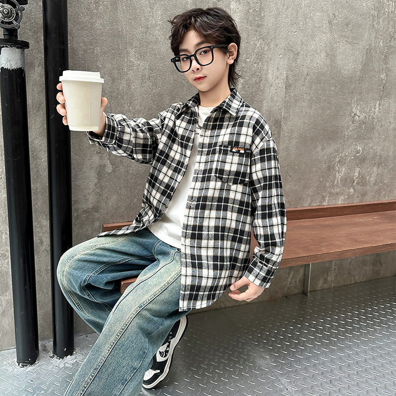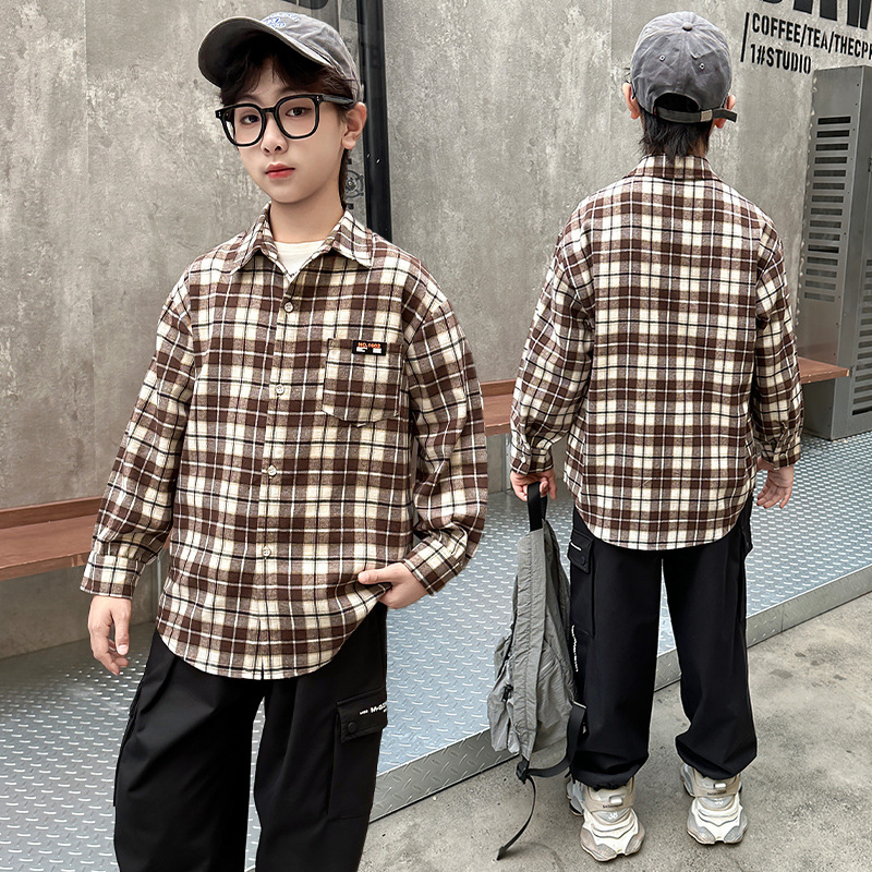 어린이 새로운 유행 어린이 남성 및 여성 격자 무늬 셔츠 2025 면 긴 소매 셔츠 대형 어린이 대형 격자 무늬 캐주얼 셔츠