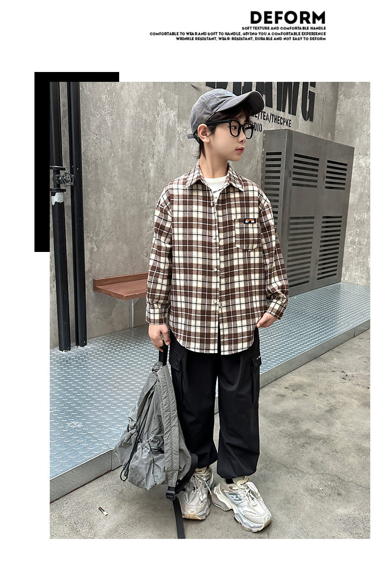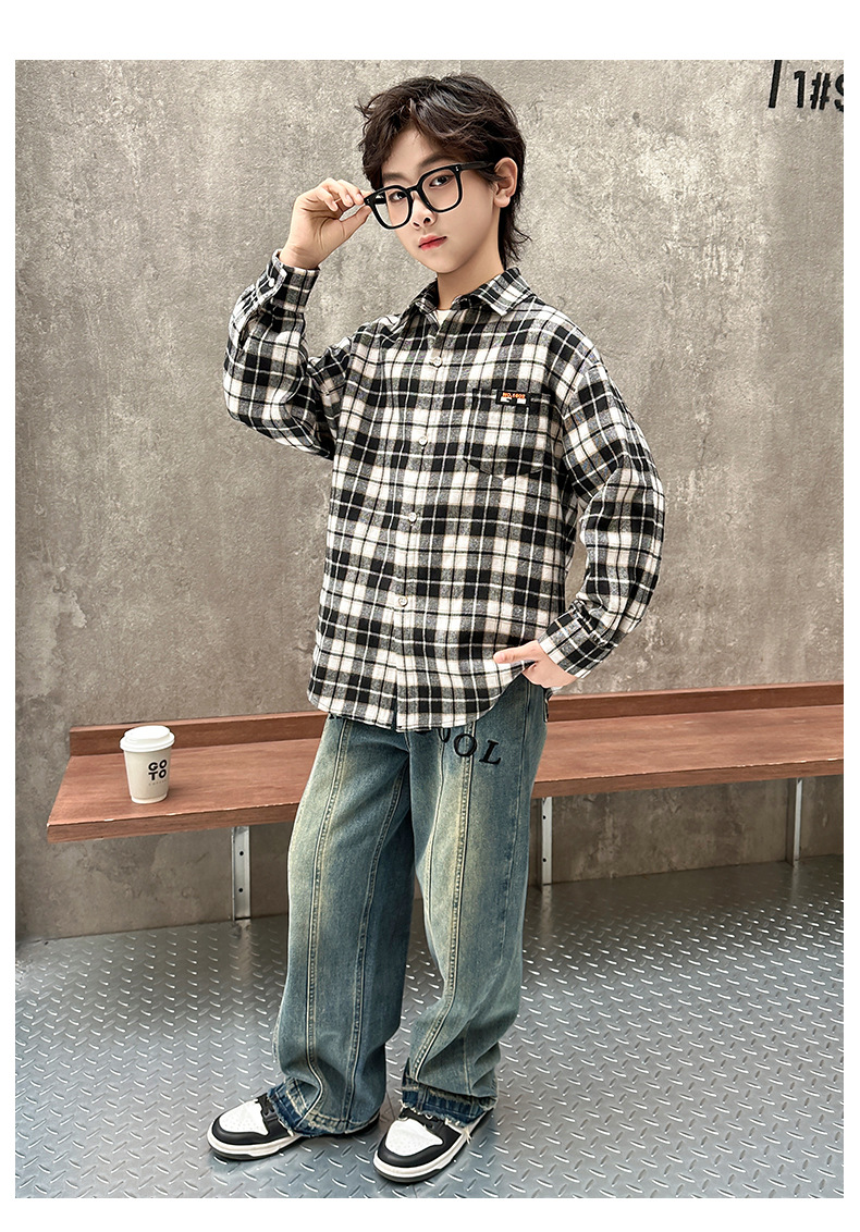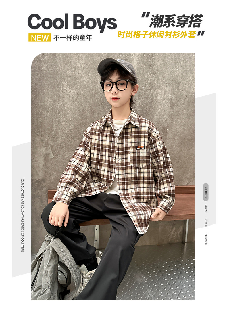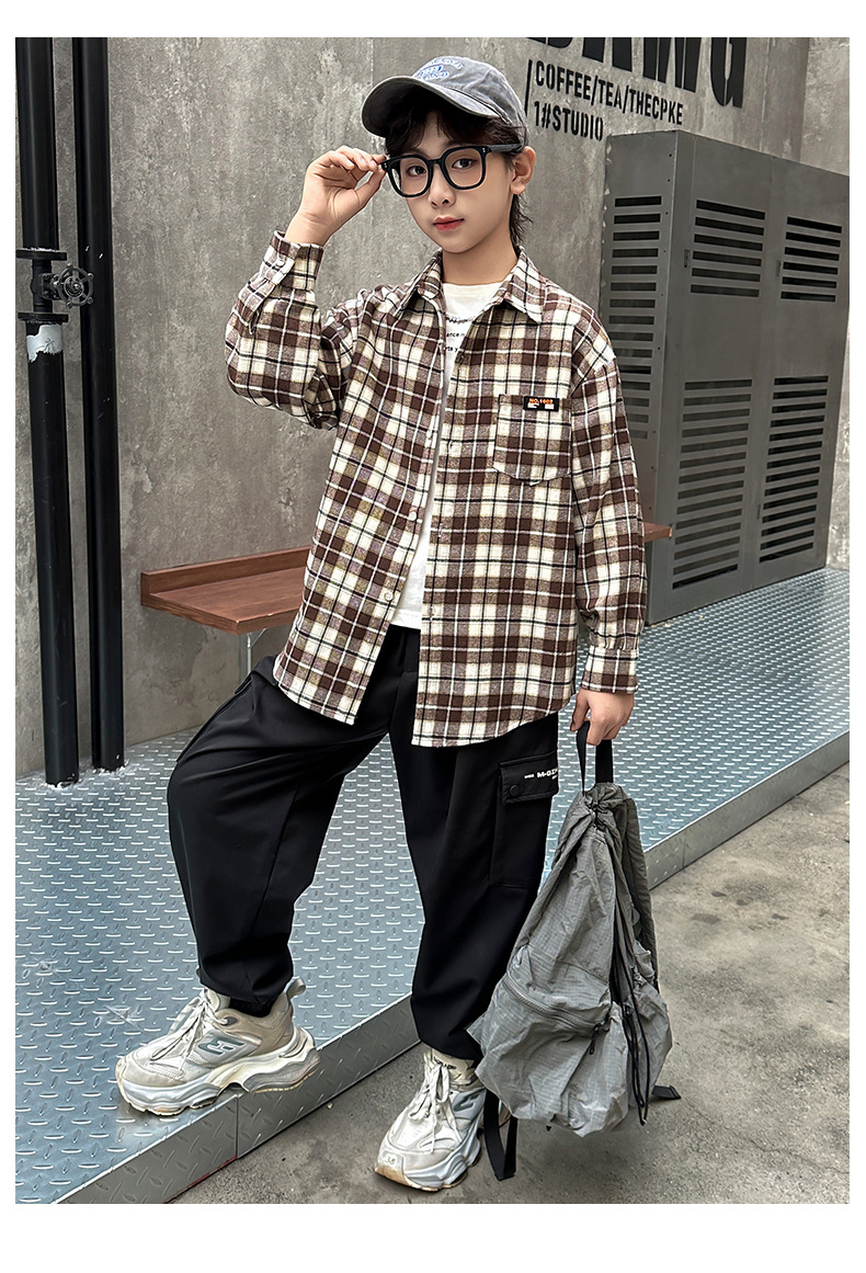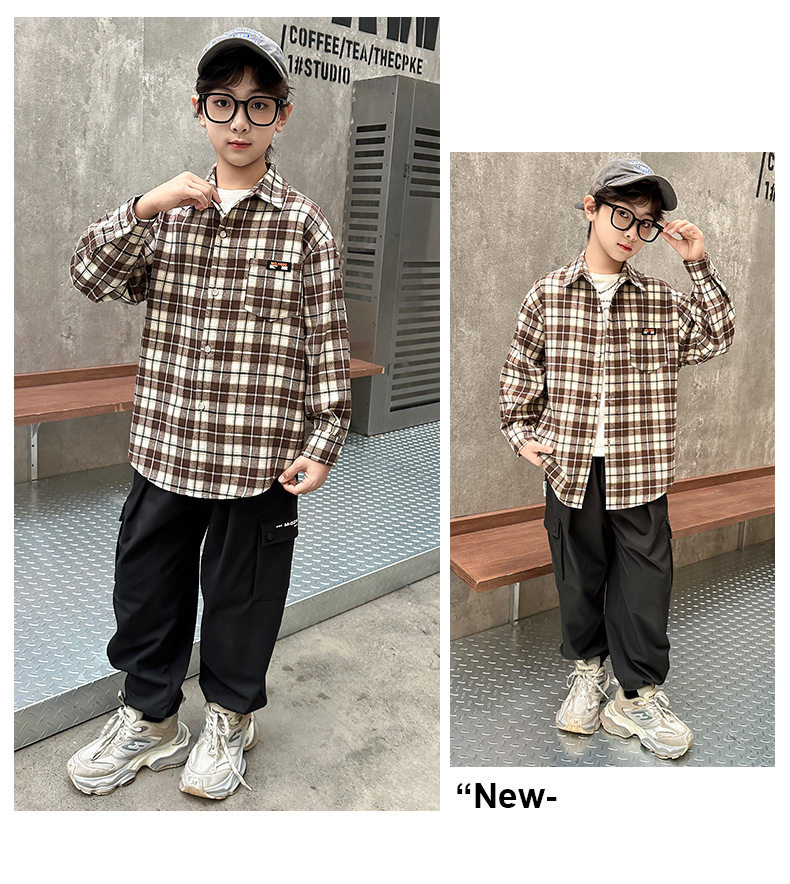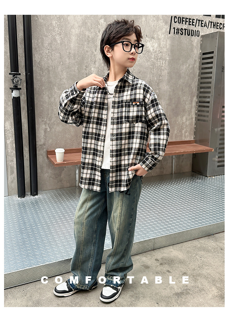 어린이 새로운 유행 어린이 남성 및 여성 격자 무늬 셔츠 2025 면 긴 소매 셔츠 대형 어린이 대형 격자 무늬 캐주얼 셔츠