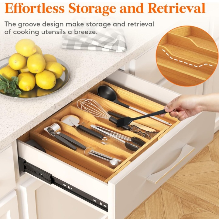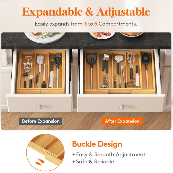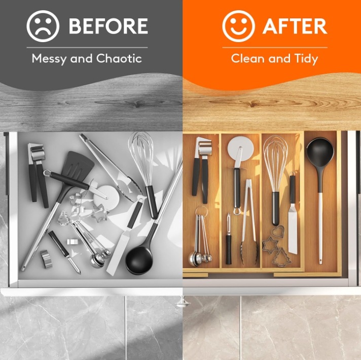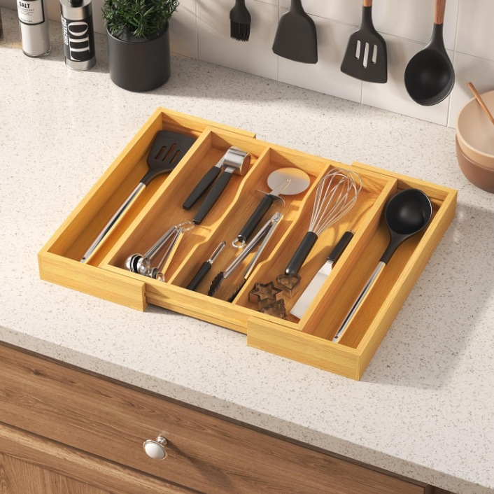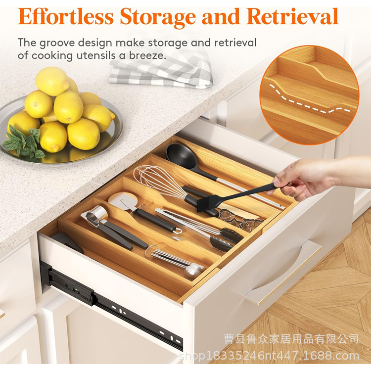 맞춤형 주방 서랍 식기 보관 상자 개폐식 도구 상자 조정 가능한 구획 보관 상자 내장 마감 상자스토어 가기