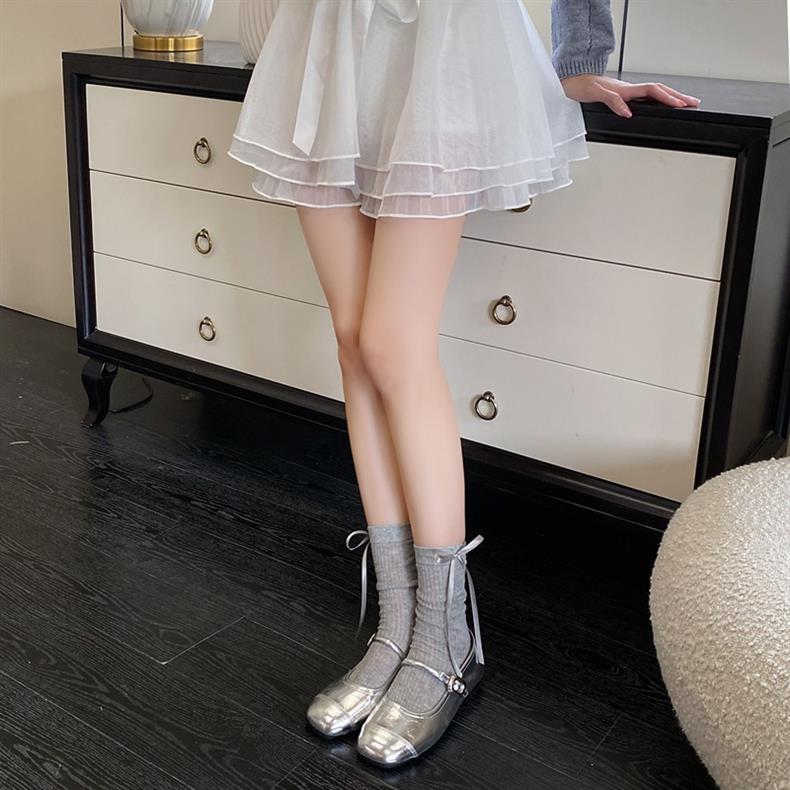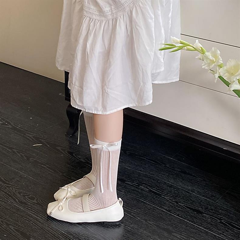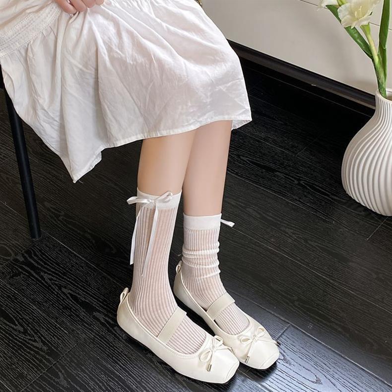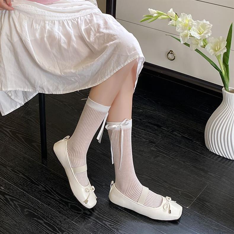 발 슈퍼 요정 리본 활 양말 여성 한국 스타일 Ins 소녀 얇은 메쉬 통기성 중공 양말