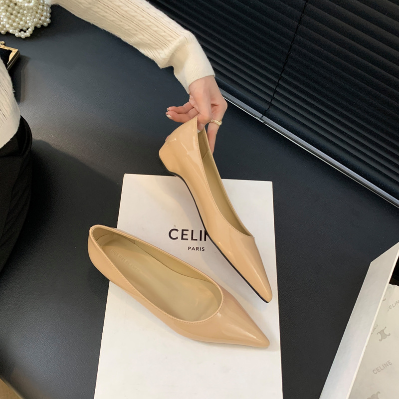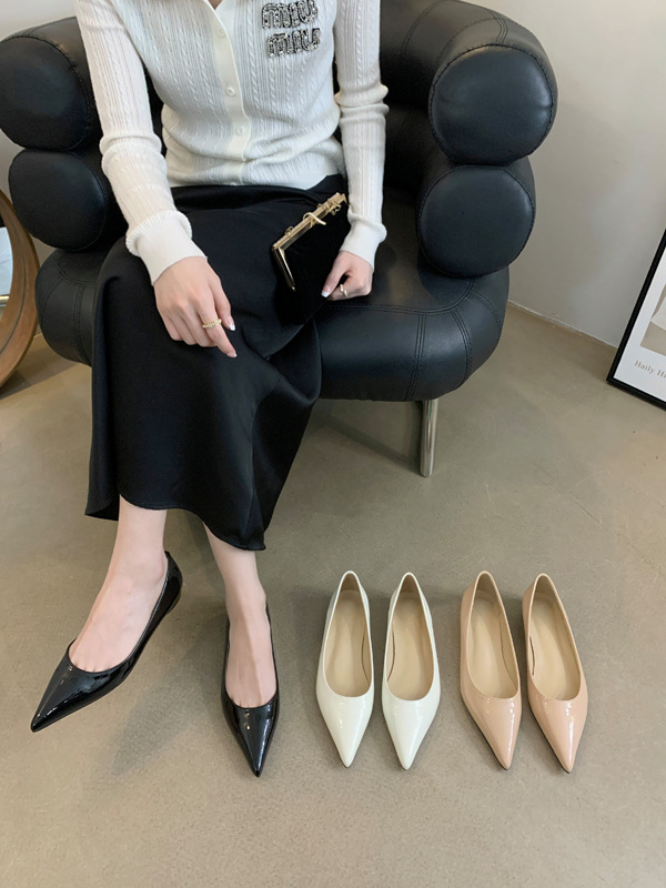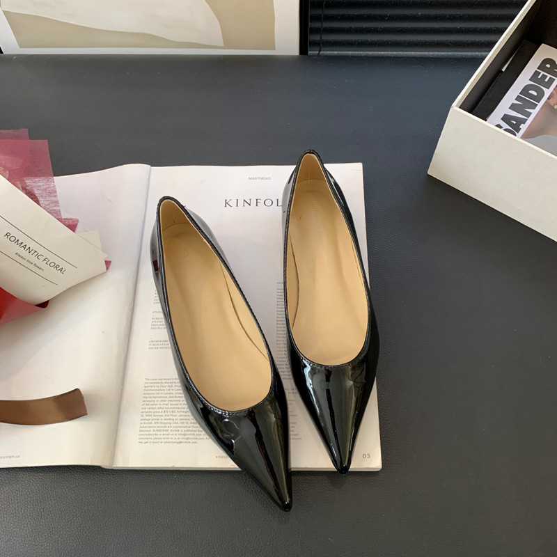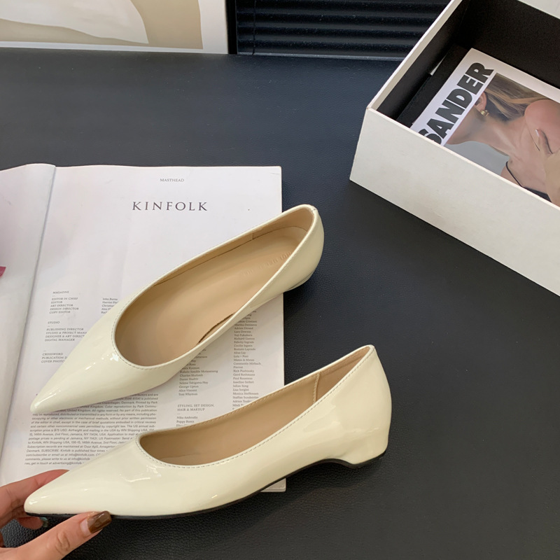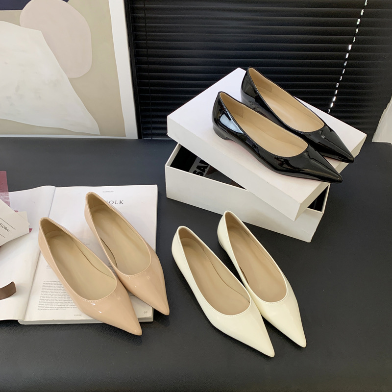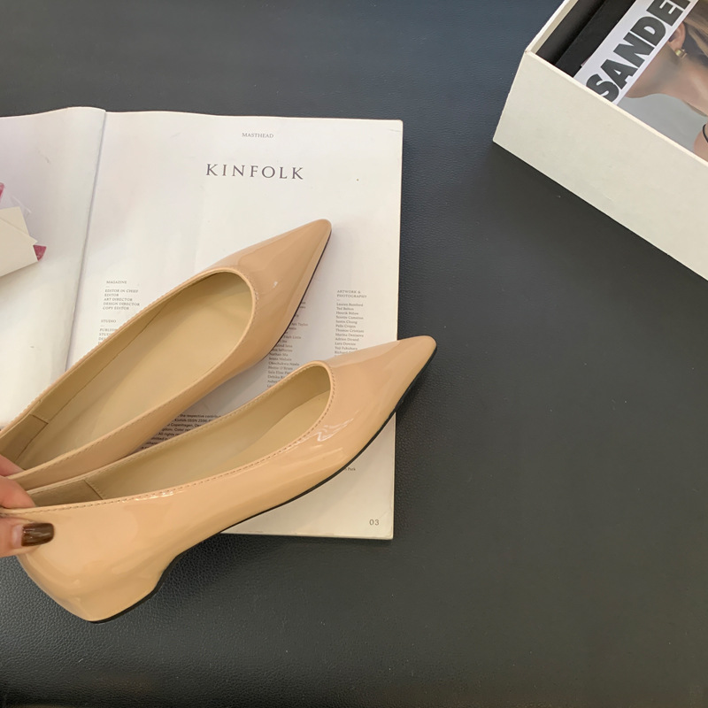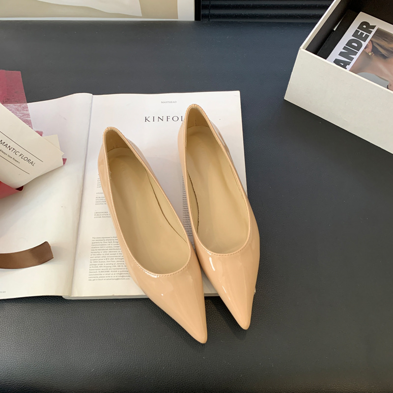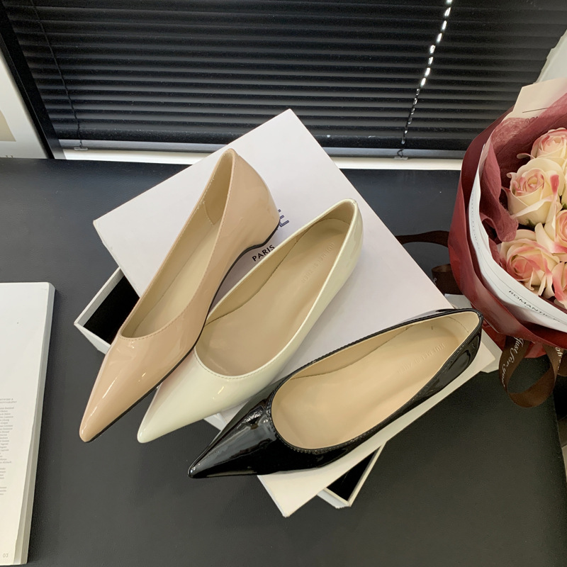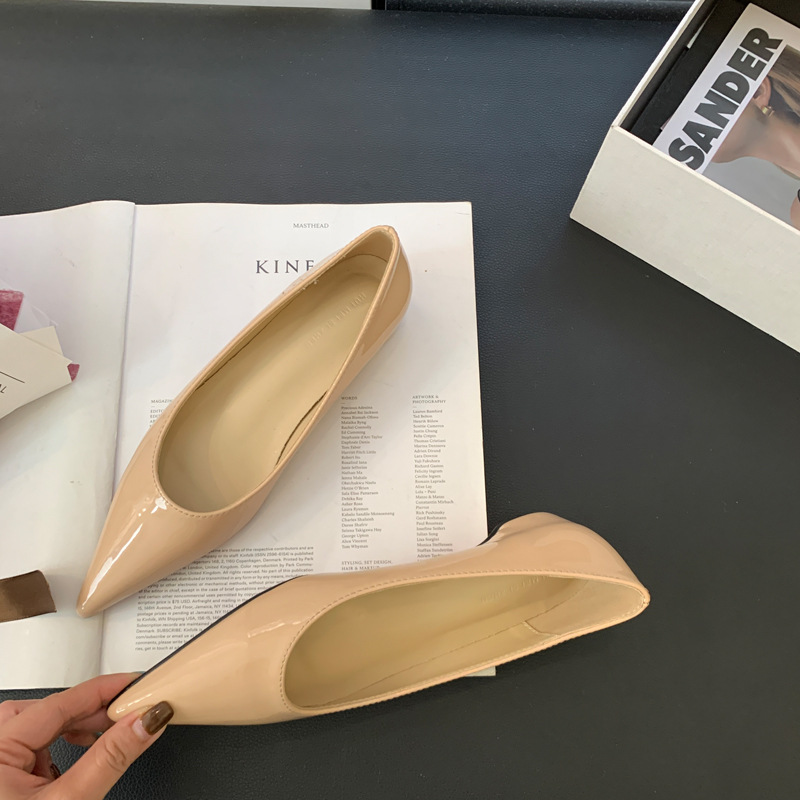 2025 새로운 프랑스 스타일 포인티드 토 슈즈, 여성용 페이턴트 가죽 플랫 슈즈, 여성용 내부 키높이 디자인 누드 슈즈스토어 가기