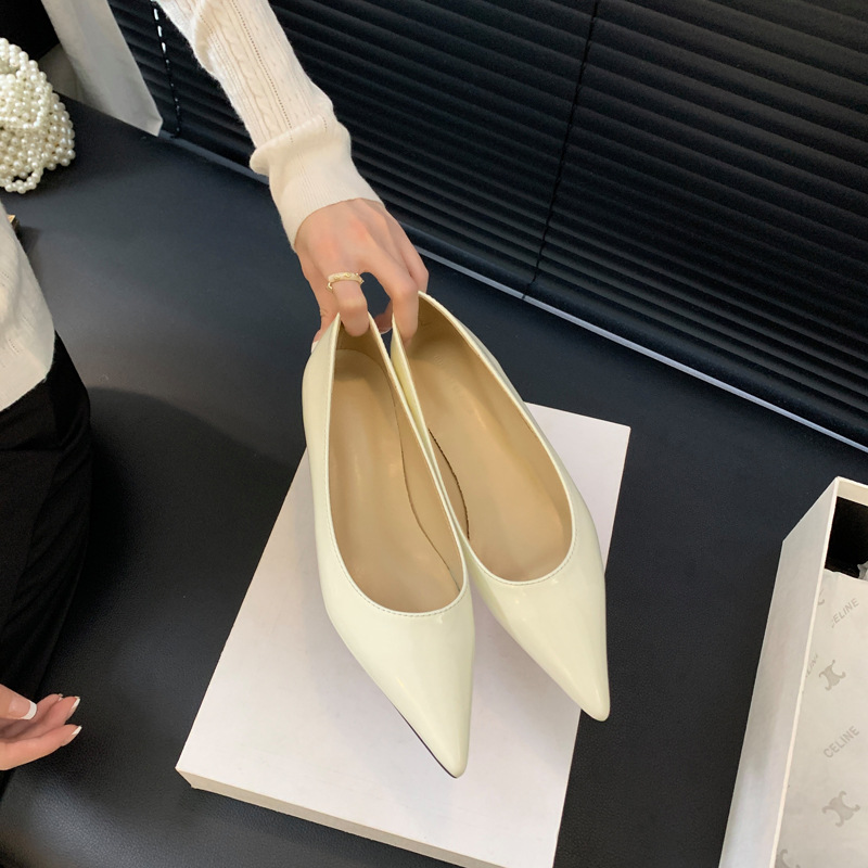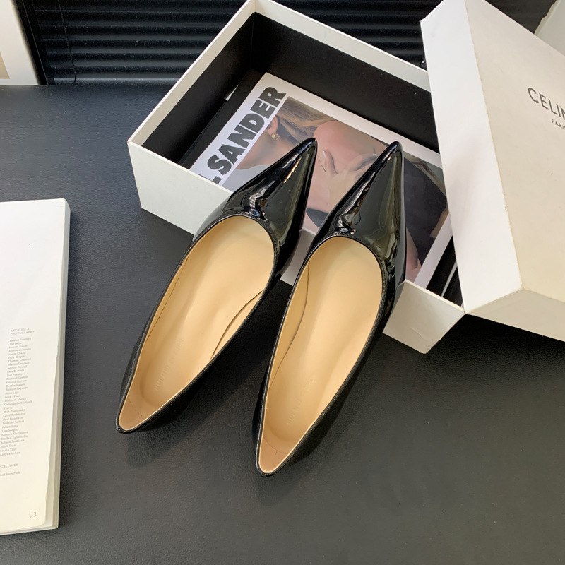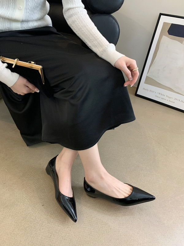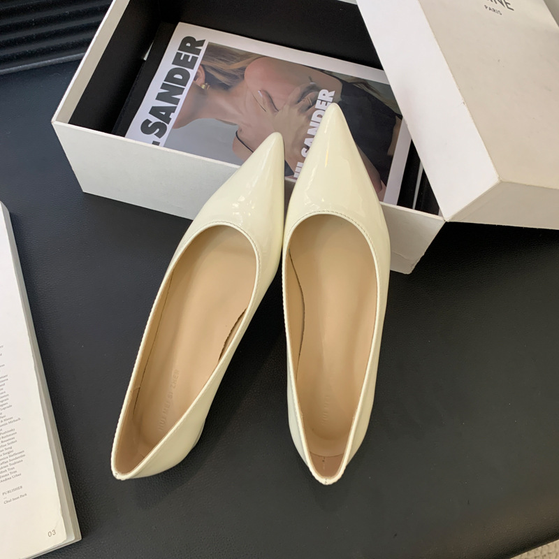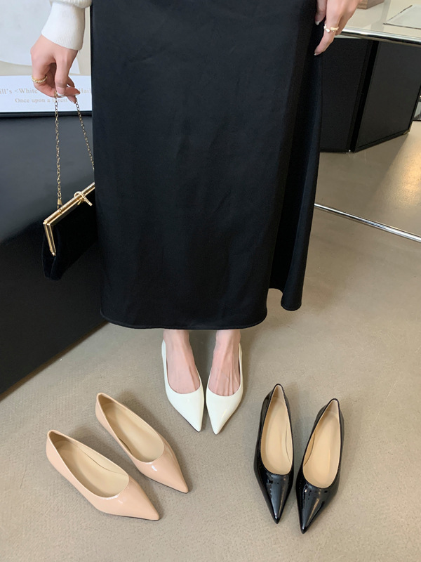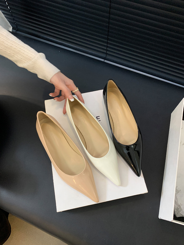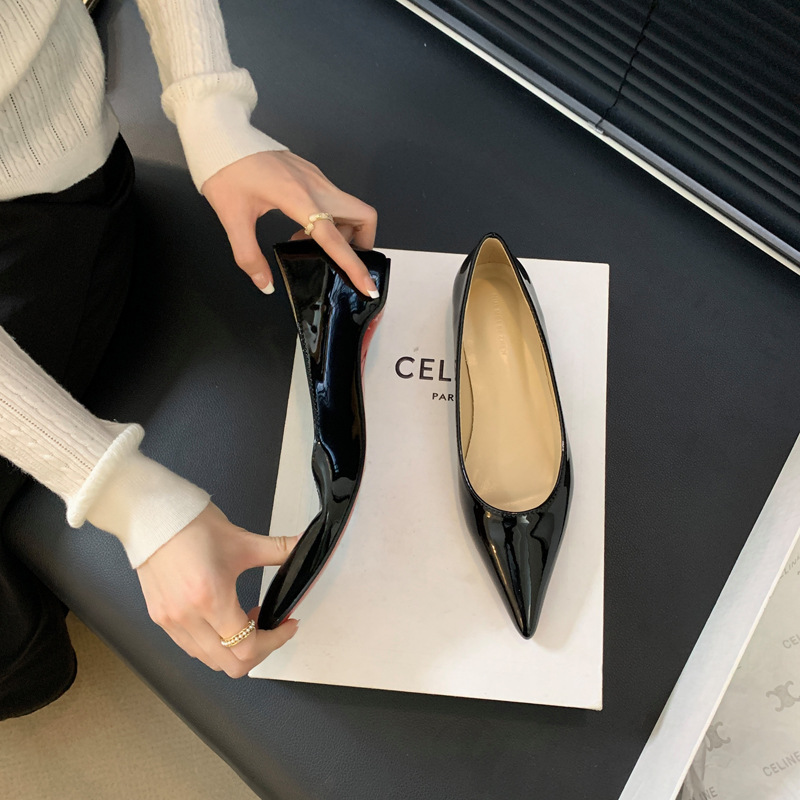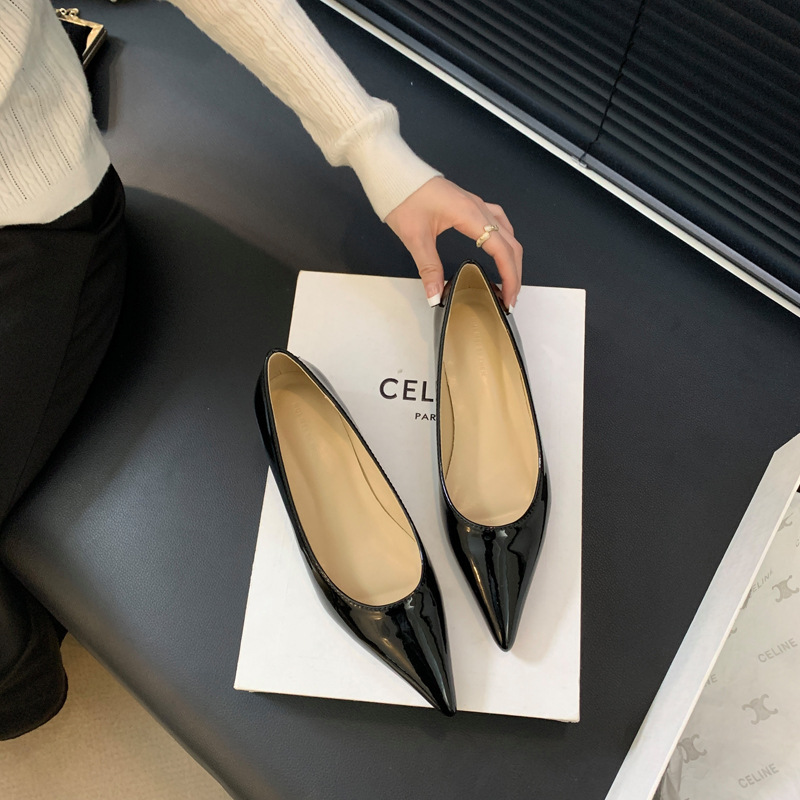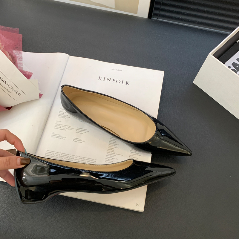 2025 새로운 프랑스 스타일 포인티드 토 슈즈, 여성용 페이턴트 가죽 플랫 슈즈, 여성용 내부 키높이 디자인 누드 슈즈스토어 가기