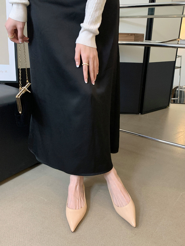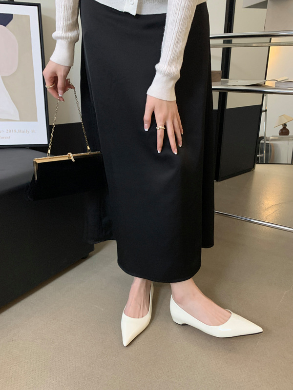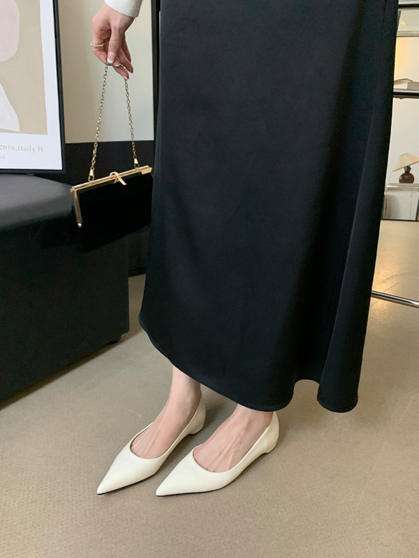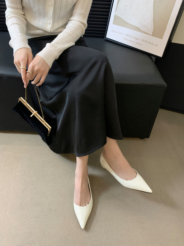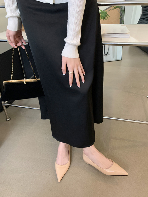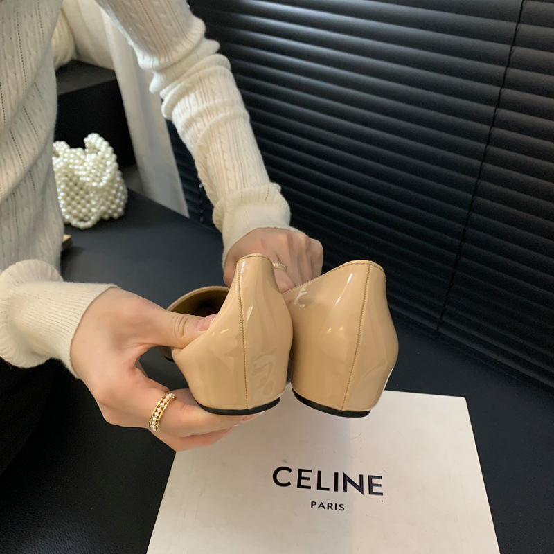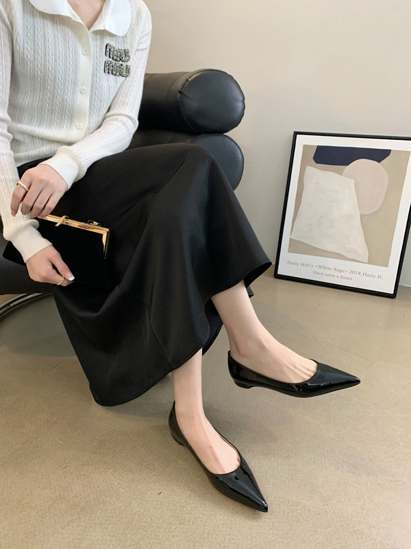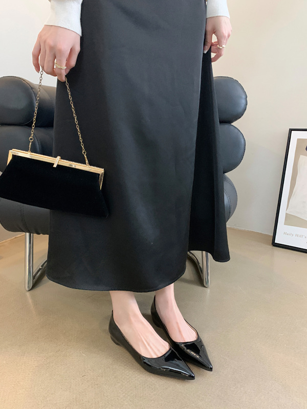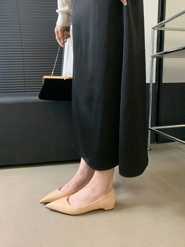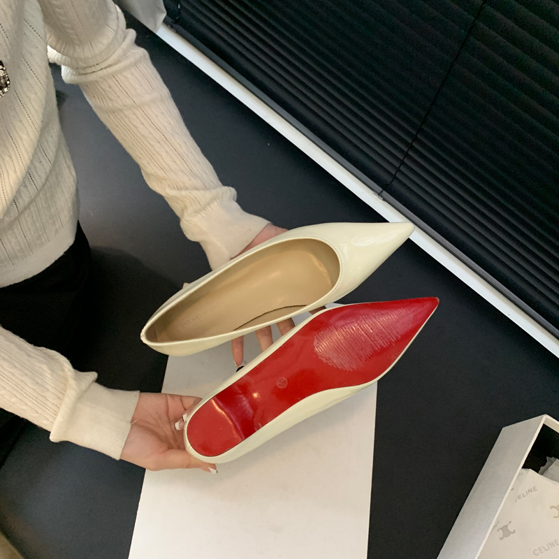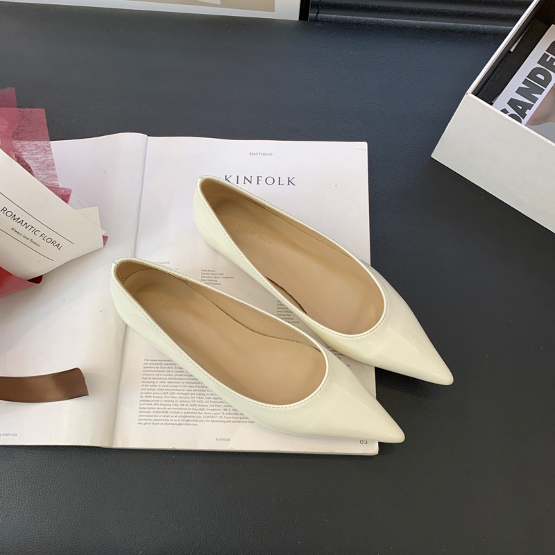 2025 새로운 프랑스 스타일 포인티드 토 슈즈, 여성용 페이턴트 가죽 플랫 슈즈, 여성용 내부 키높이 디자인 누드 슈즈스토어 가기