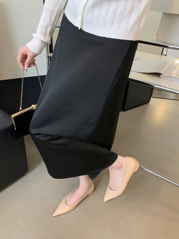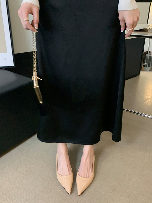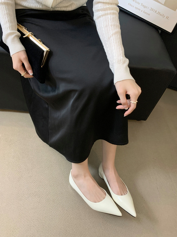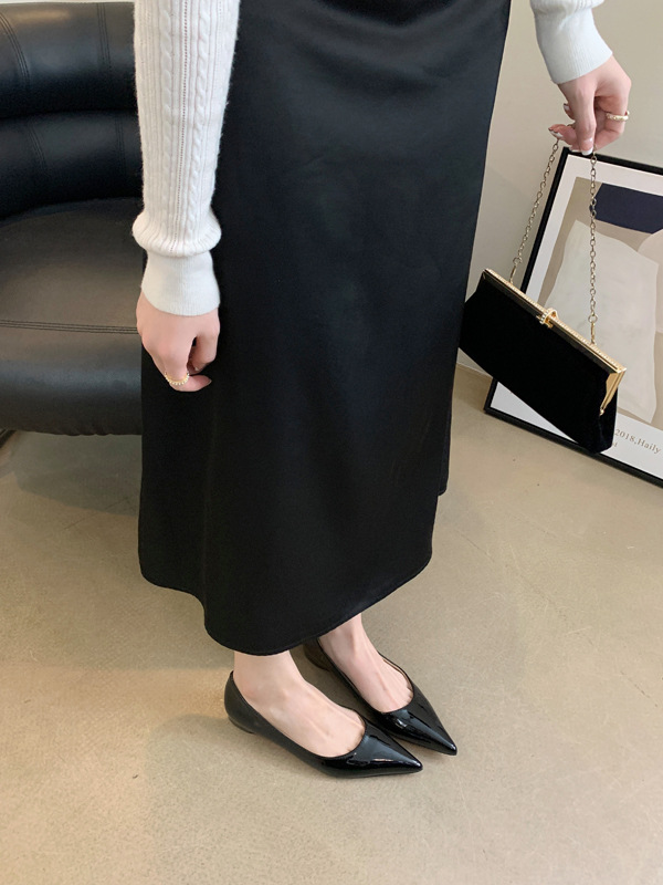 2025 새로운 프랑스 스타일 포인티드 토 슈즈, 여성용 페이턴트 가죽 플랫 슈즈, 여성용 내부 키높이 디자인 누드 슈즈