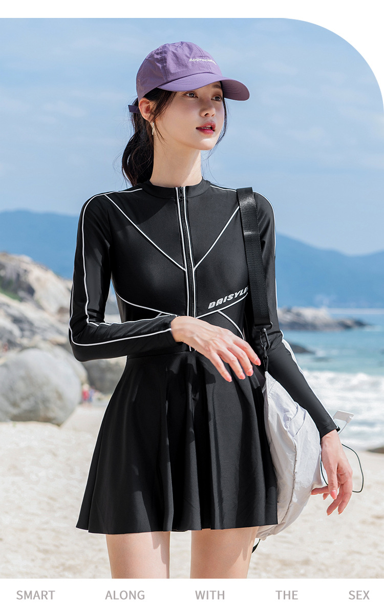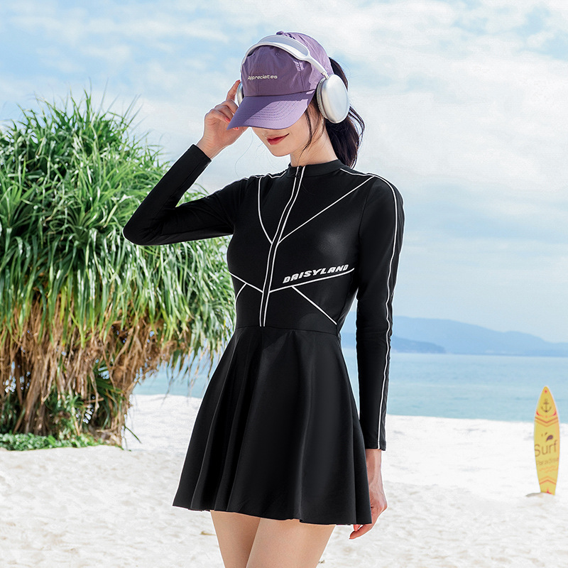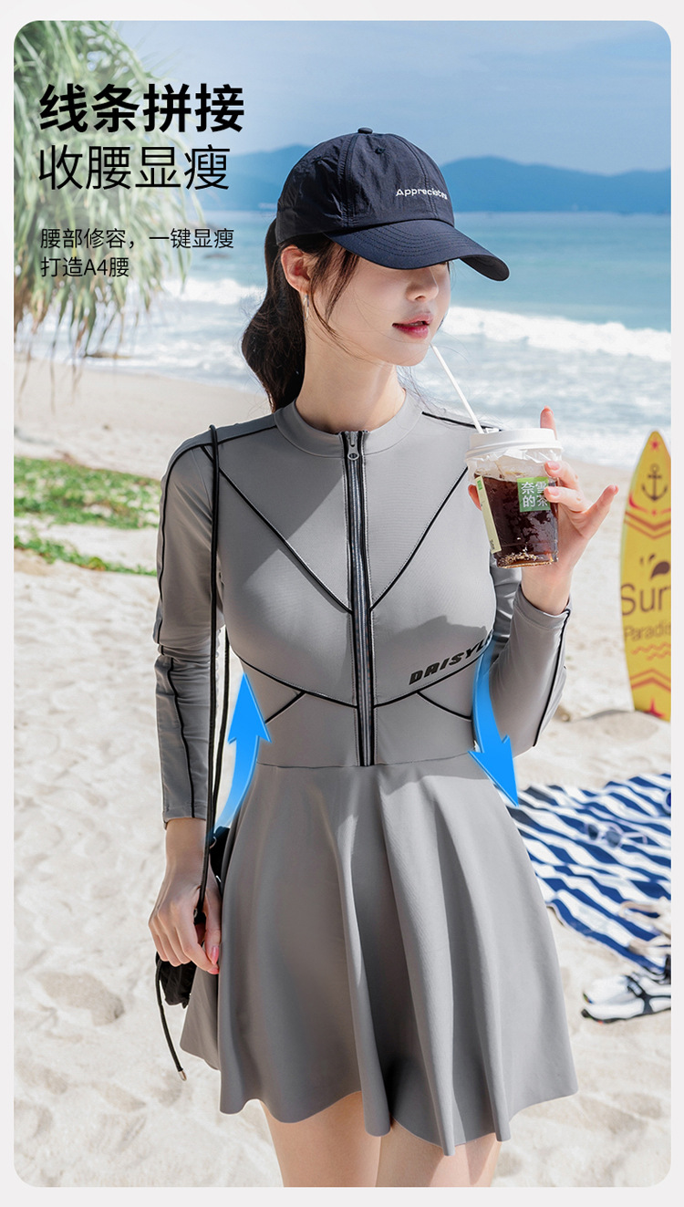 솔리드 컬러 수영복 여성 한국식 육체 커버 슬림 스커트 수영복 보수 수영복