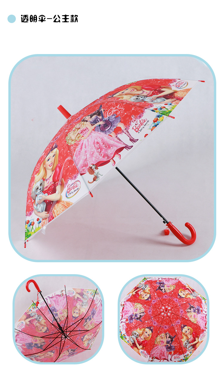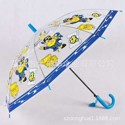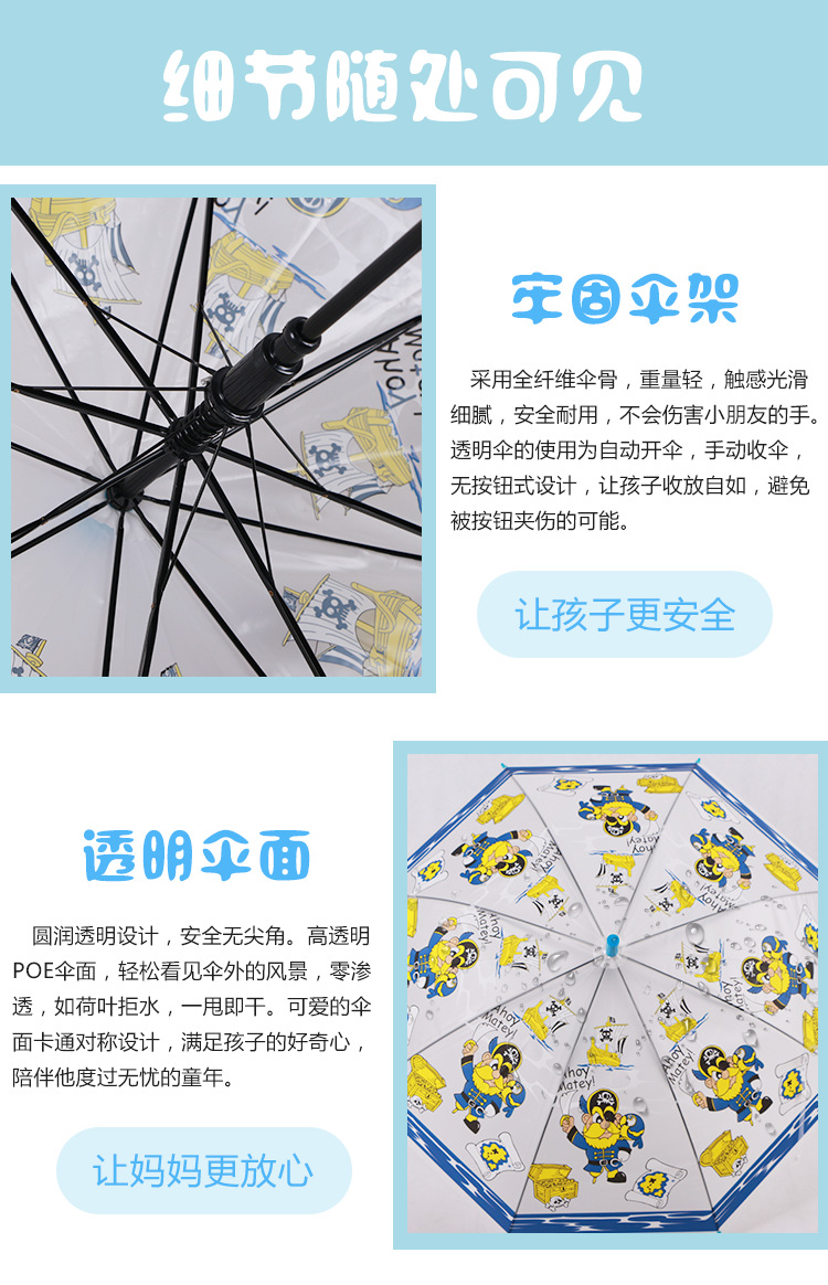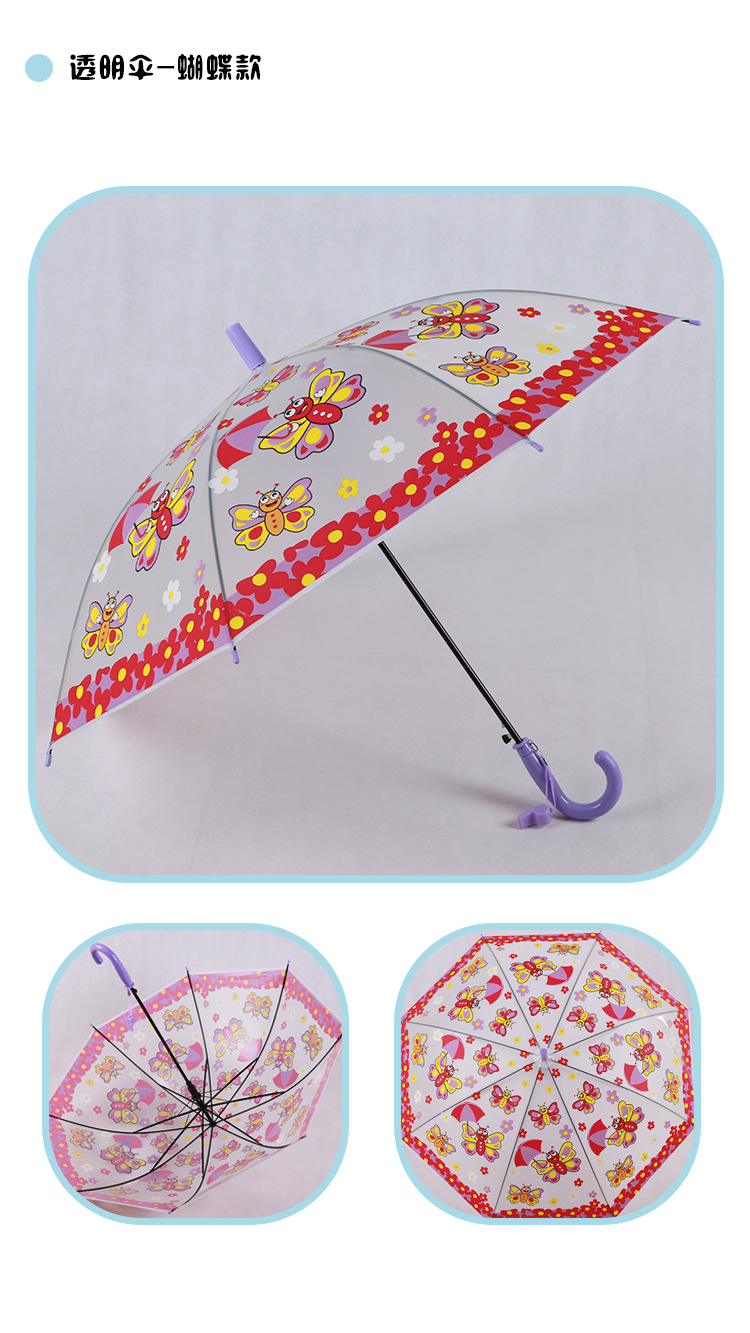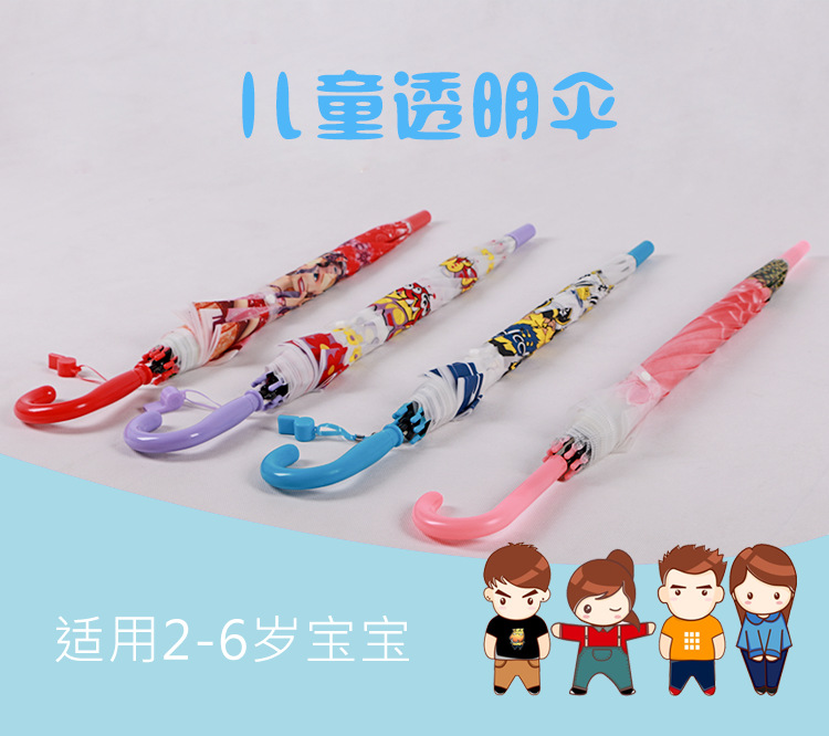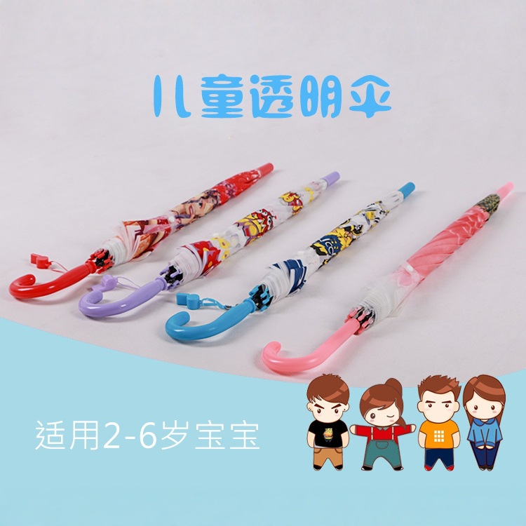 투명 POE 섬유 뼈 자동 어린이 우산 만화 자동 긴 손잡이 컬러 패턴 학생 우산