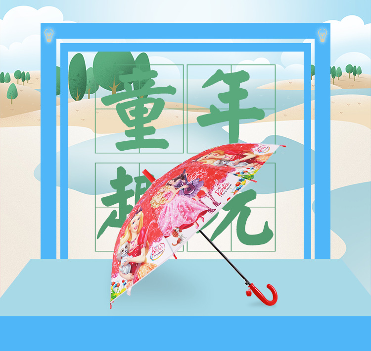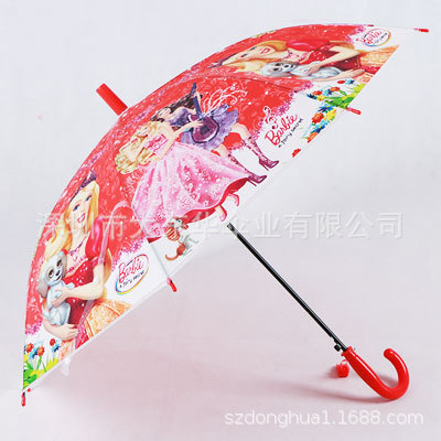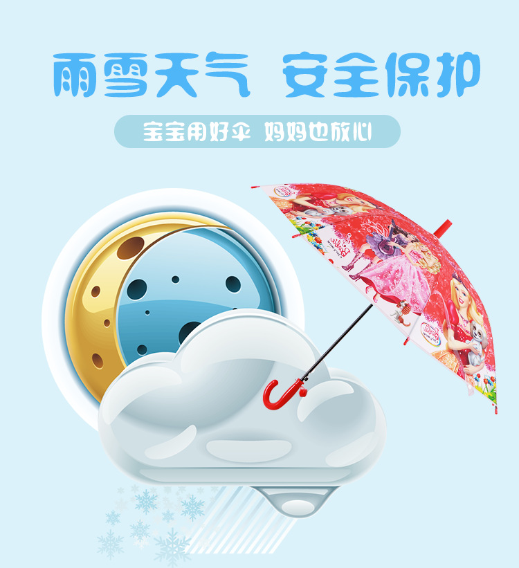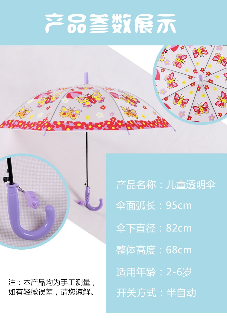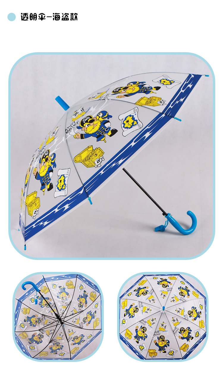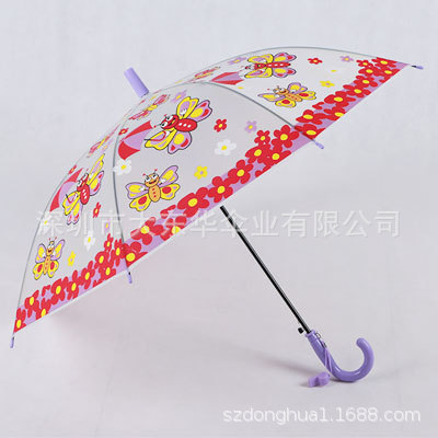 투명 POE 섬유 뼈 자동 어린이 우산 만화 자동 긴 손잡이 컬러 패턴 학생 우산