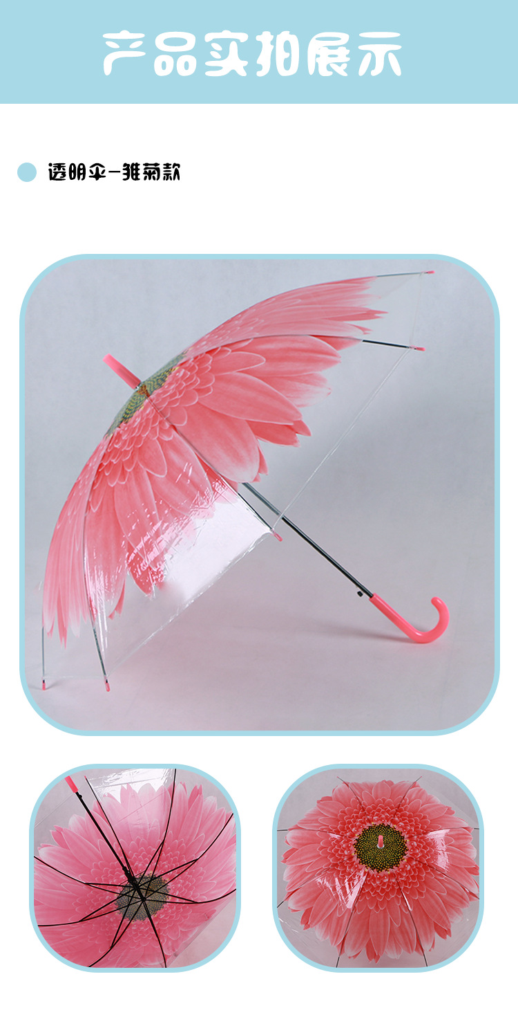 투명 POE 섬유 뼈 자동 어린이 우산 만화 자동 긴 손잡이 컬러 패턴 학생 우산스토어 가기