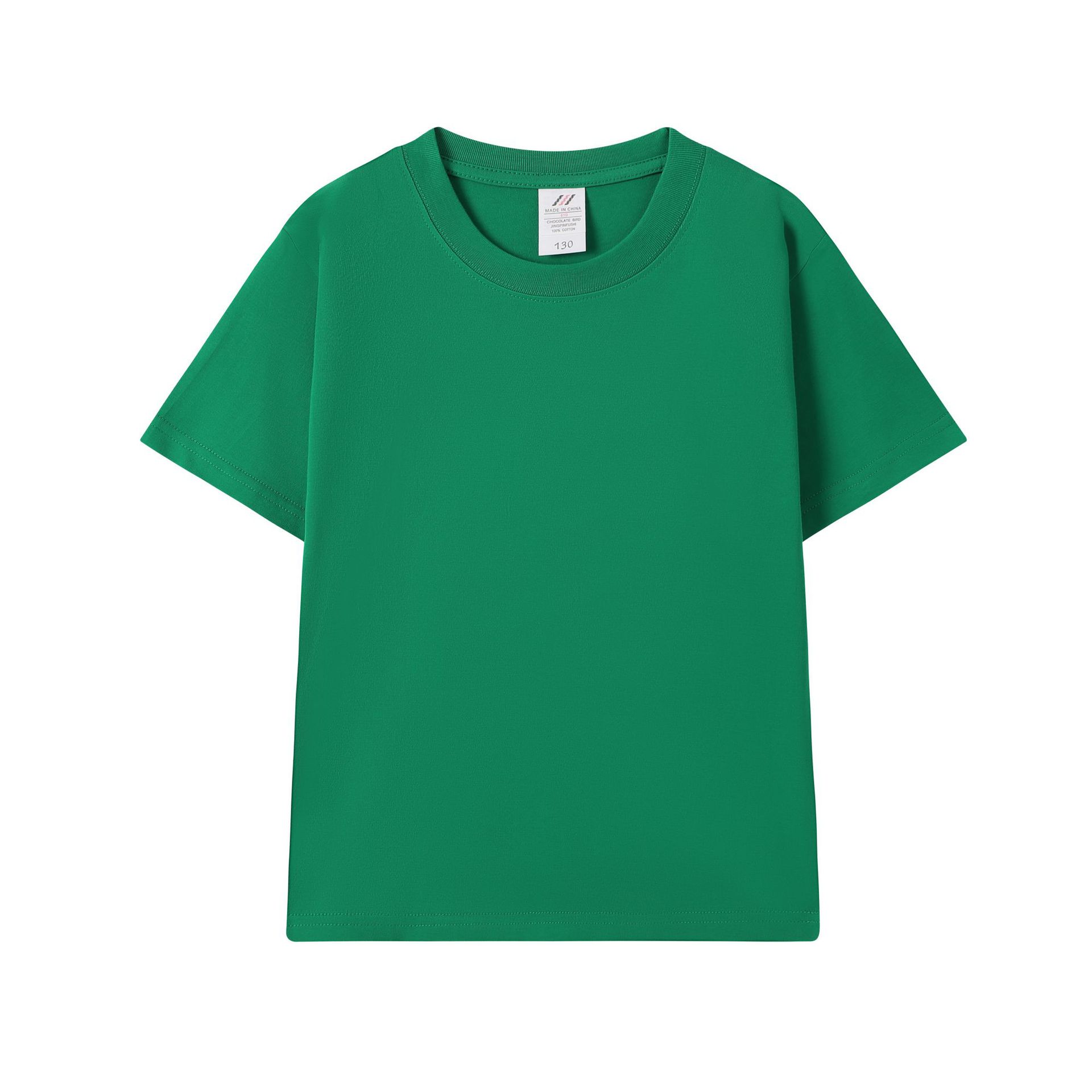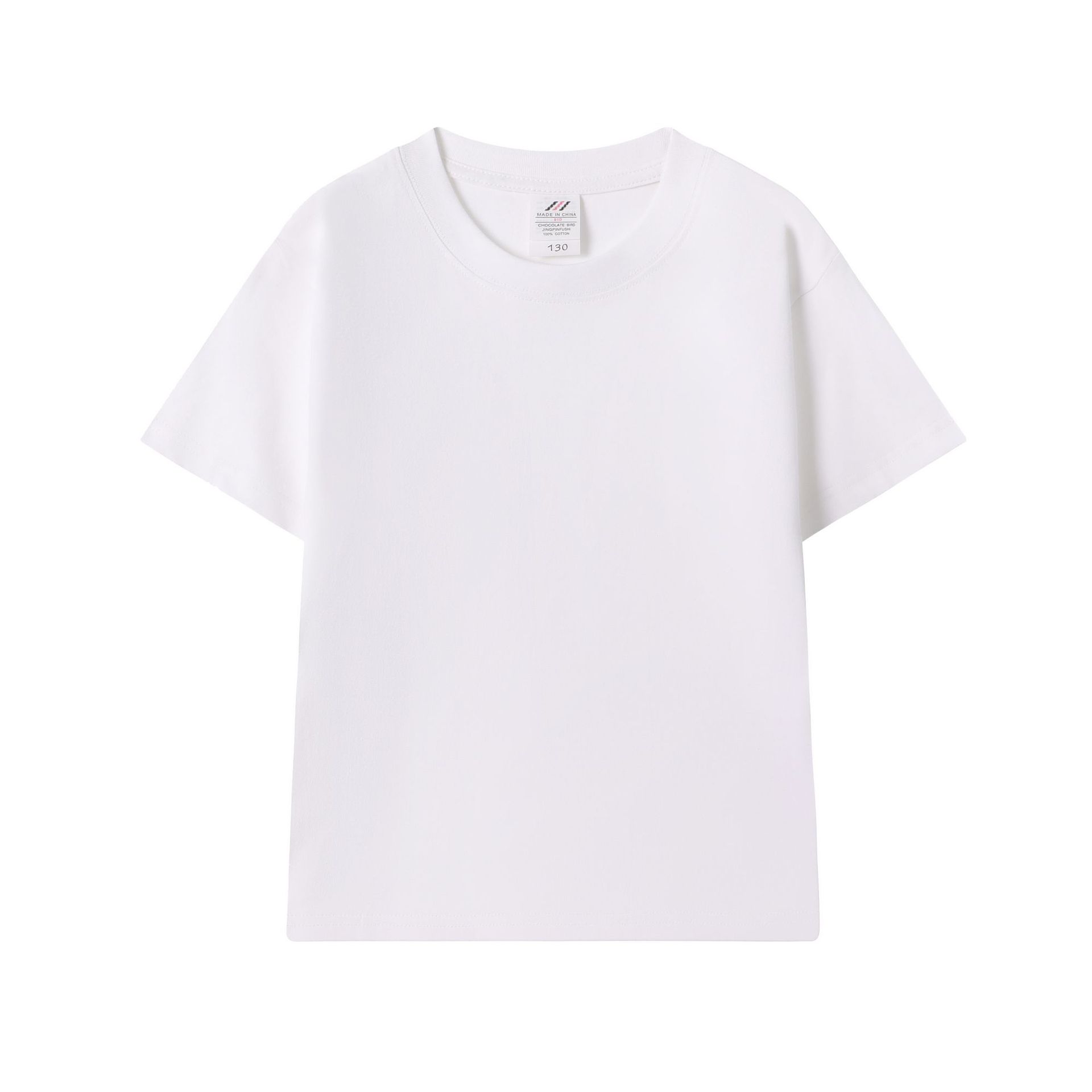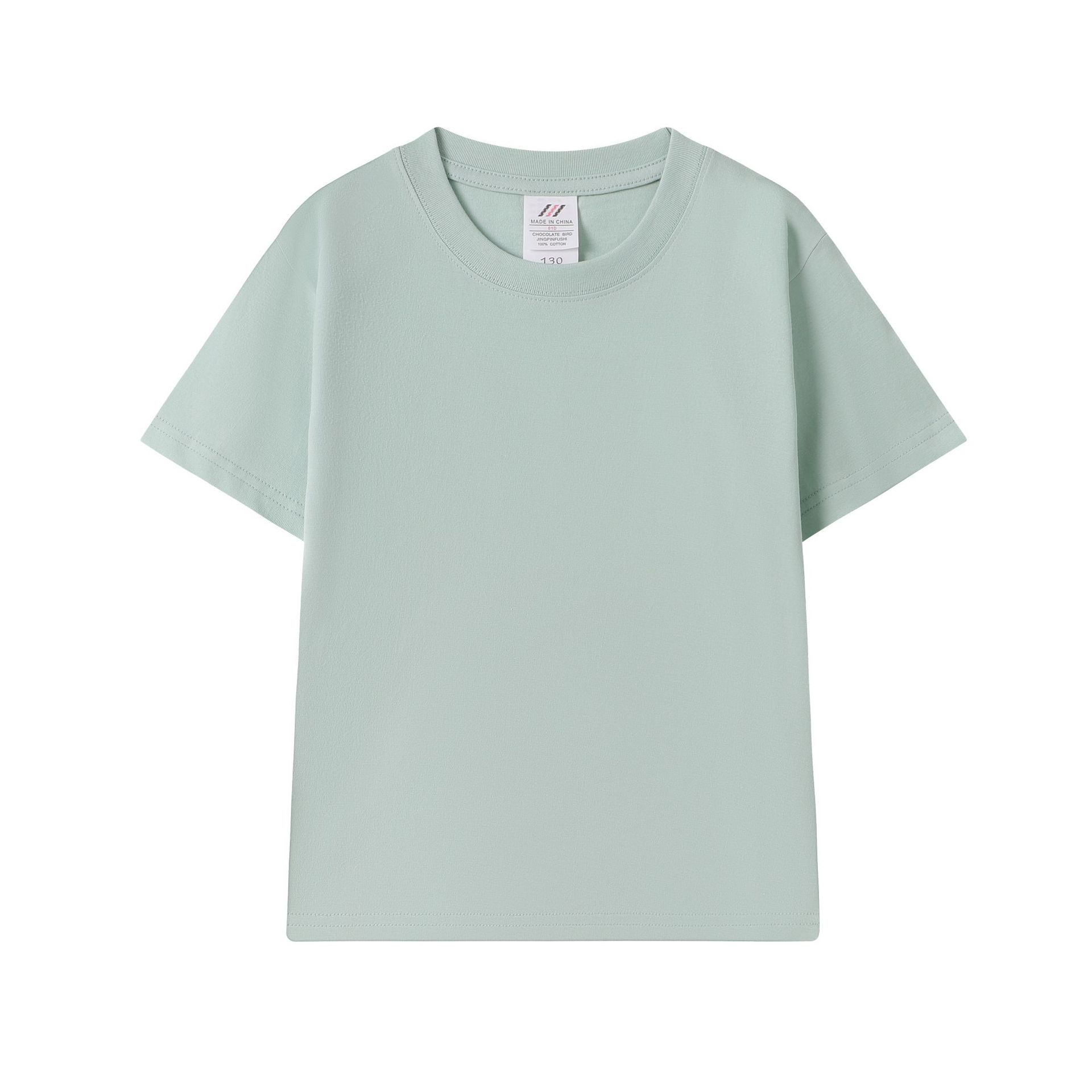 봄과 여름 새로운 230g 면화 어린이 둥근 목 짧은 소매 티셔츠 도매 조수 브랜드 아동복 매일 단색면 짧은 t스토어 가기