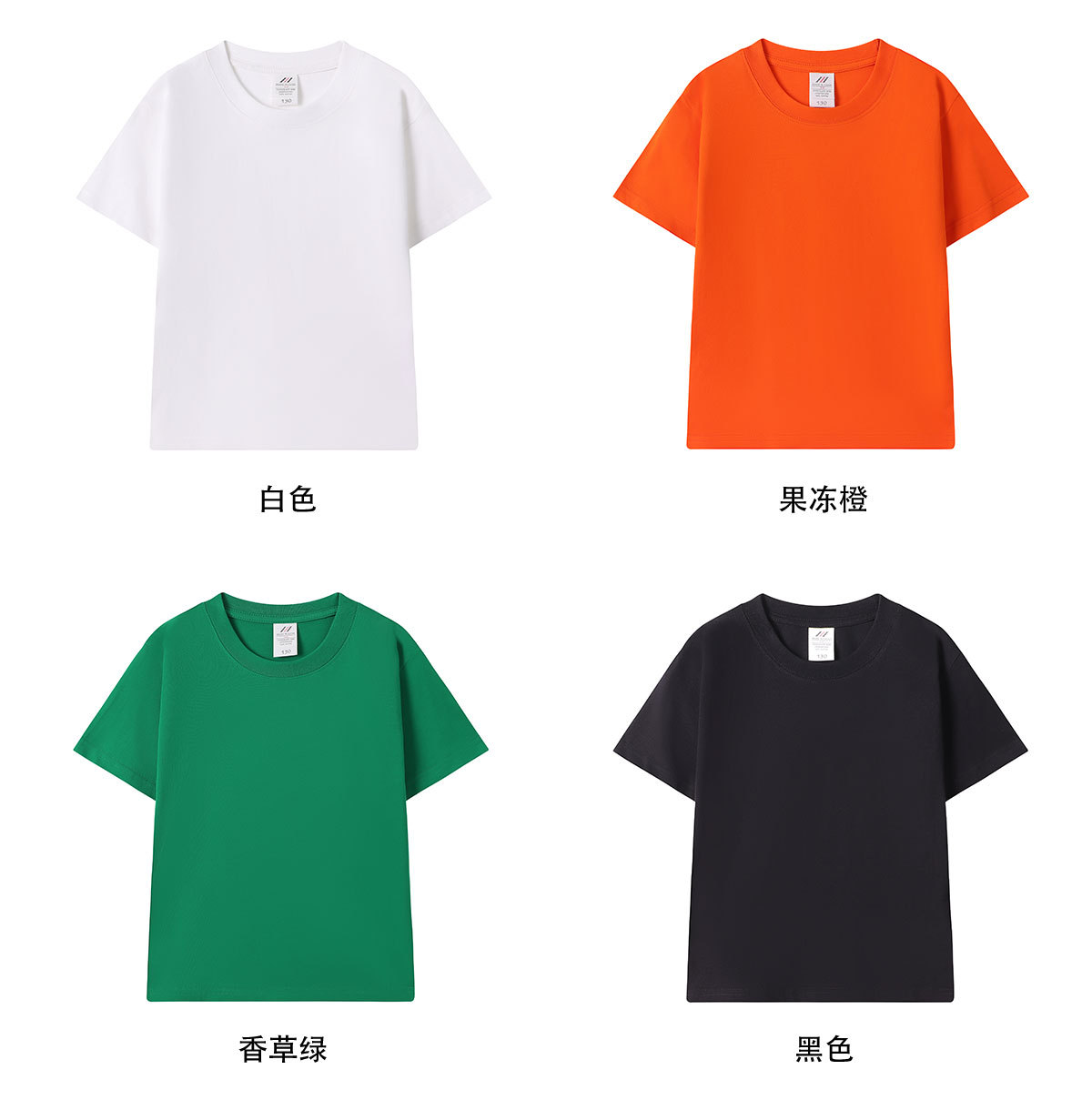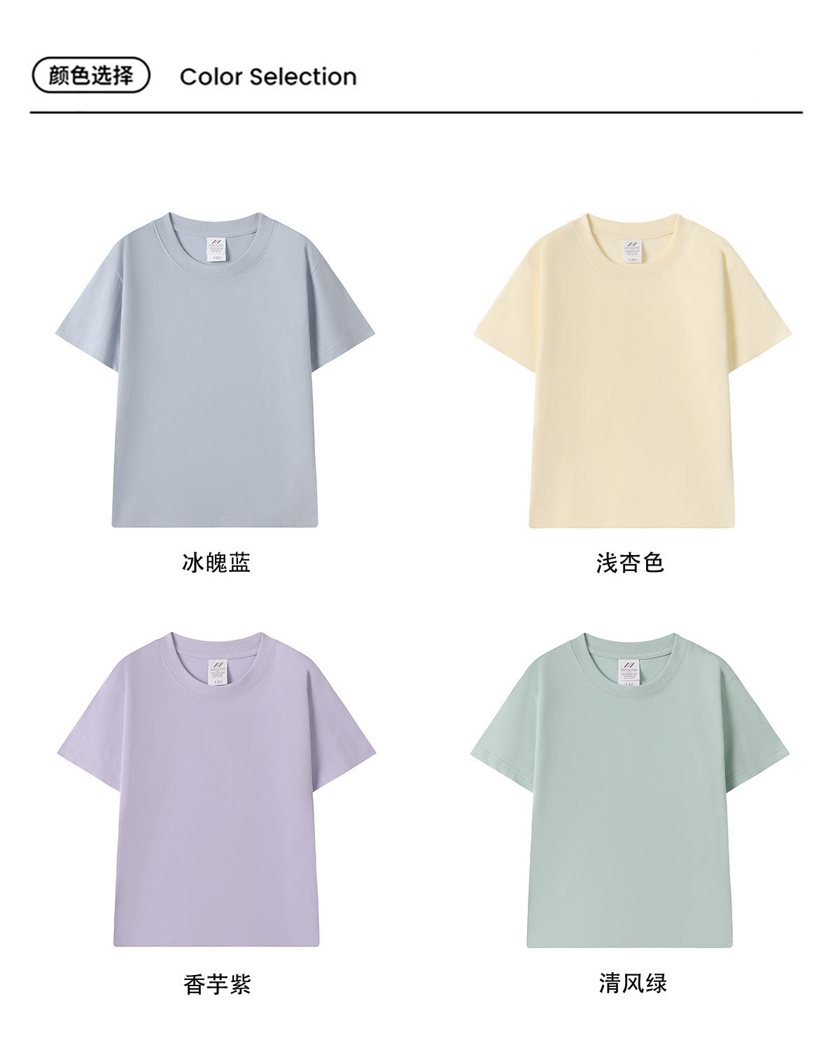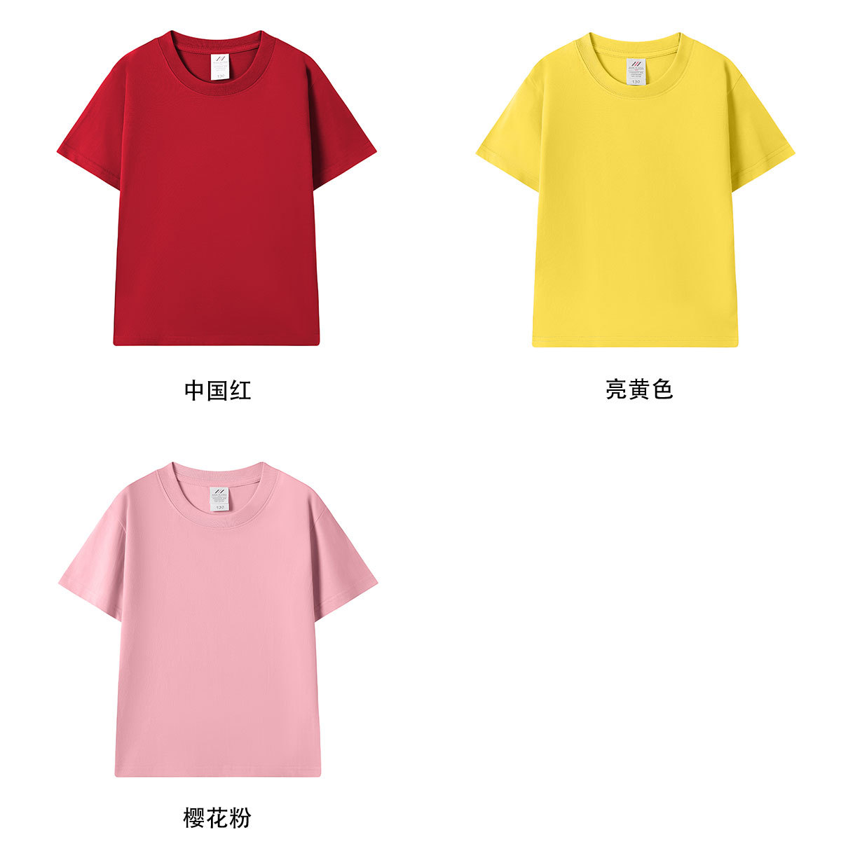봄과 여름 새로운 230g 면화 어린이 둥근 목 짧은 소매 티셔츠 도매 조수 브랜드 아동복 매일 단색면 짧은 t스토어 가기