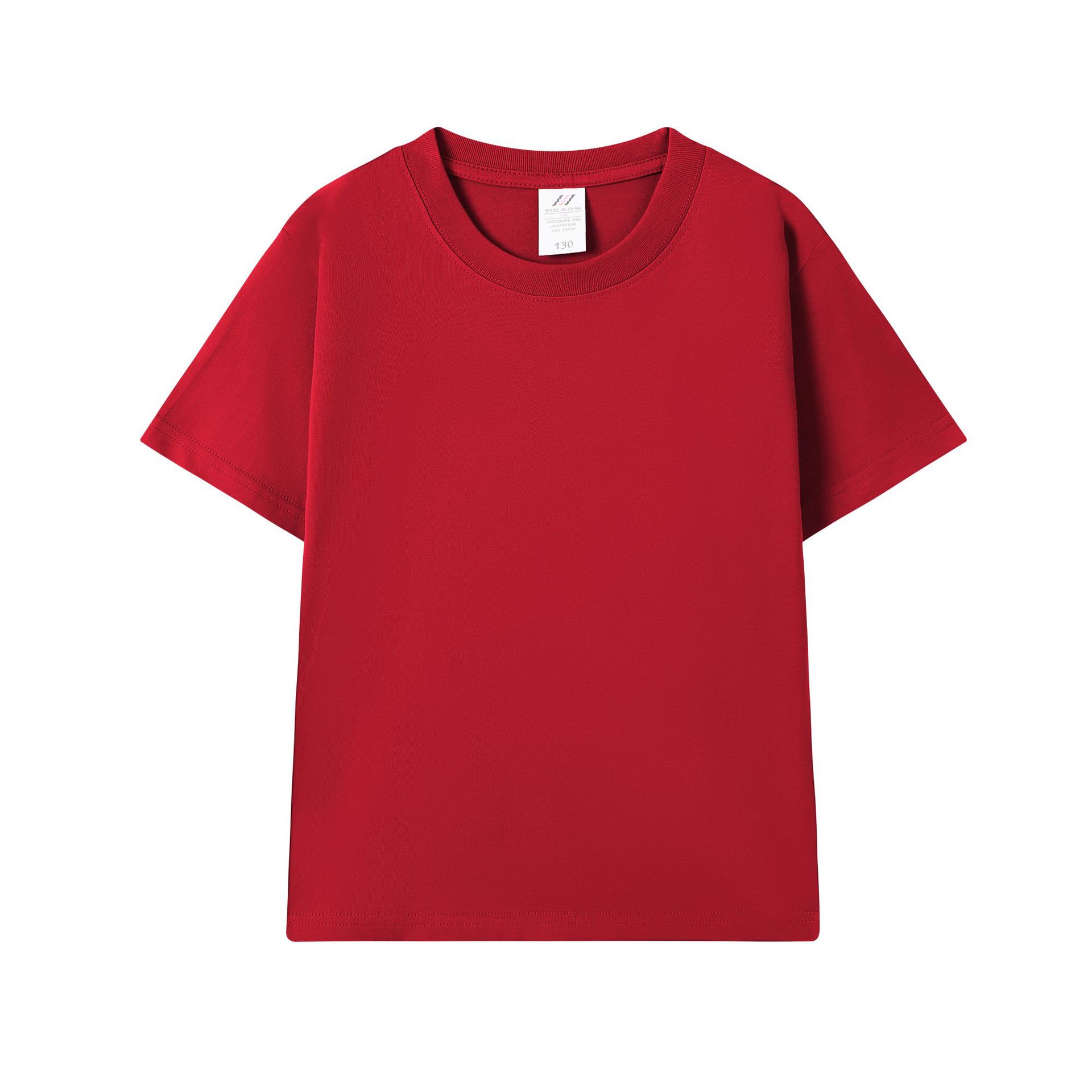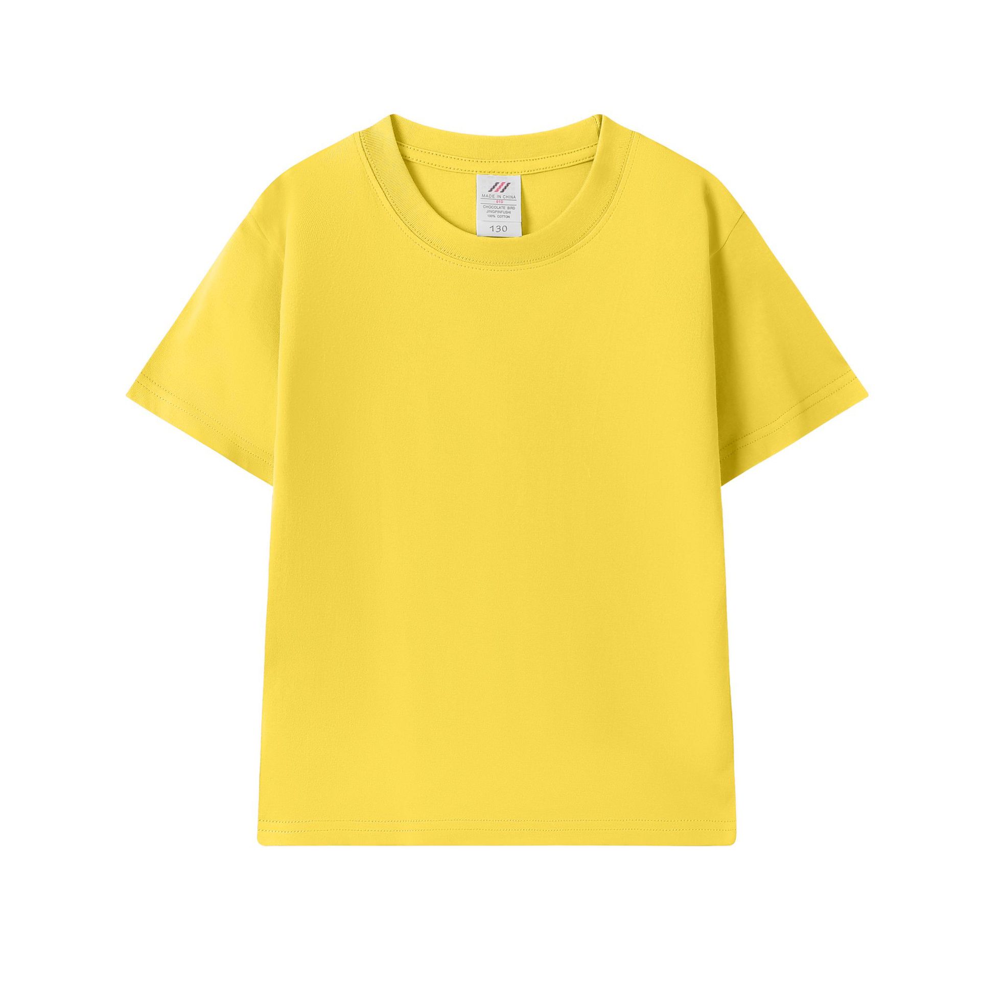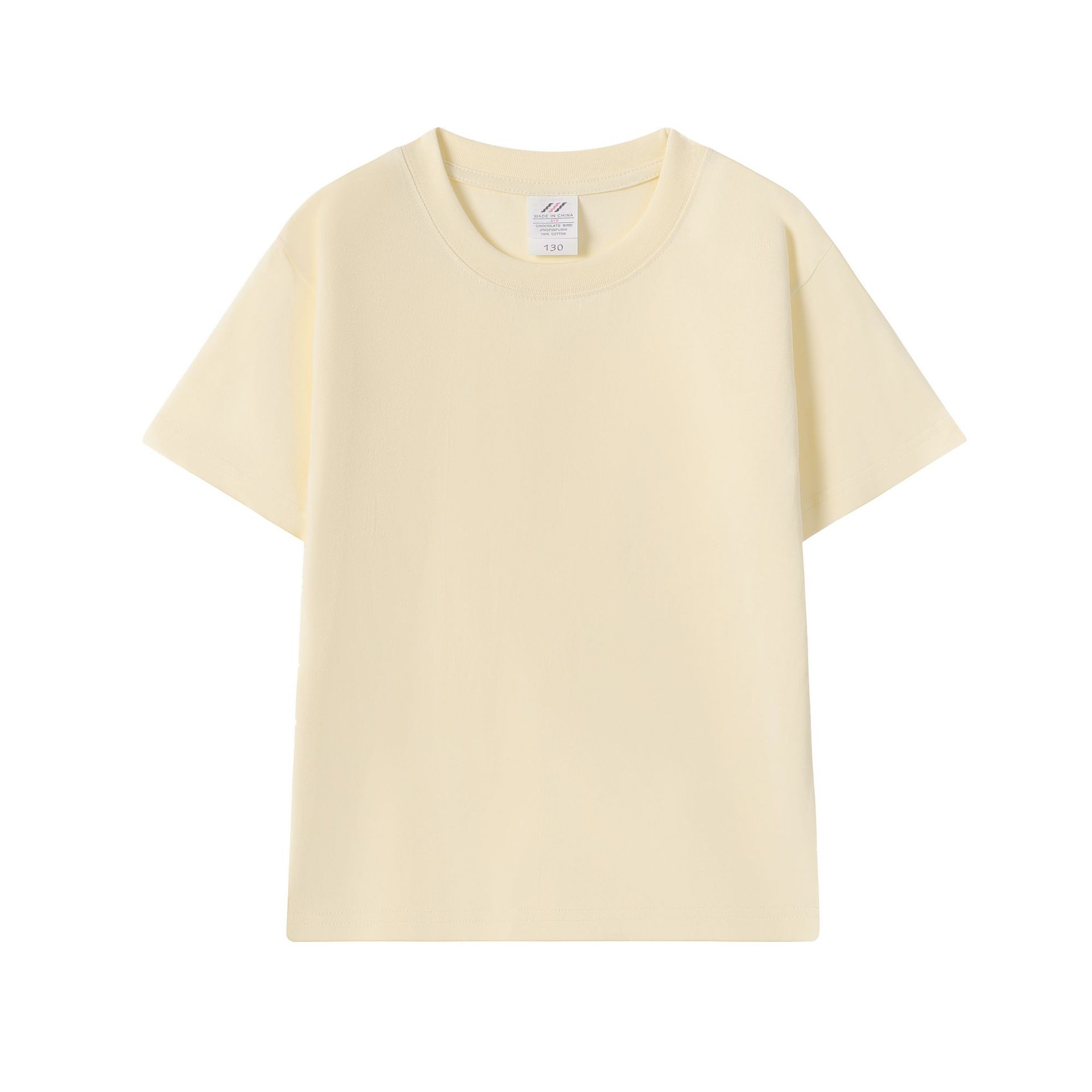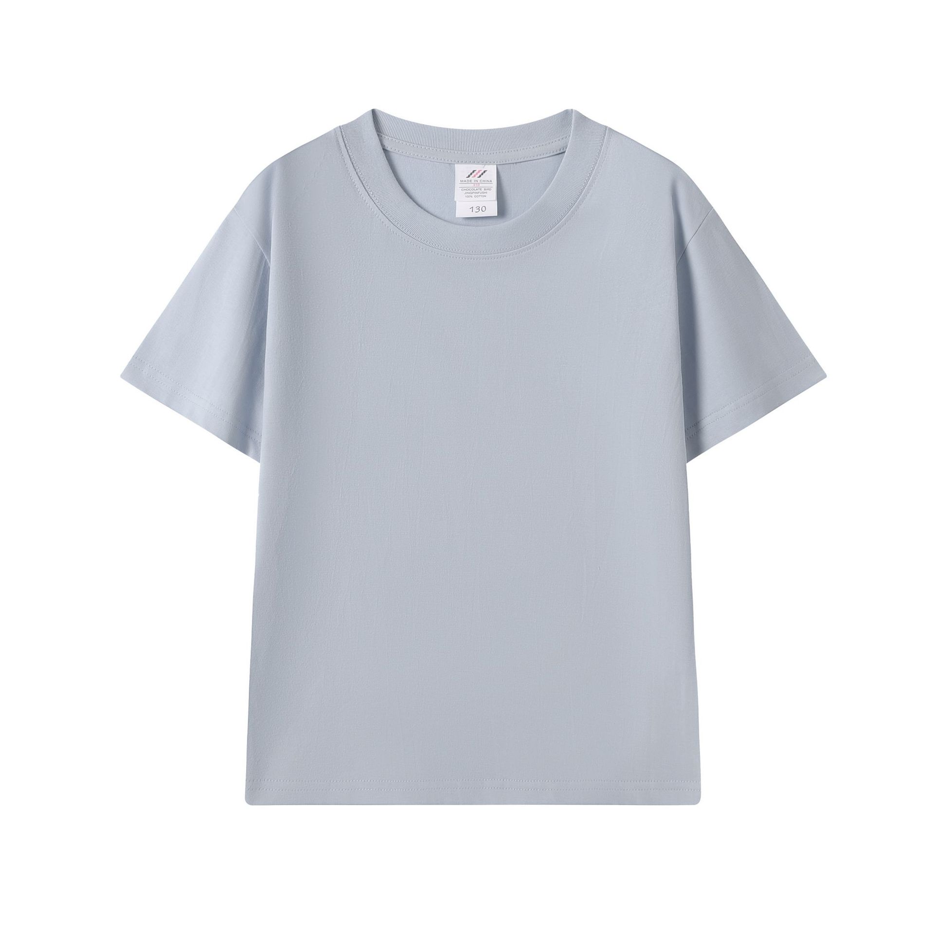 봄과 여름 새로운 230g 면화 어린이 둥근 목 짧은 소매 티셔츠 도매 조수 브랜드 아동복 매일 단색면 짧은 t