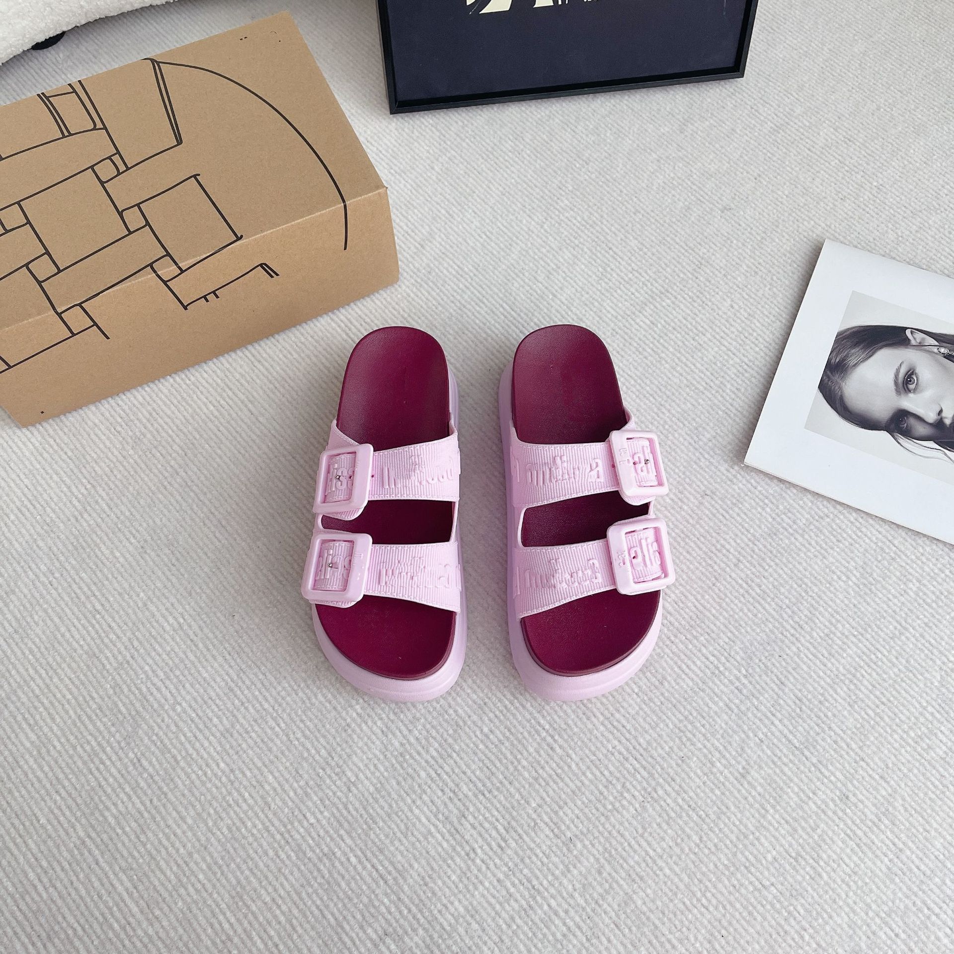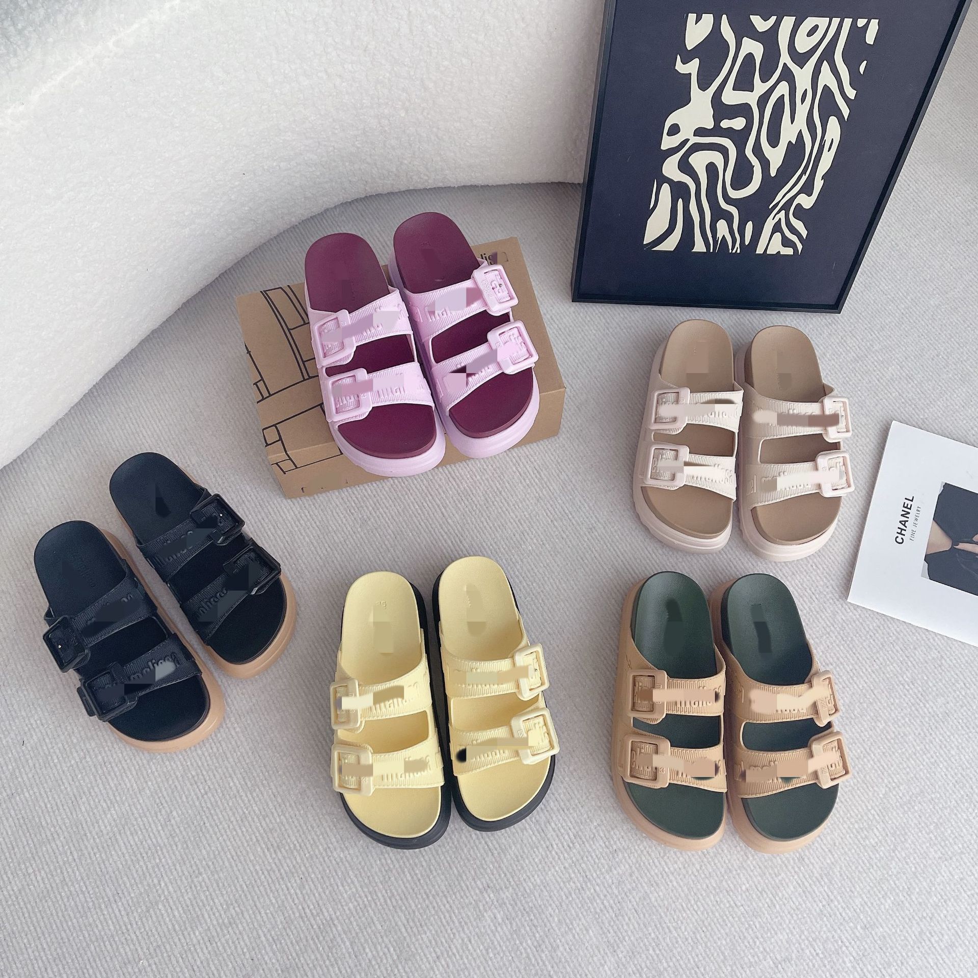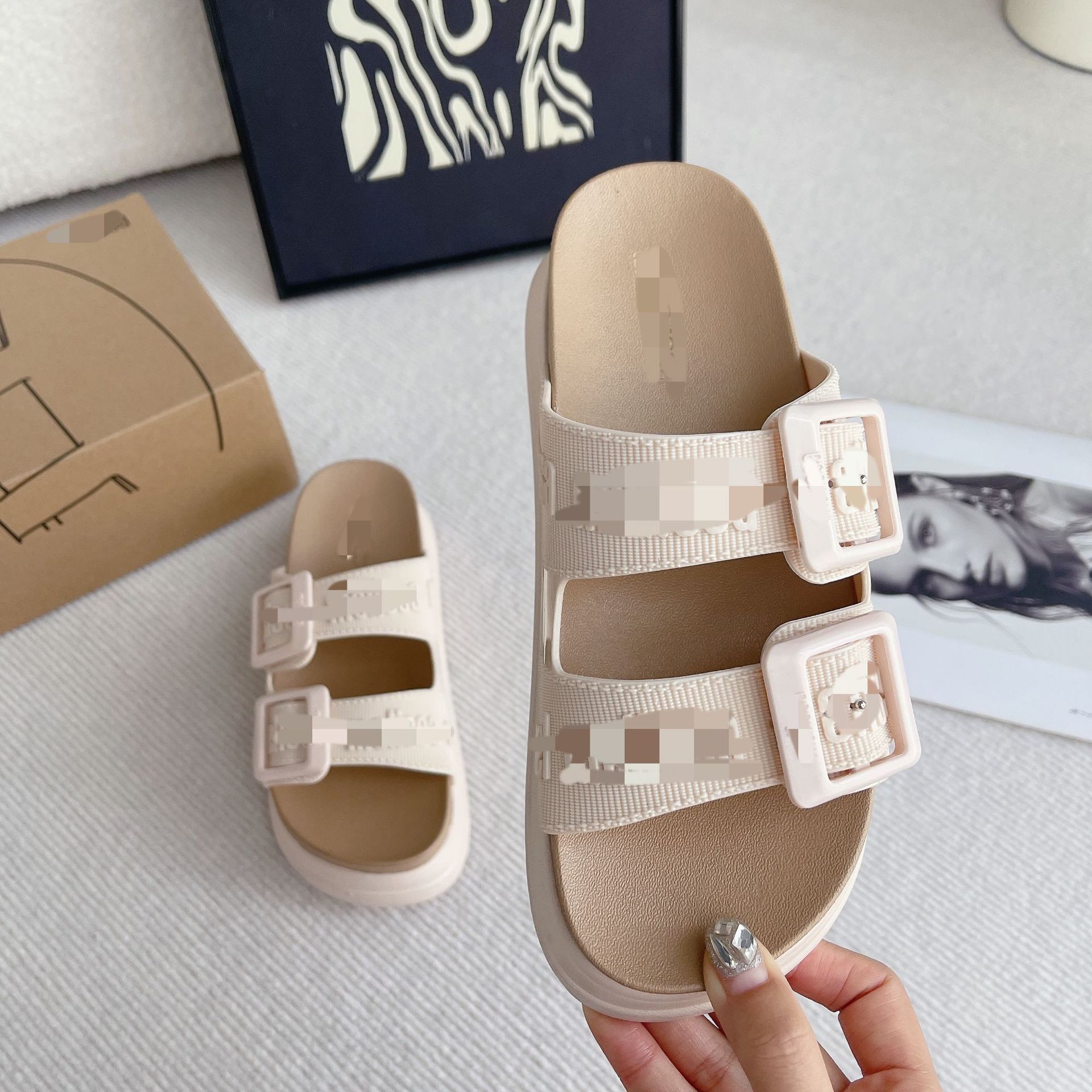 2026년 신상 여름 메이*샤 스타일 플랫폼 두꺼운 밑창 원스트랩 더블 버클 젤리 슈즈 캐주얼 비치 샌들스토어 가기