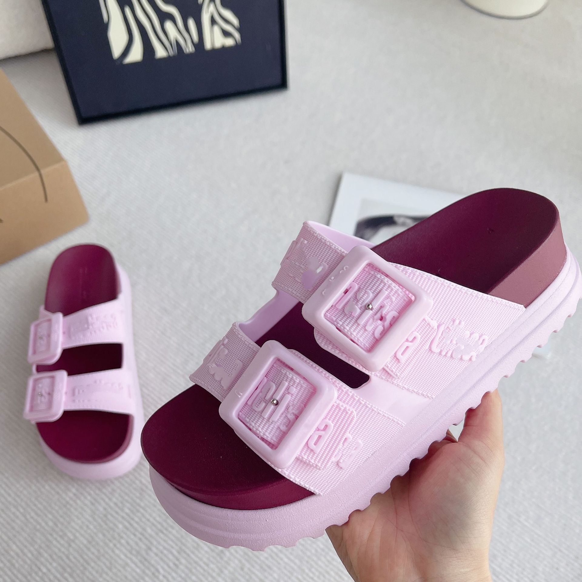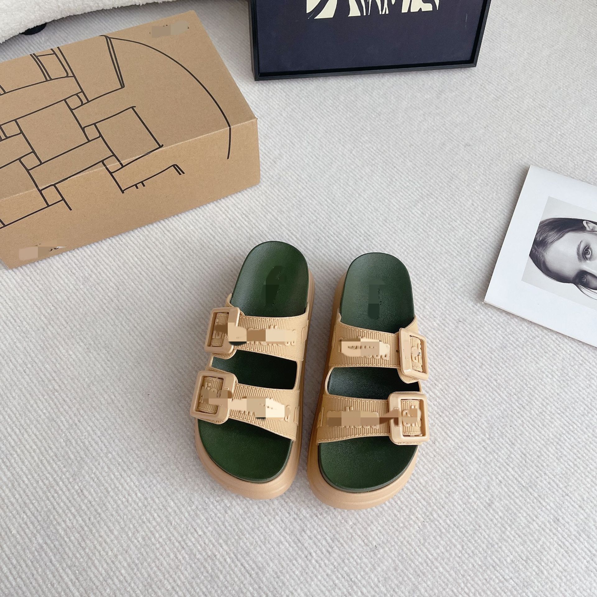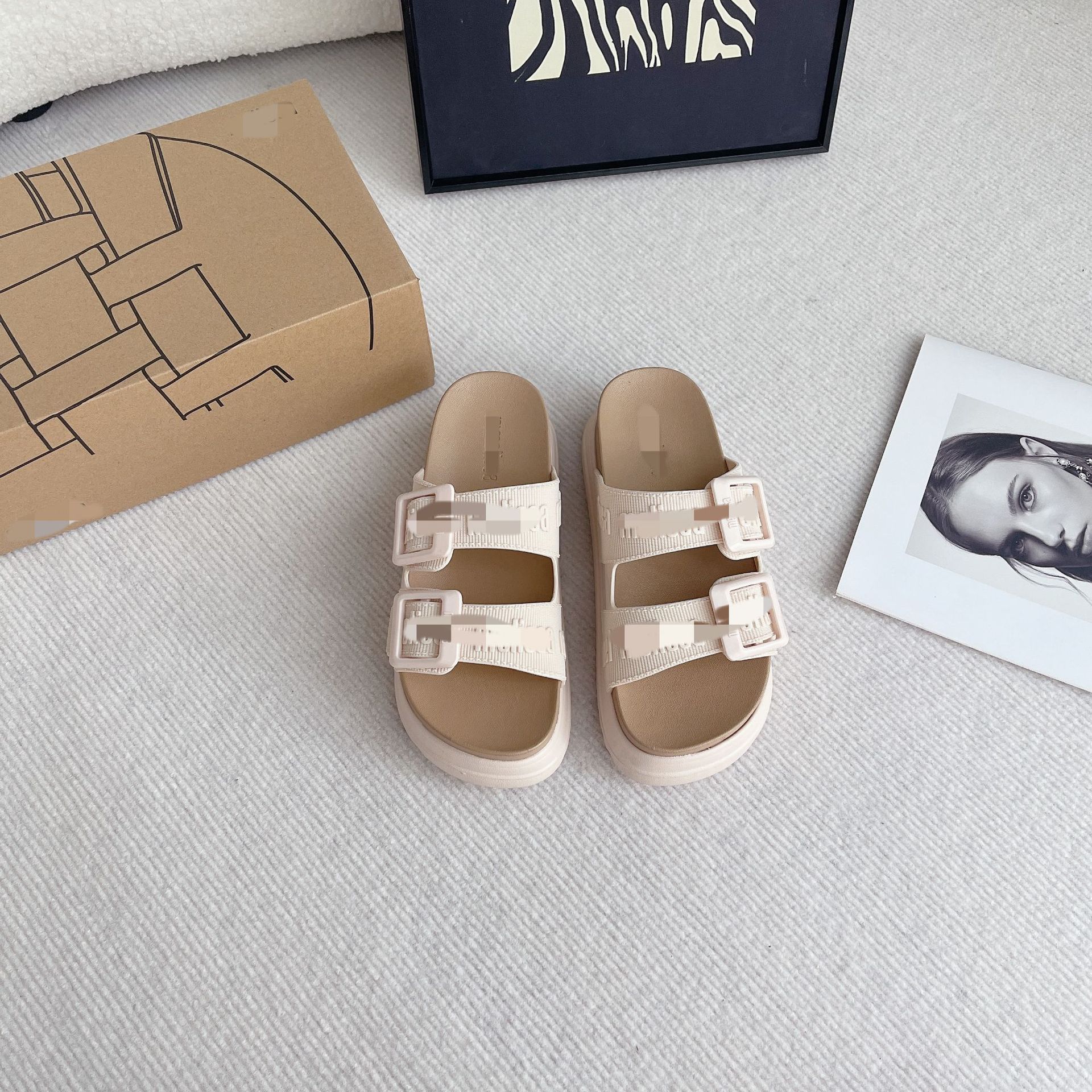 2026년 신상 여름 메이*샤 스타일 플랫폼 두꺼운 밑창 원스트랩 더블 버클 젤리 슈즈 캐주얼 비치 샌들스토어 가기