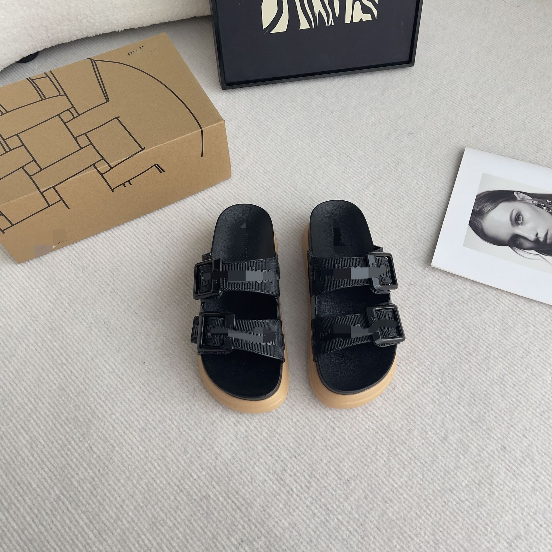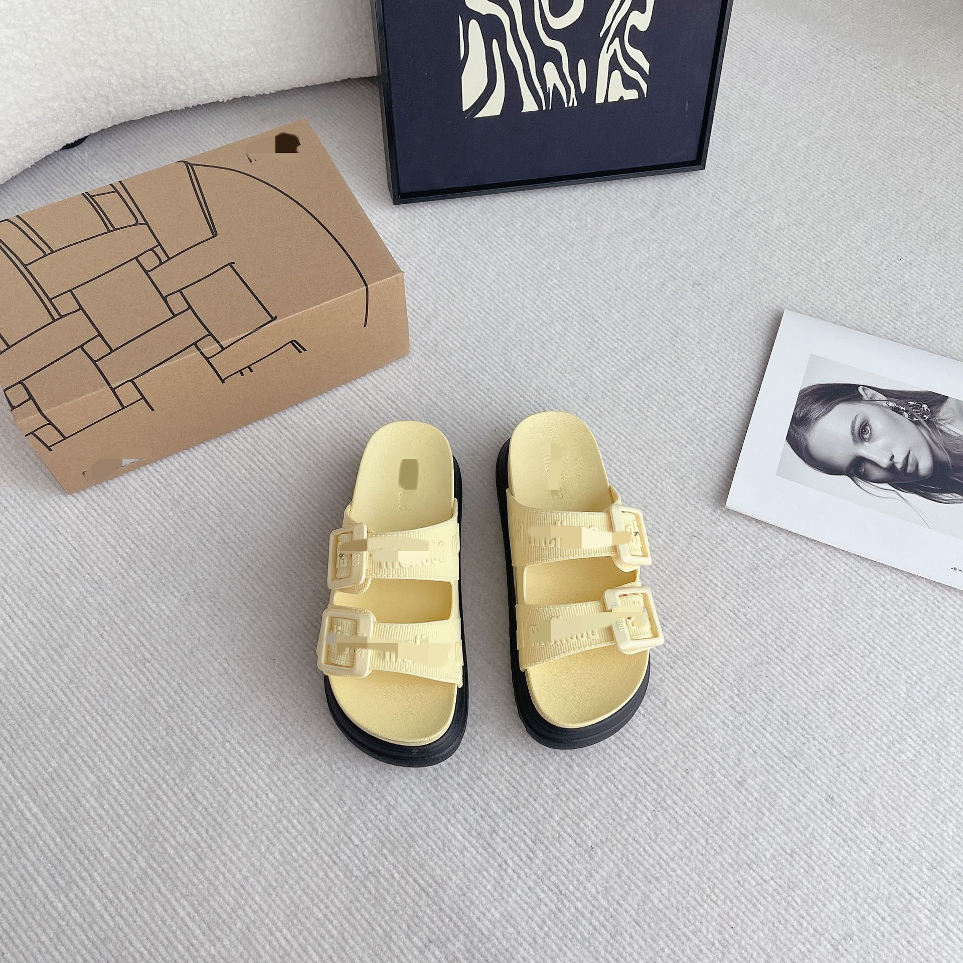 2026년 신상 여름 메이*샤 스타일 플랫폼 두꺼운 밑창 원스트랩 더블 버클 젤리 슈즈 캐주얼 비치 샌들