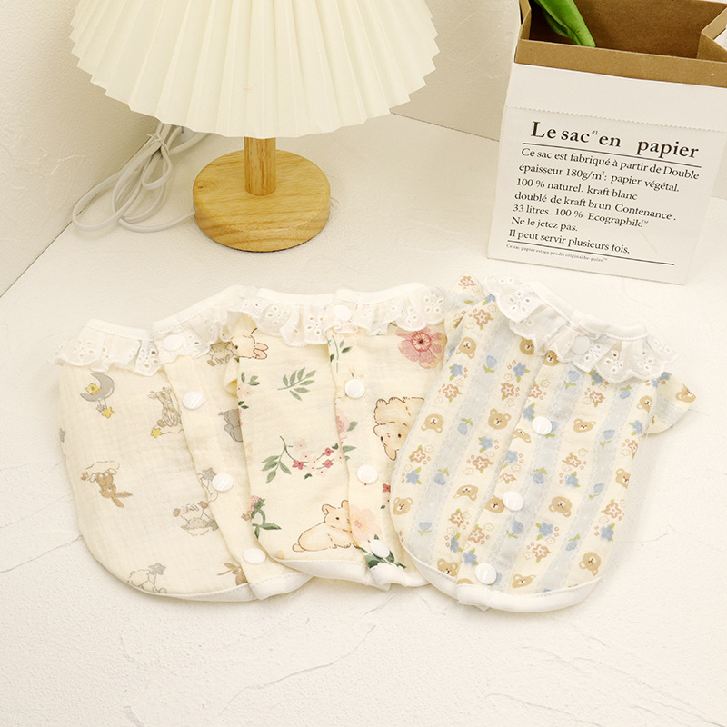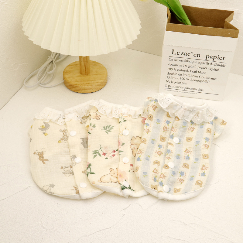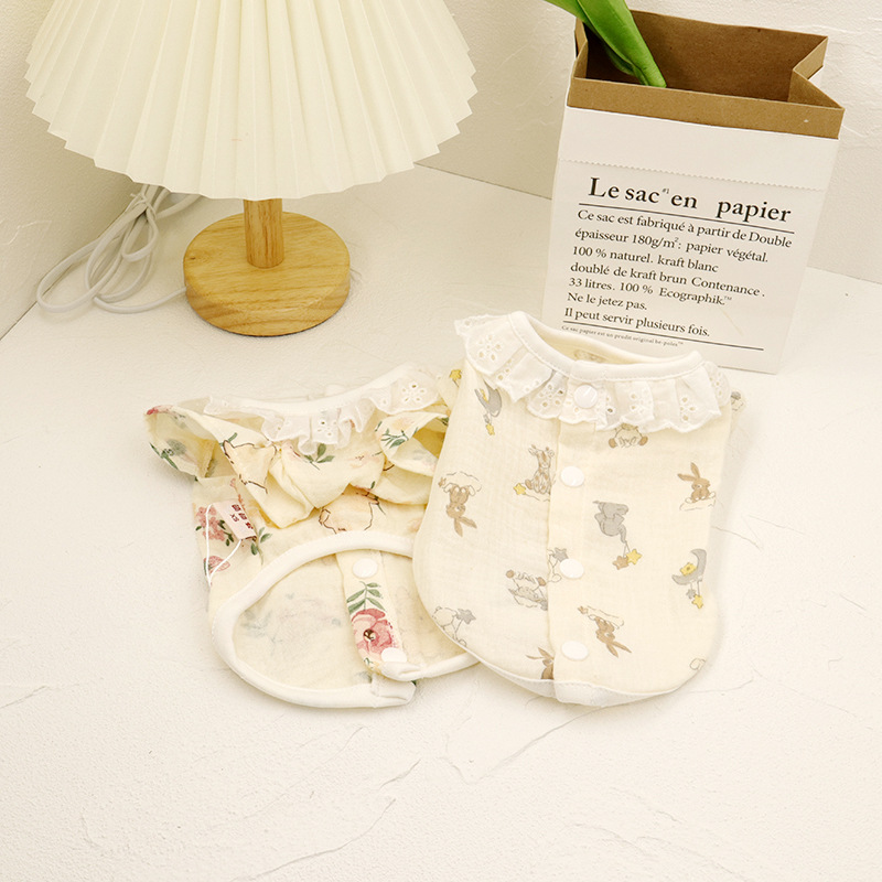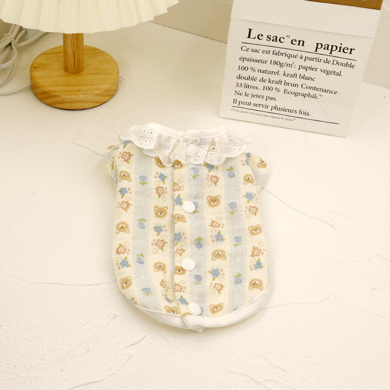 애완 동물 옷 봄과 여름 Ins 일본과 한국 스타일의 고양이 옷 고양이 개 옷 뚱뚱한 두 옷 뚱뚱한 개 홈 잠옷