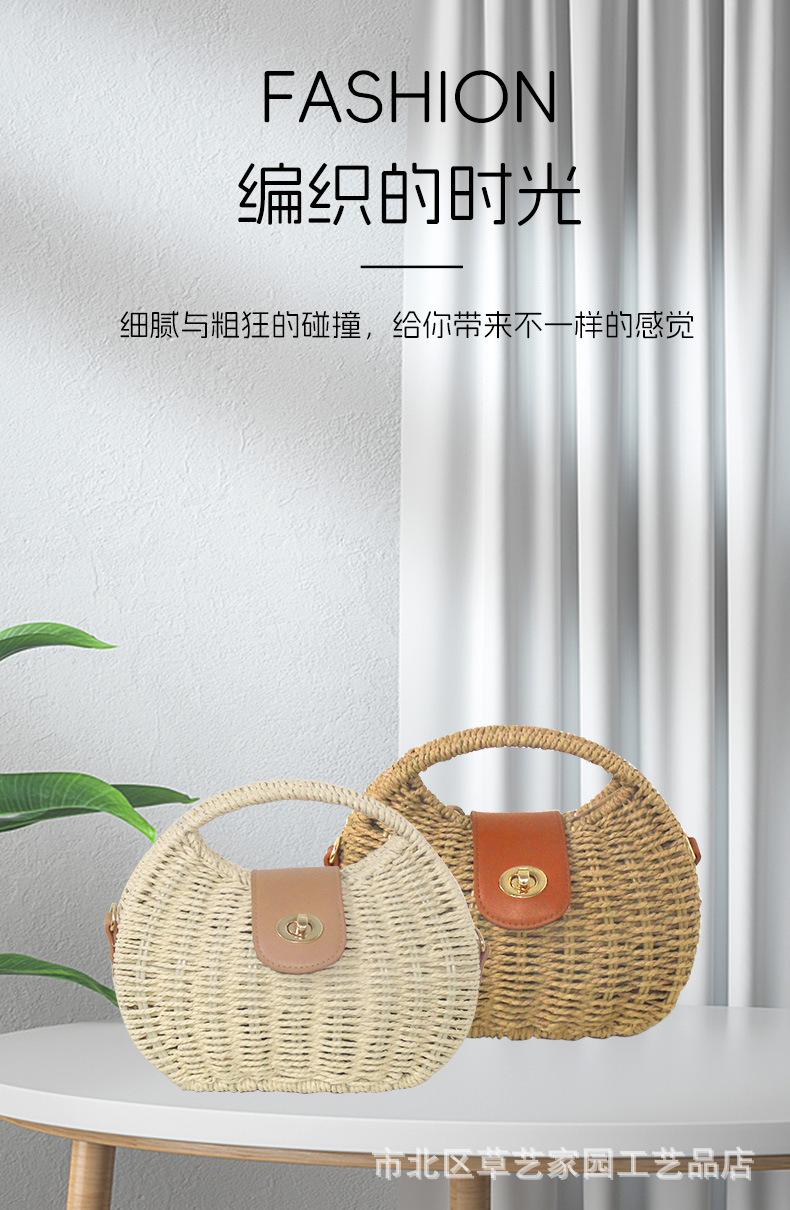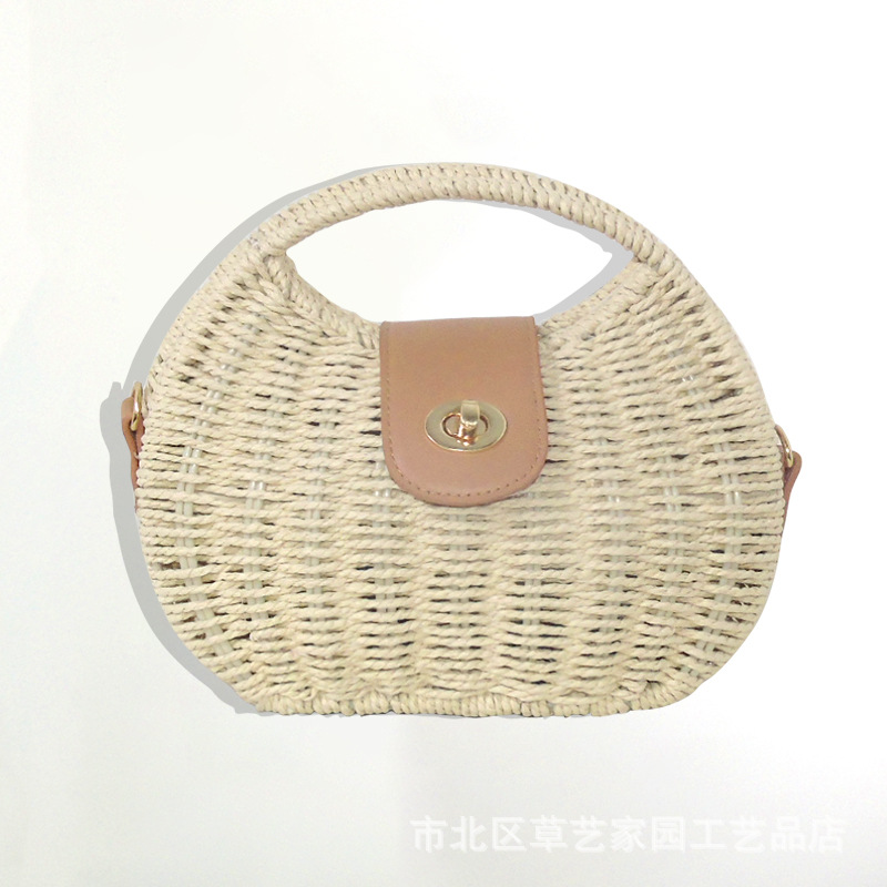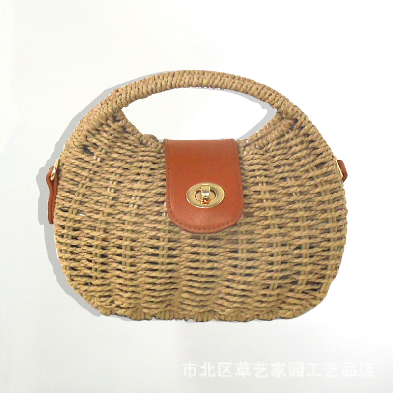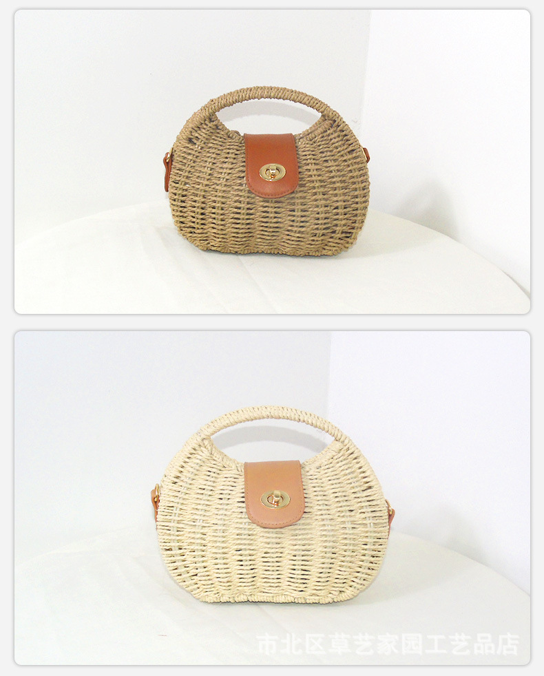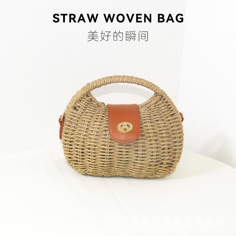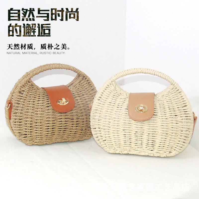해변 휴일 스타일 비치 백 2024 여름 새로운 아티스트 레트로 짠 가방 휴대용 어깨 가방 크로스 바디스토어 가기