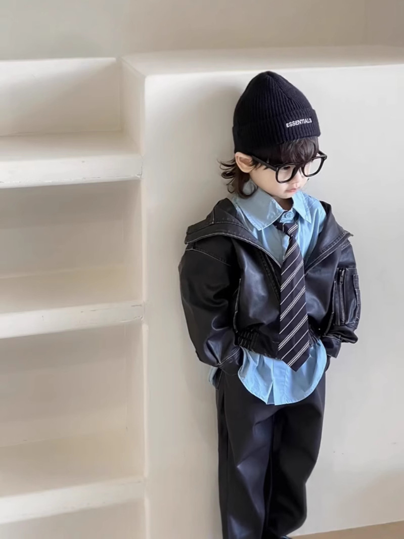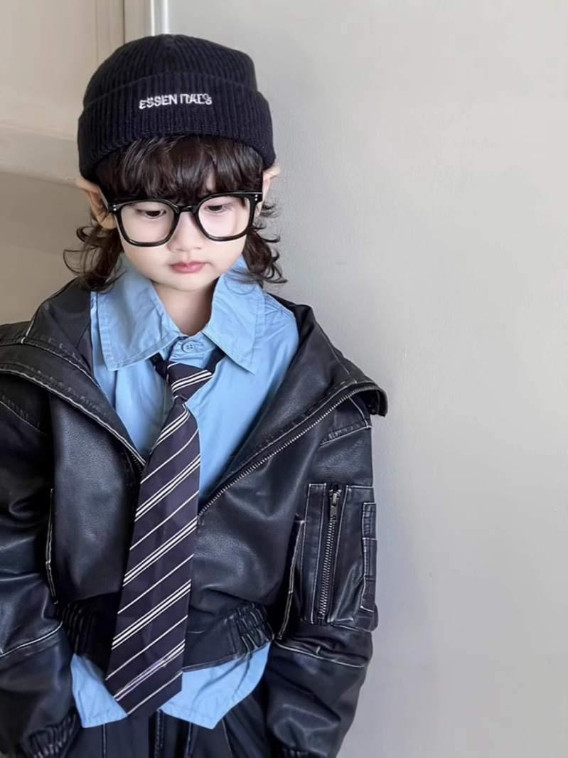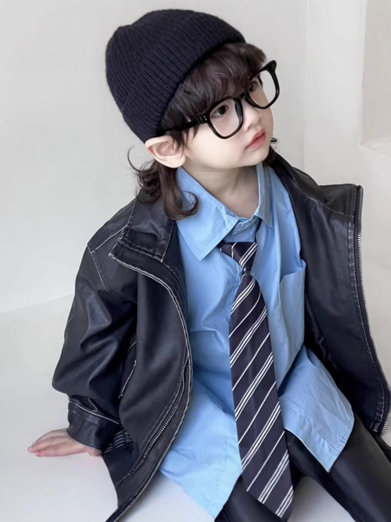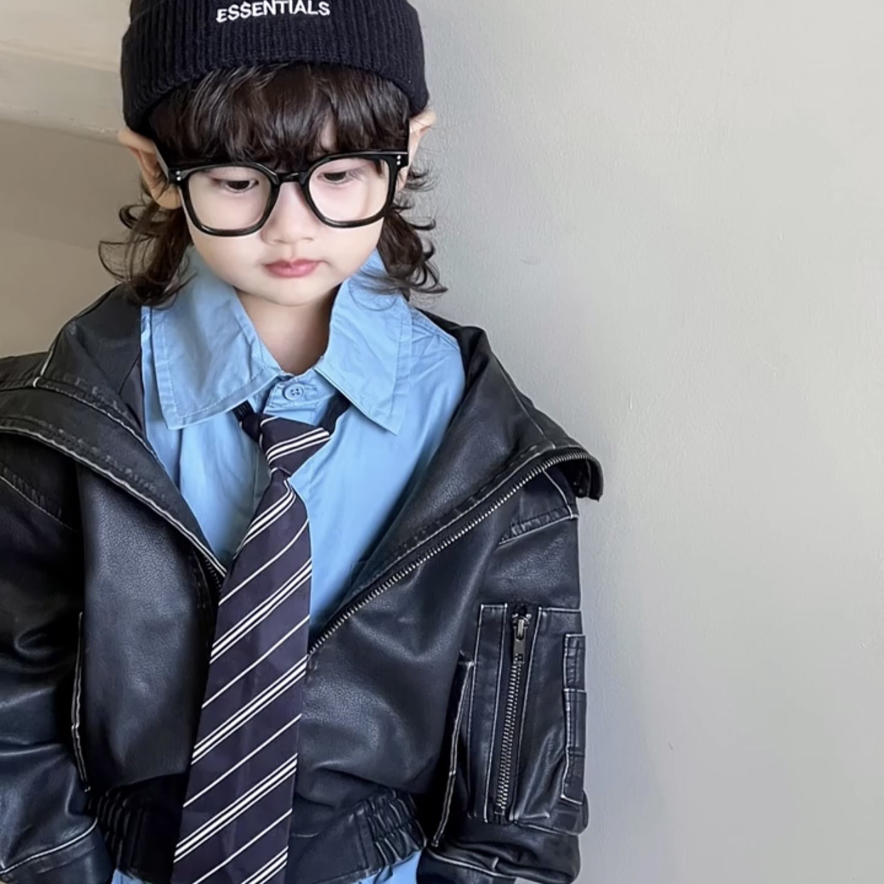 2025 새로운 한국식 봄 여름 아동복 어린이 블루 셔츠 소년의 스타일리시 한 넥타이 탑