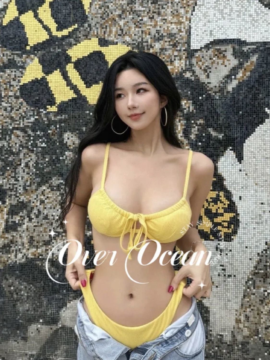 치즈 옐로우 비키니 작은 가슴 푸시업 분할 홀리데이 비치 3 피스 세트 작은 가슴 푸시 업 스파이스 걸스 순수한 욕망 스위트스토어 가기