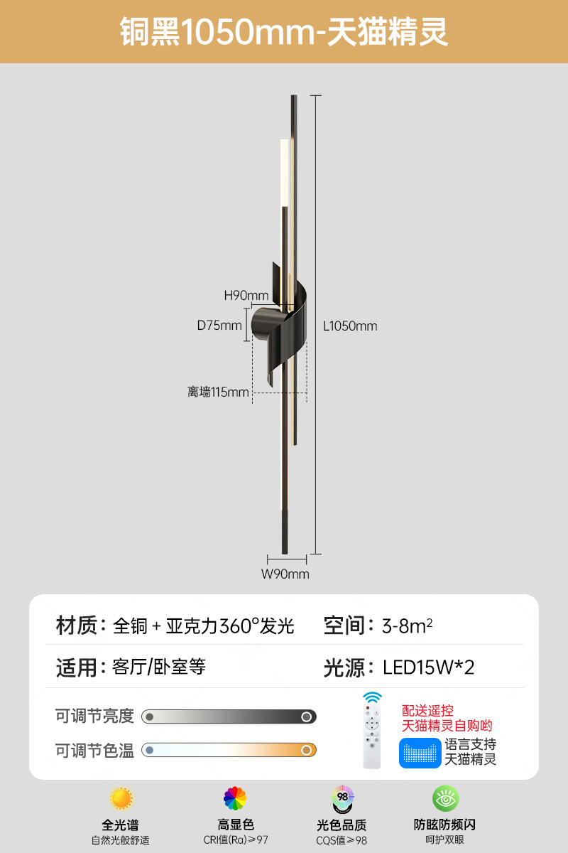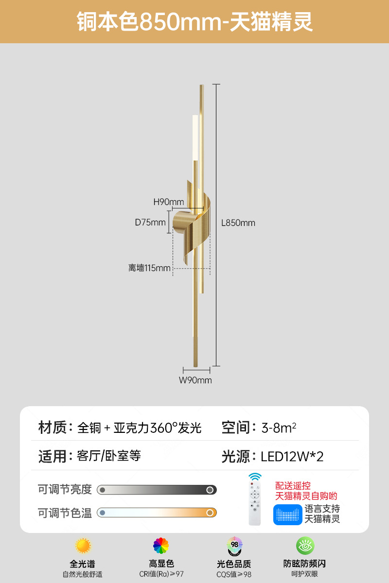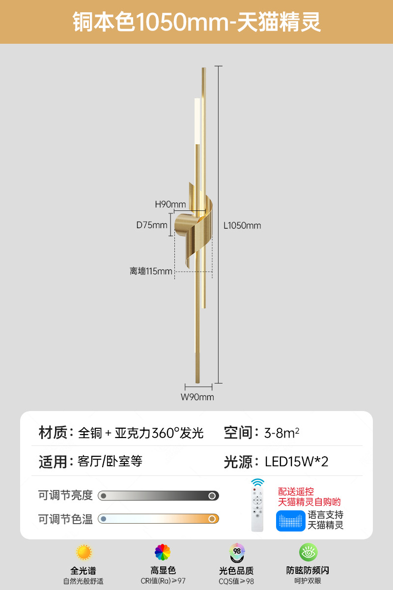• 구리 색상 1050 긴 3색 무단계 지원 Tmall Elf