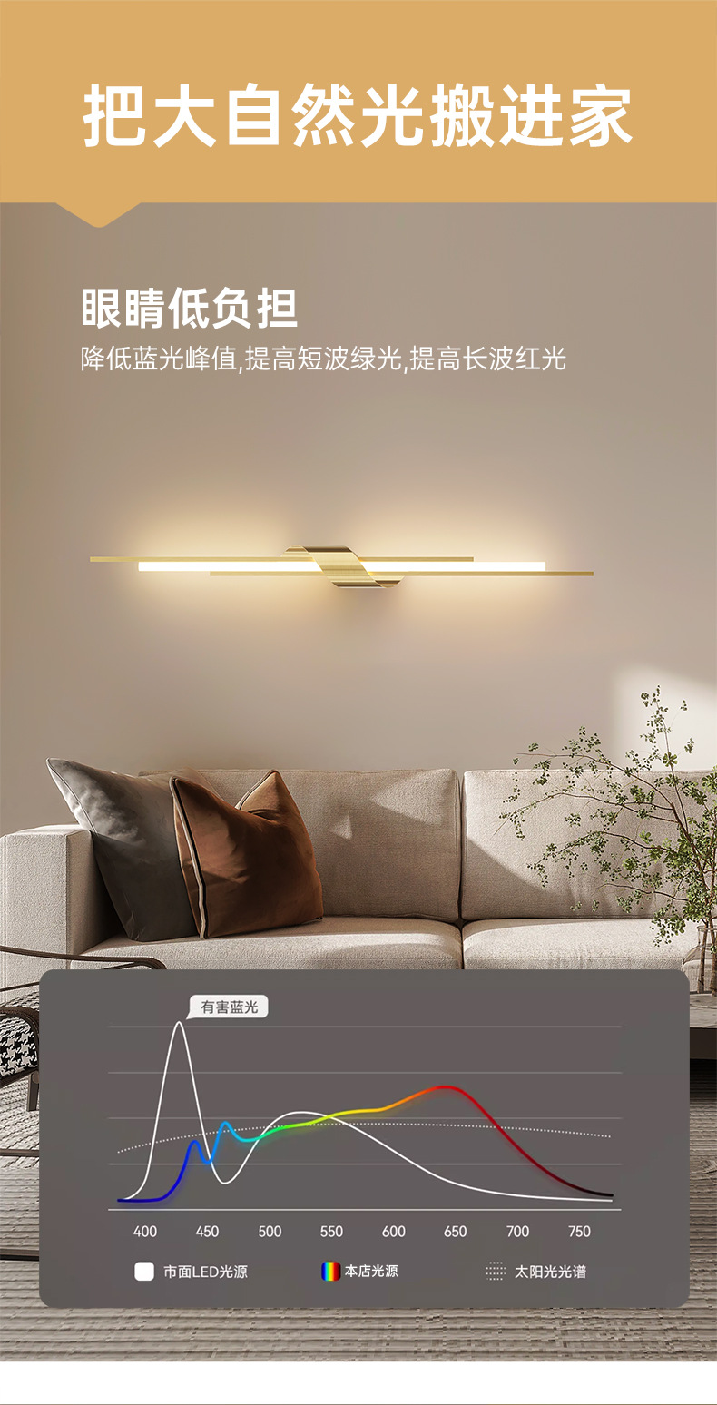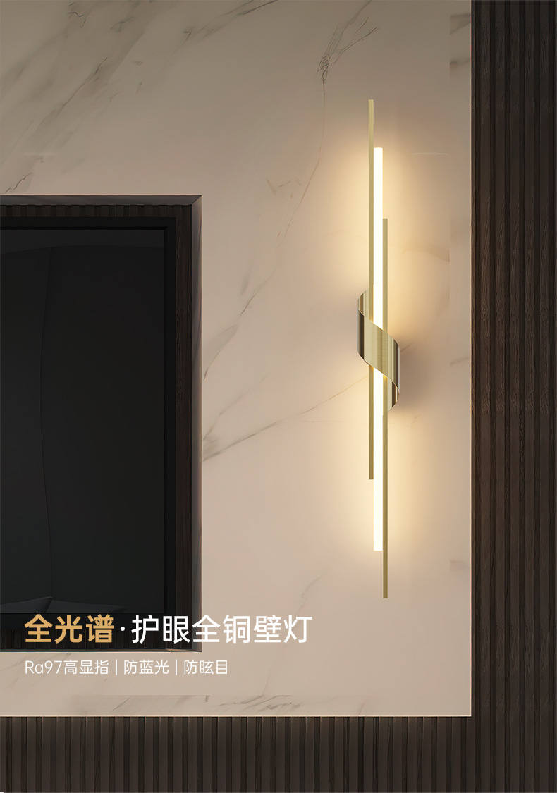 가벼운 고급스러운 구리 침실 머리맡 벽등, 가벼운 고급스러운 거실 배경 벽 계단 복도 조명, LED 통로 조명기구