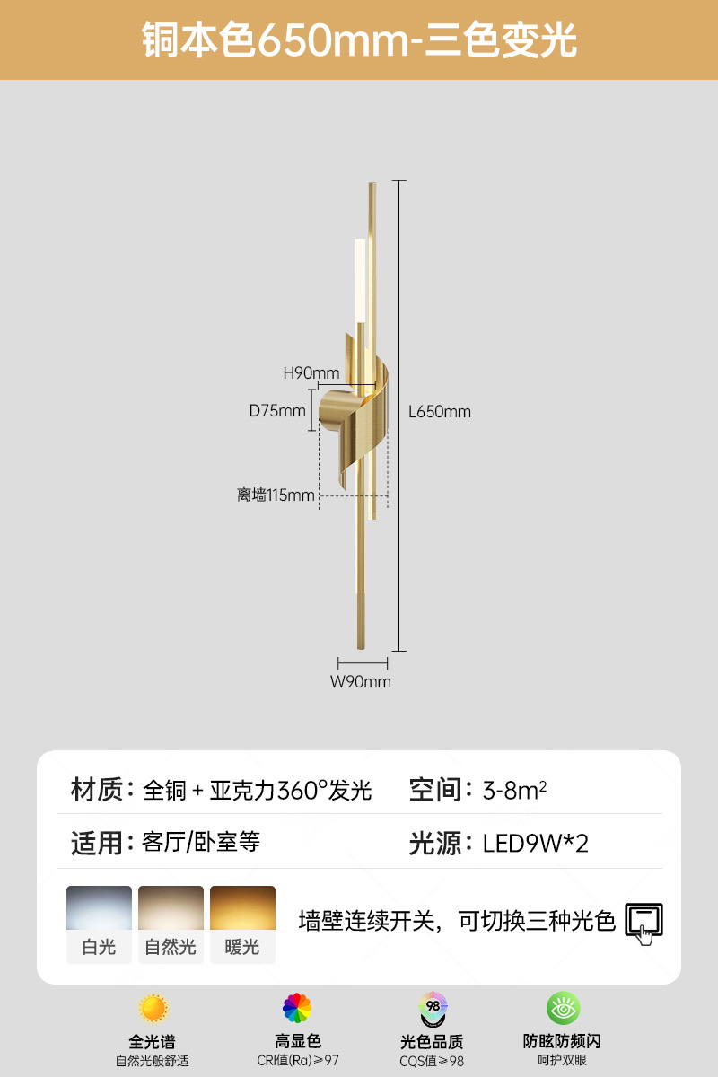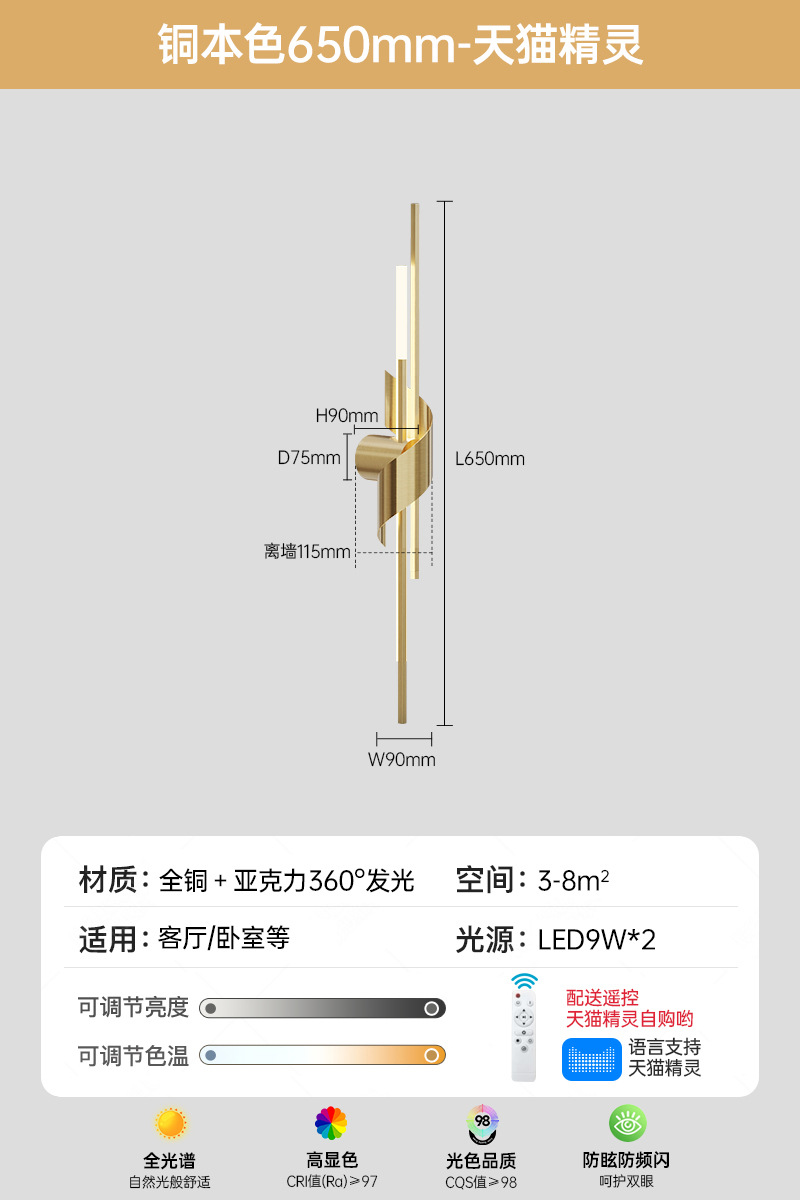 • 구리 색상 650 긴 3색 무단계 지원 Tmall Elf