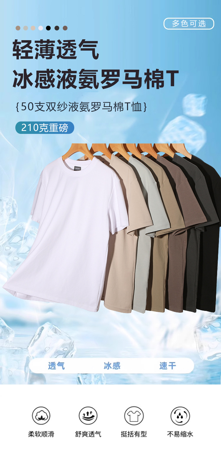 26년 신상 반팔 티셔츠 남성용 봄 여름 루즈핏 단색 반팔 티셔츠 아이스감 항균 상의 50수 이중사스토어 가기