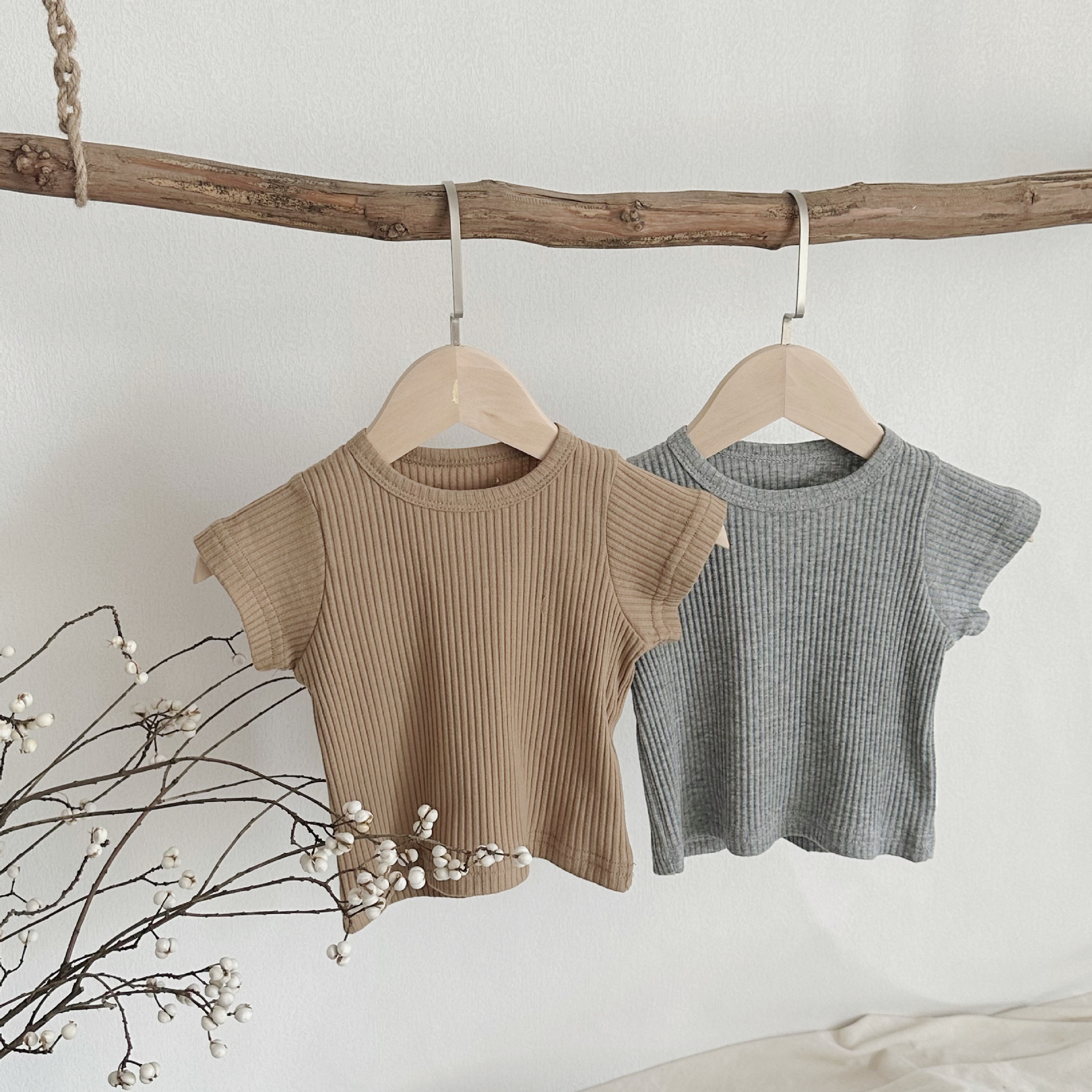INS 여름 아기 크루 넥 반팔 핏 백 셔츠 남자와 여자의 아기 심플 탑스토어 가기
