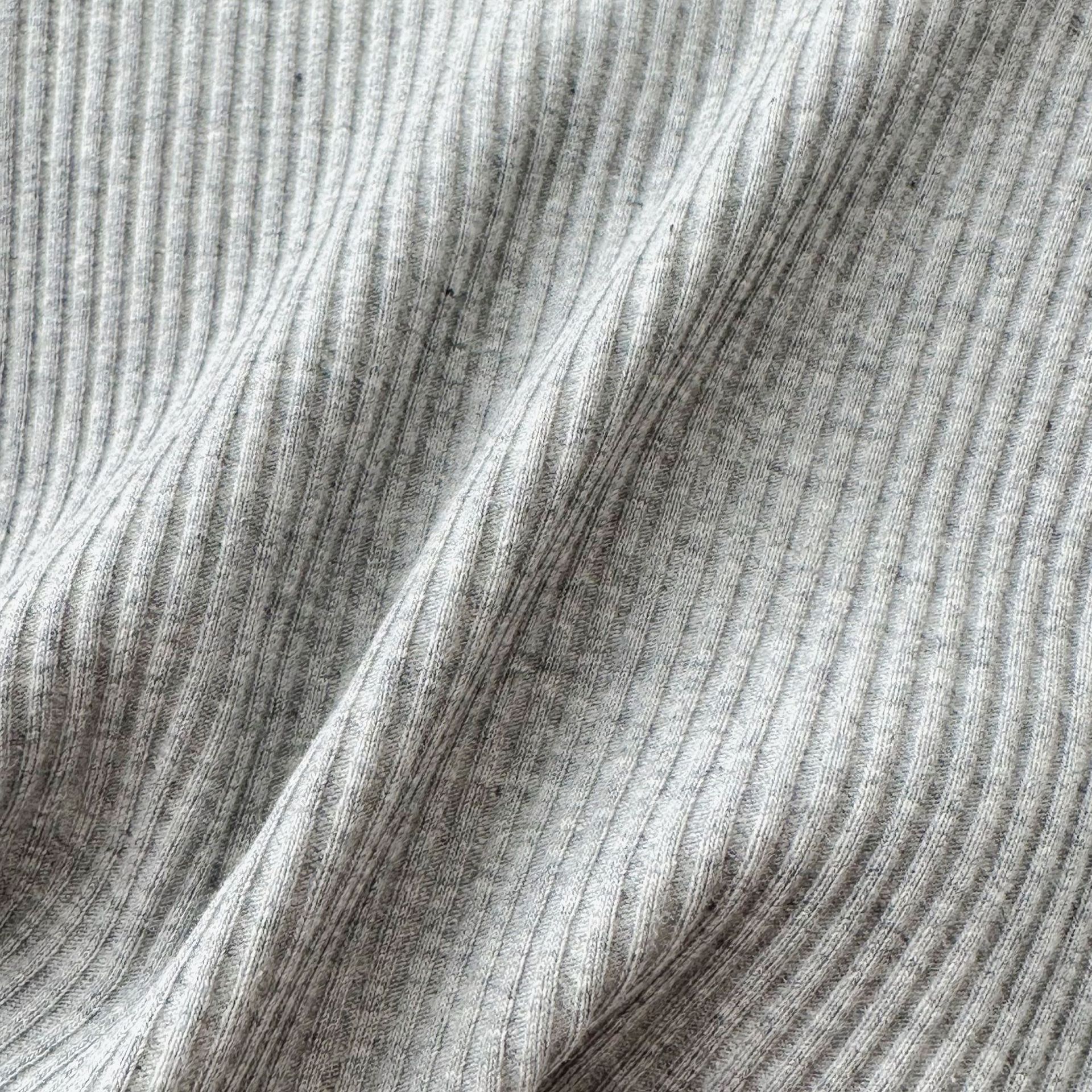 • 그레이 라운드넥 반팔 핏 스트라이프 밑단 셔츠