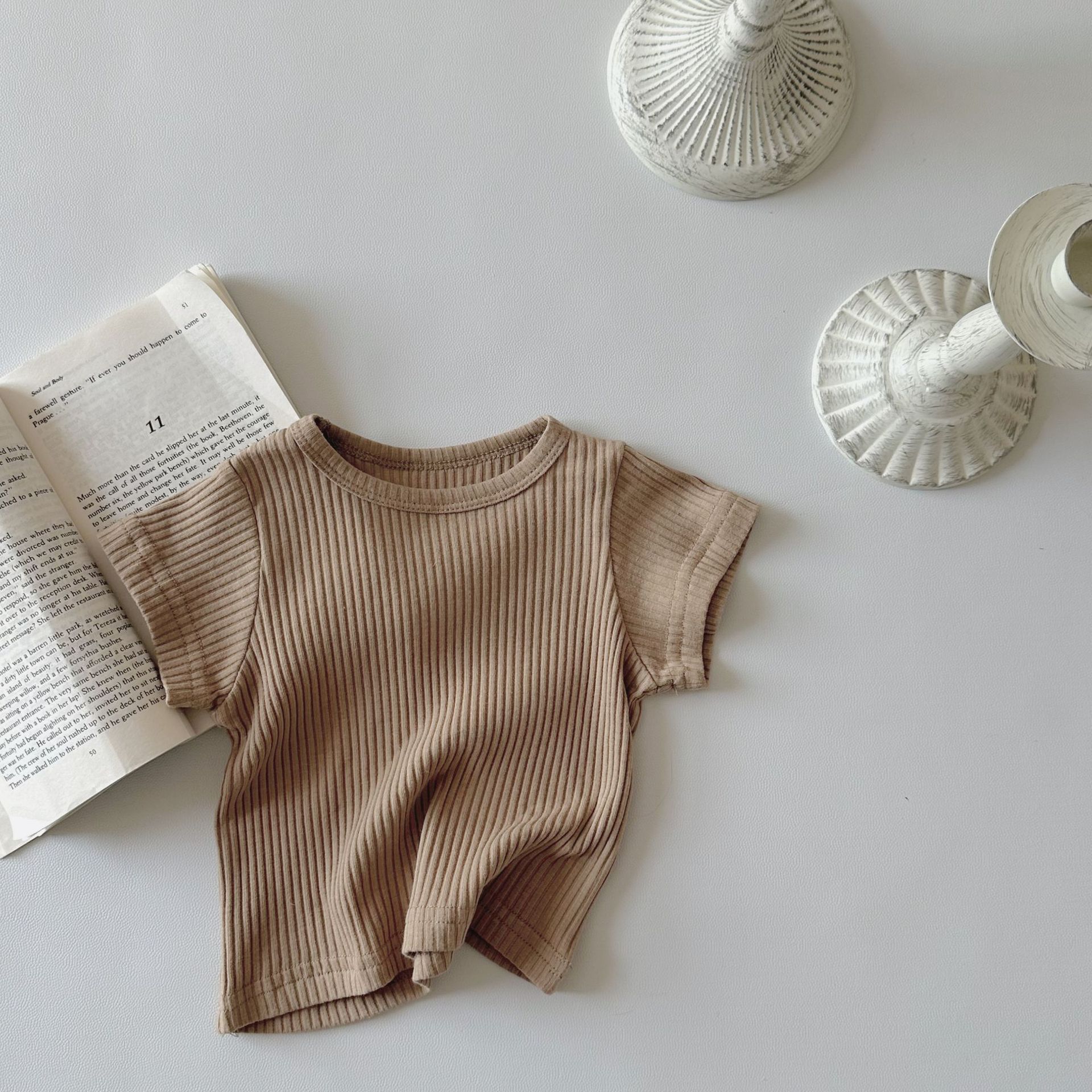 INS 여름 아기 크루 넥 반팔 핏 백 셔츠 남자와 여자의 아기 심플 탑