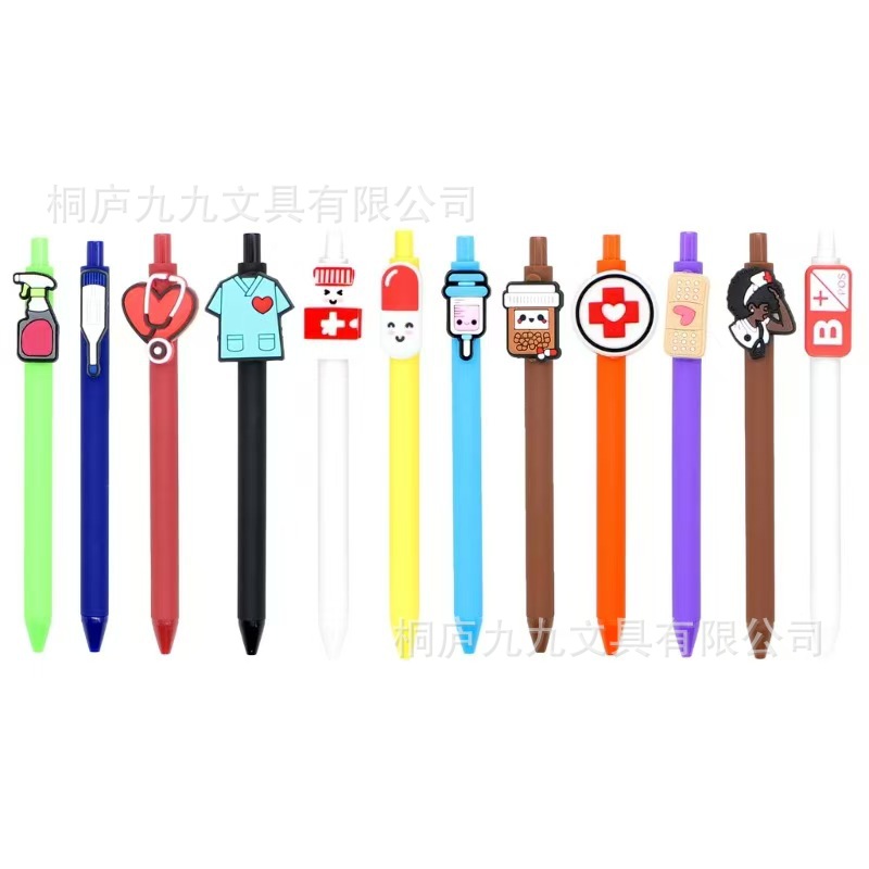 PVC卡通医护按动塑料圆珠笔定制印刷logo单色500支起订,有PVC卡通形象要求可咨询客服
