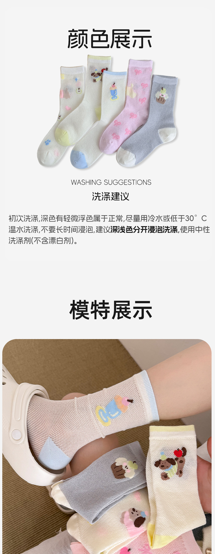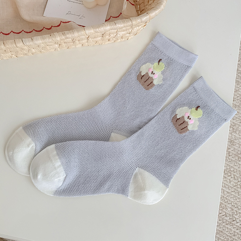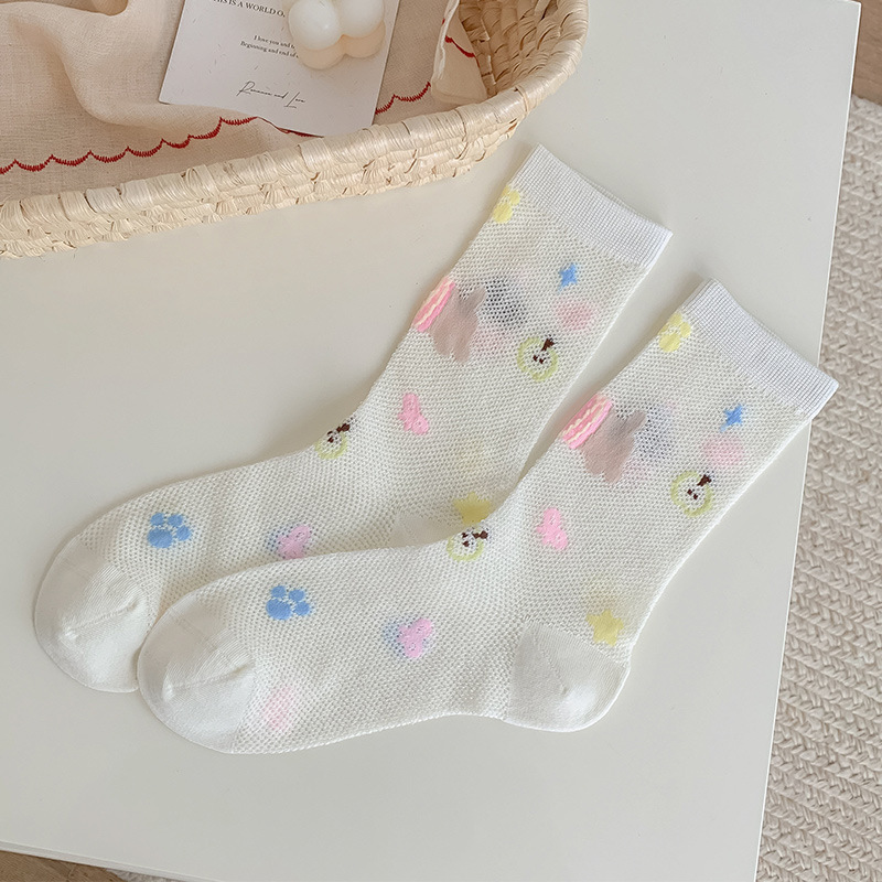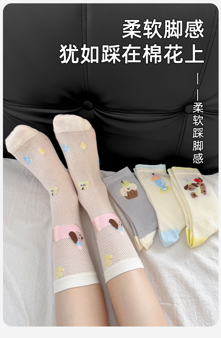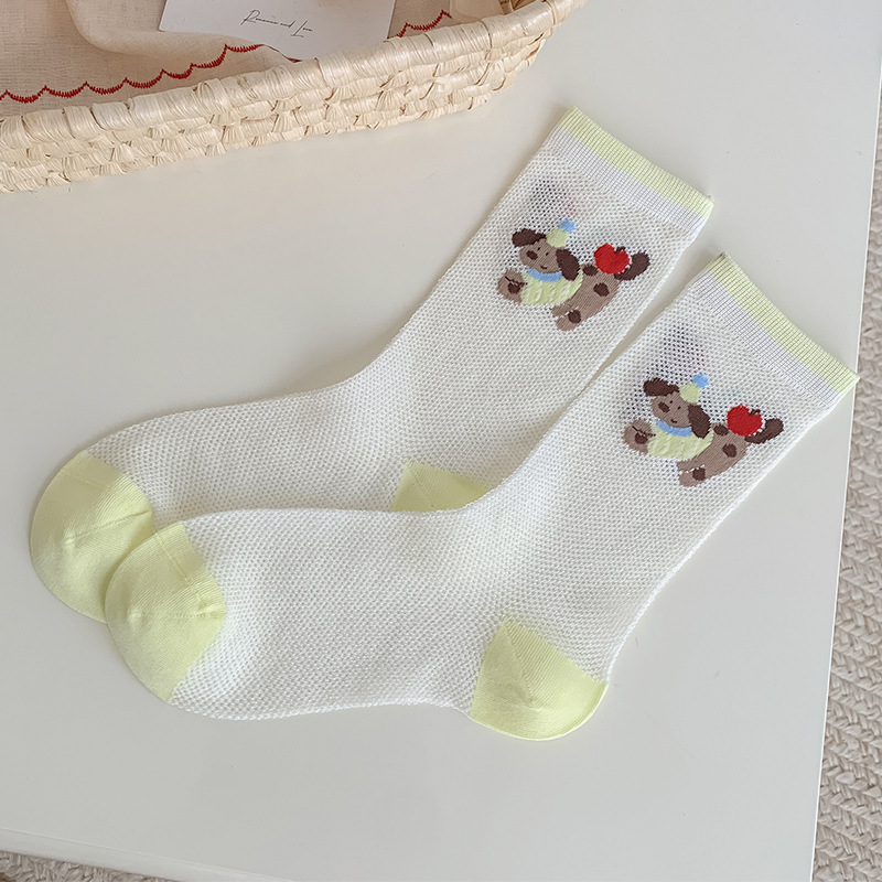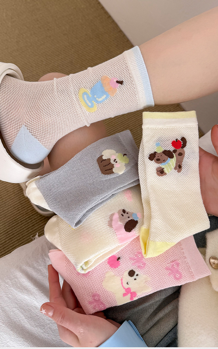 양말 여성의 여름 새로운 Ins 트렌디 귀여운 강아지 만화 일본 스타일 메쉬 중간 크기 양말 유행 스택 양말