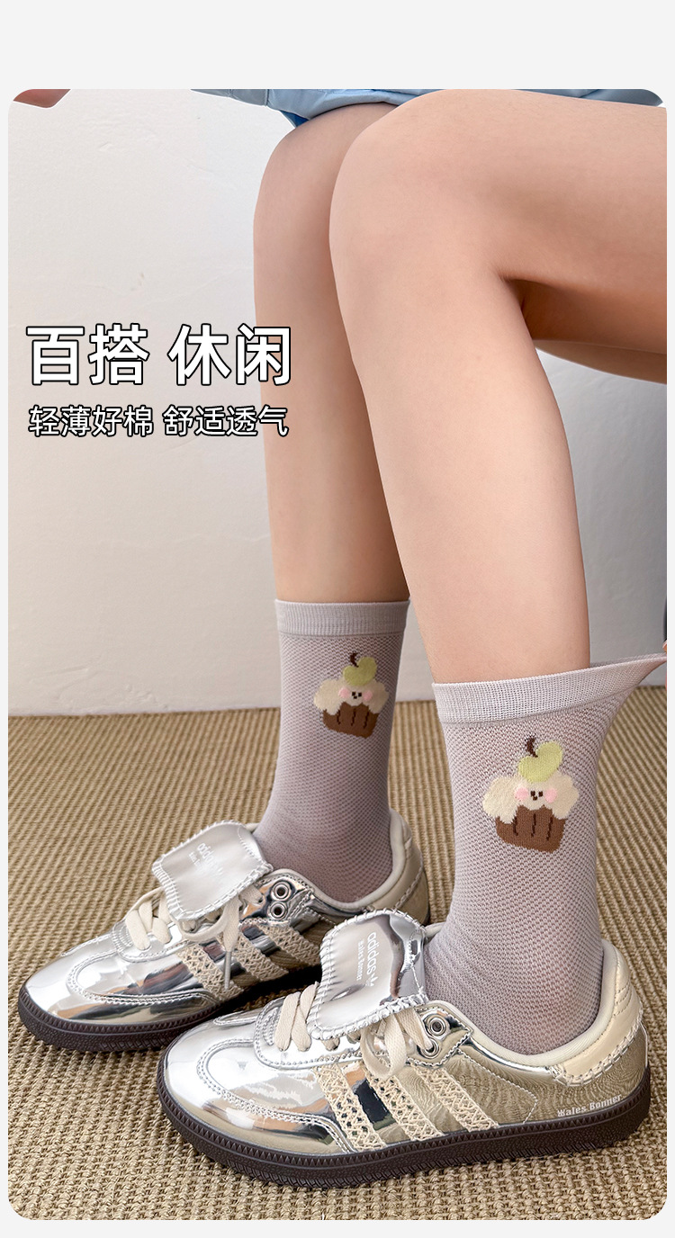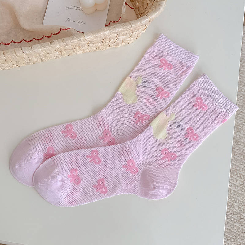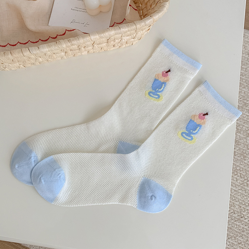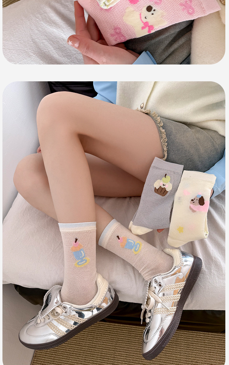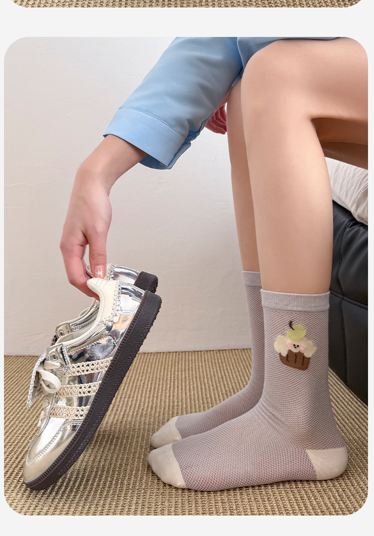 양말 여성의 여름 새로운 Ins 트렌디 귀여운 강아지 만화 일본 스타일 메쉬 중간 크기 양말 유행 스택 양말