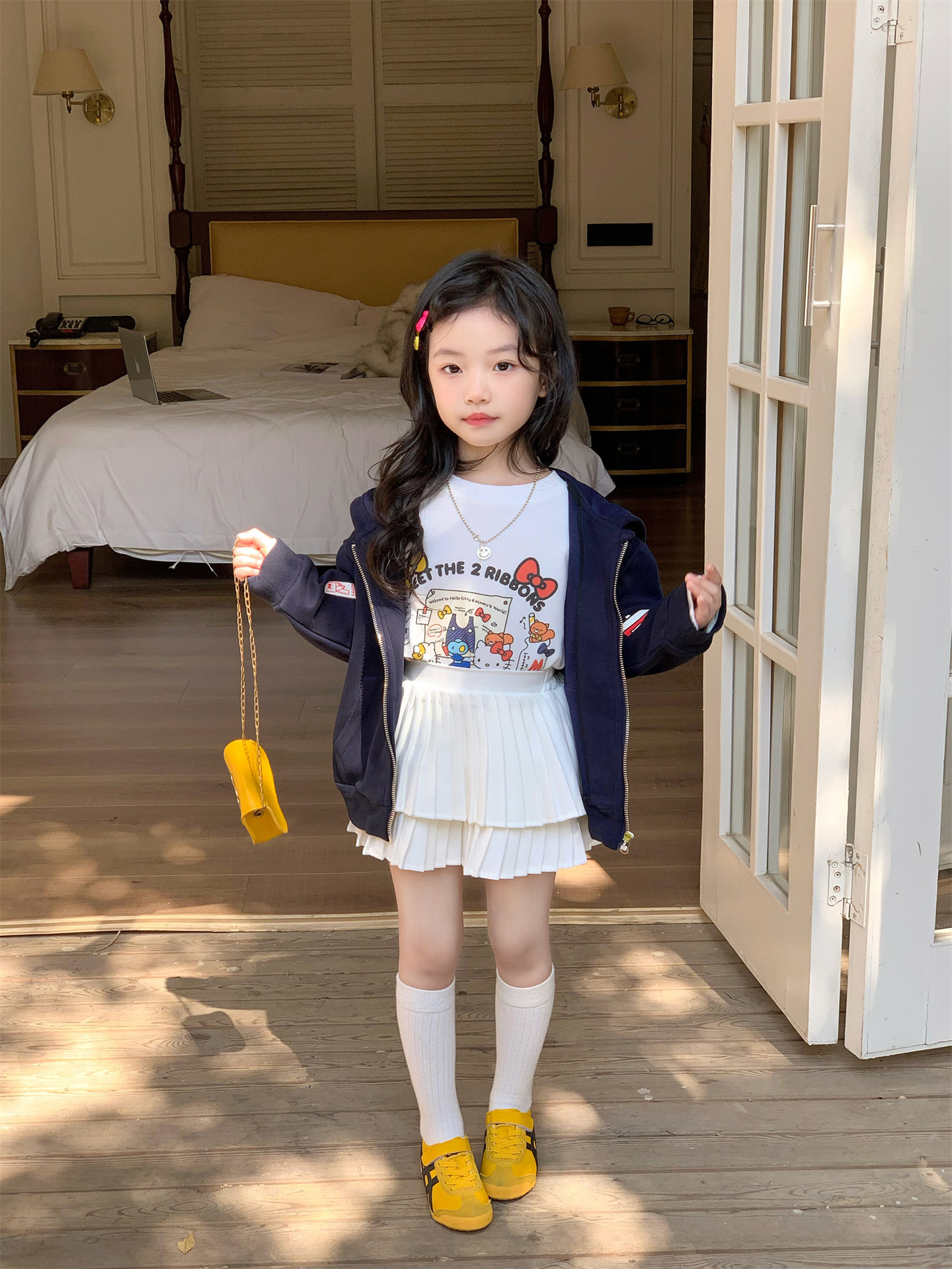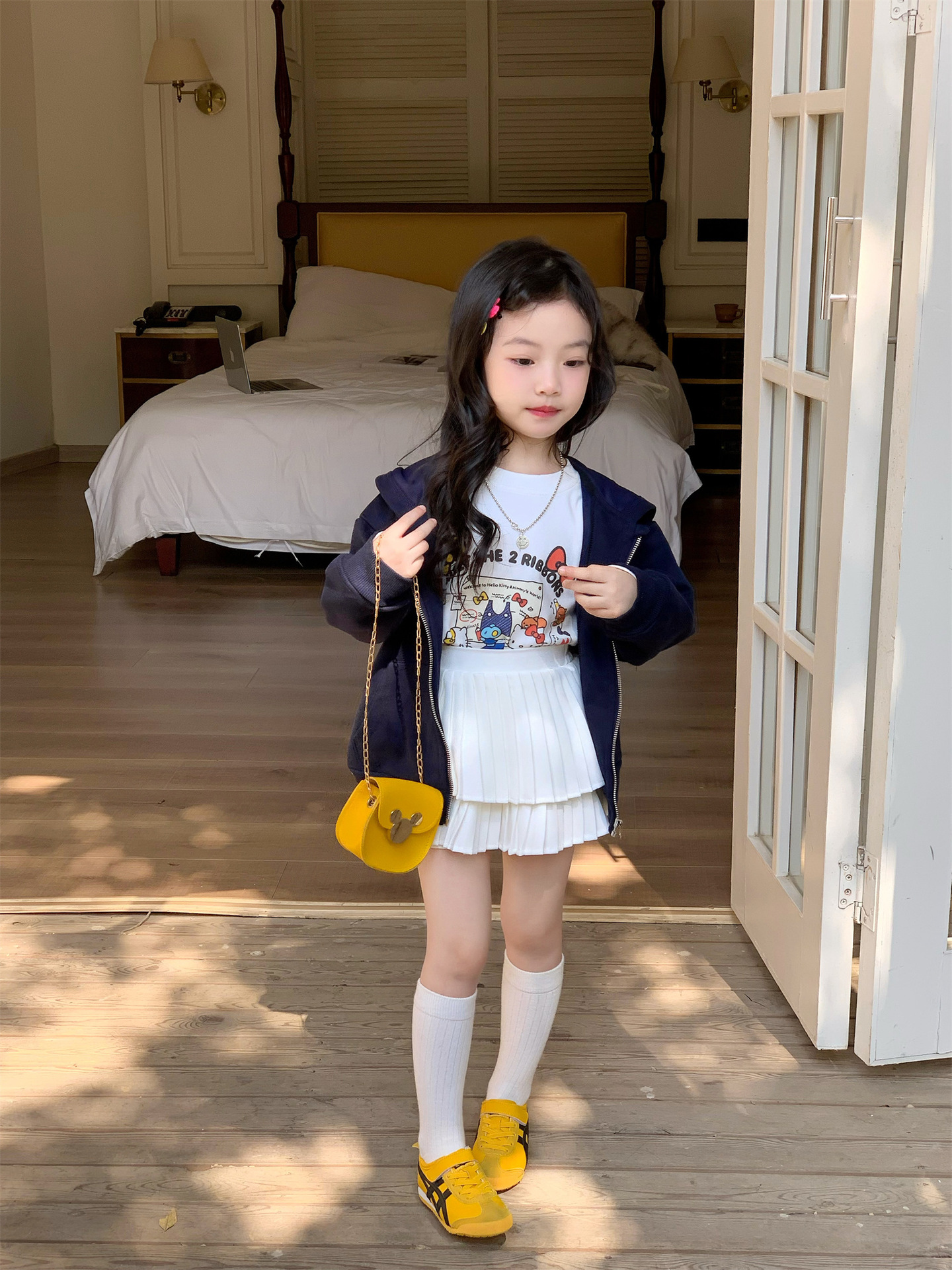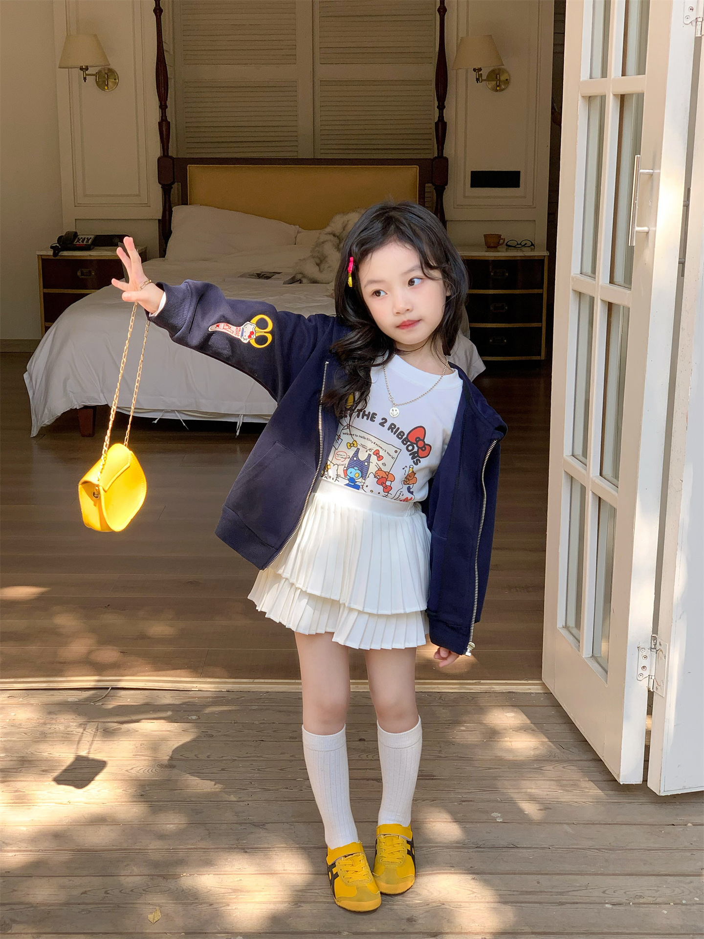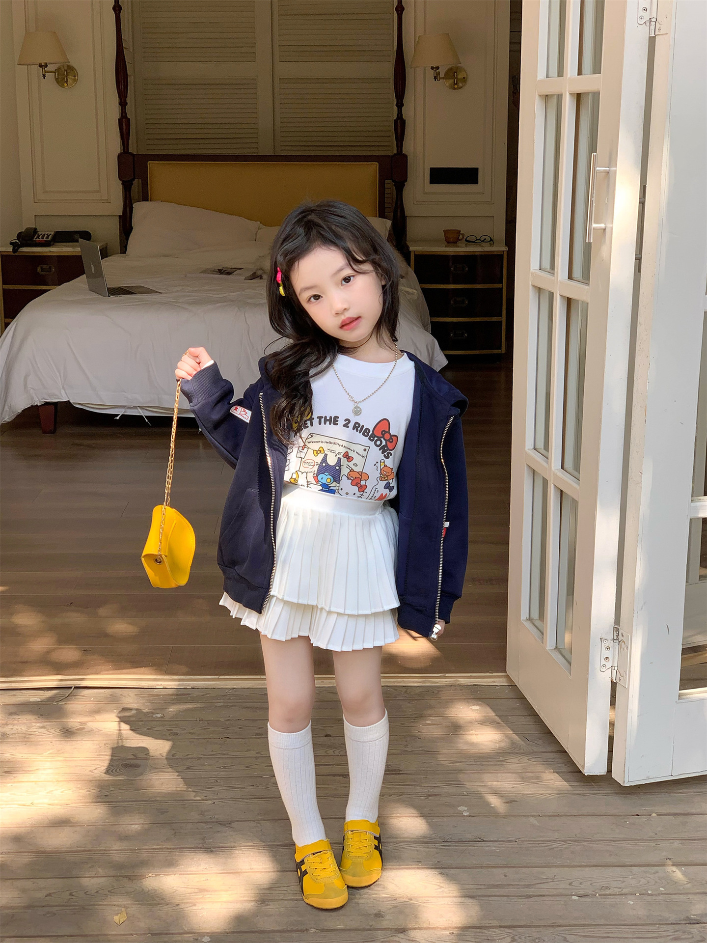 여아 2025 가을 신상 여아 만화 캐릭터 후드 재킷+긴팔 티셔츠+러플 스커트 팬츠 3종 세트