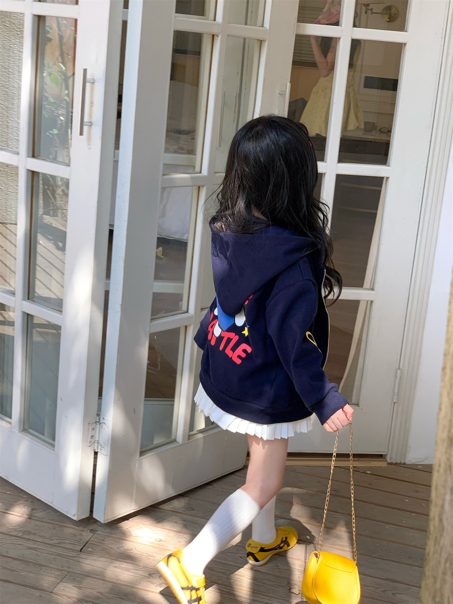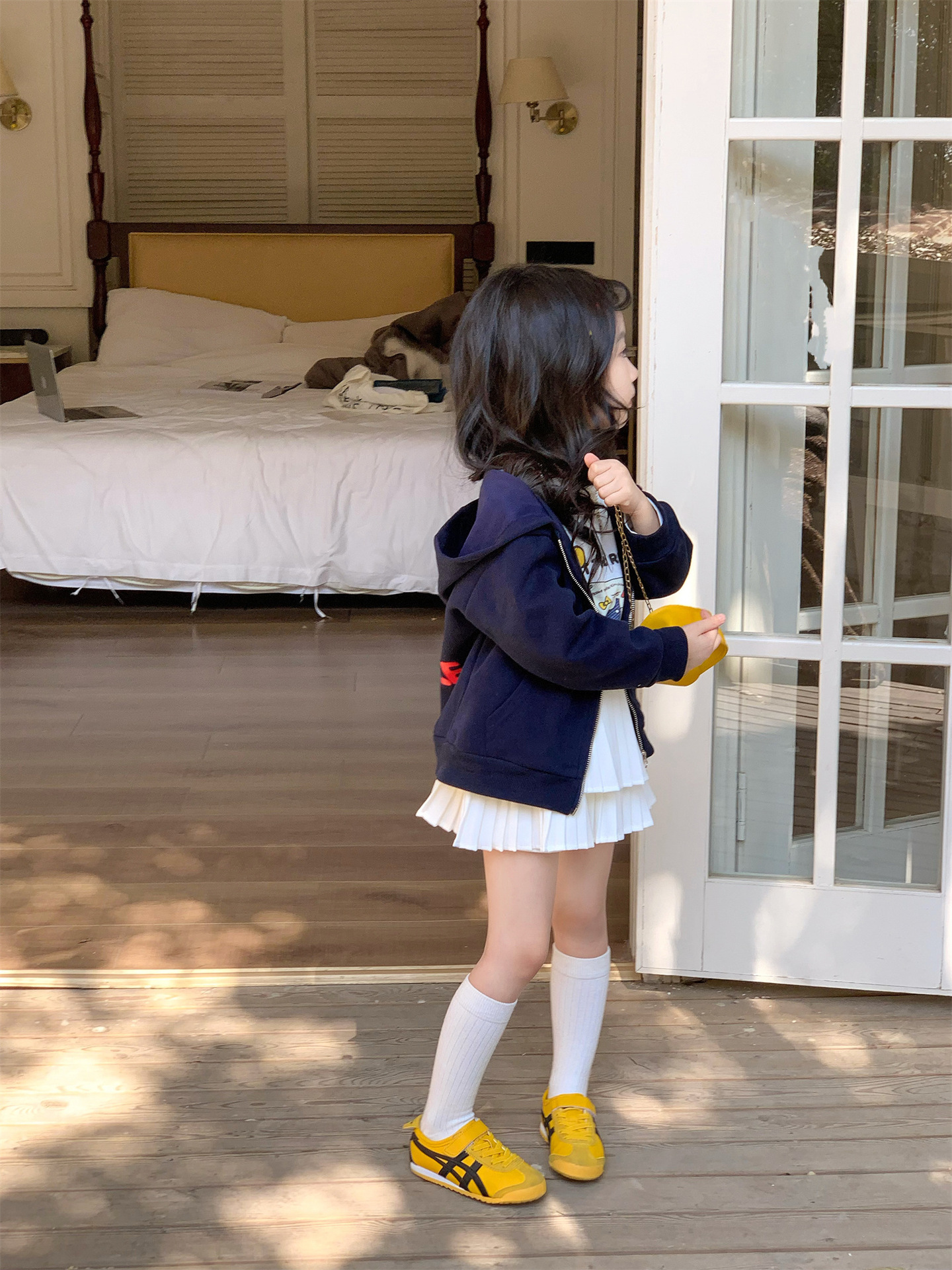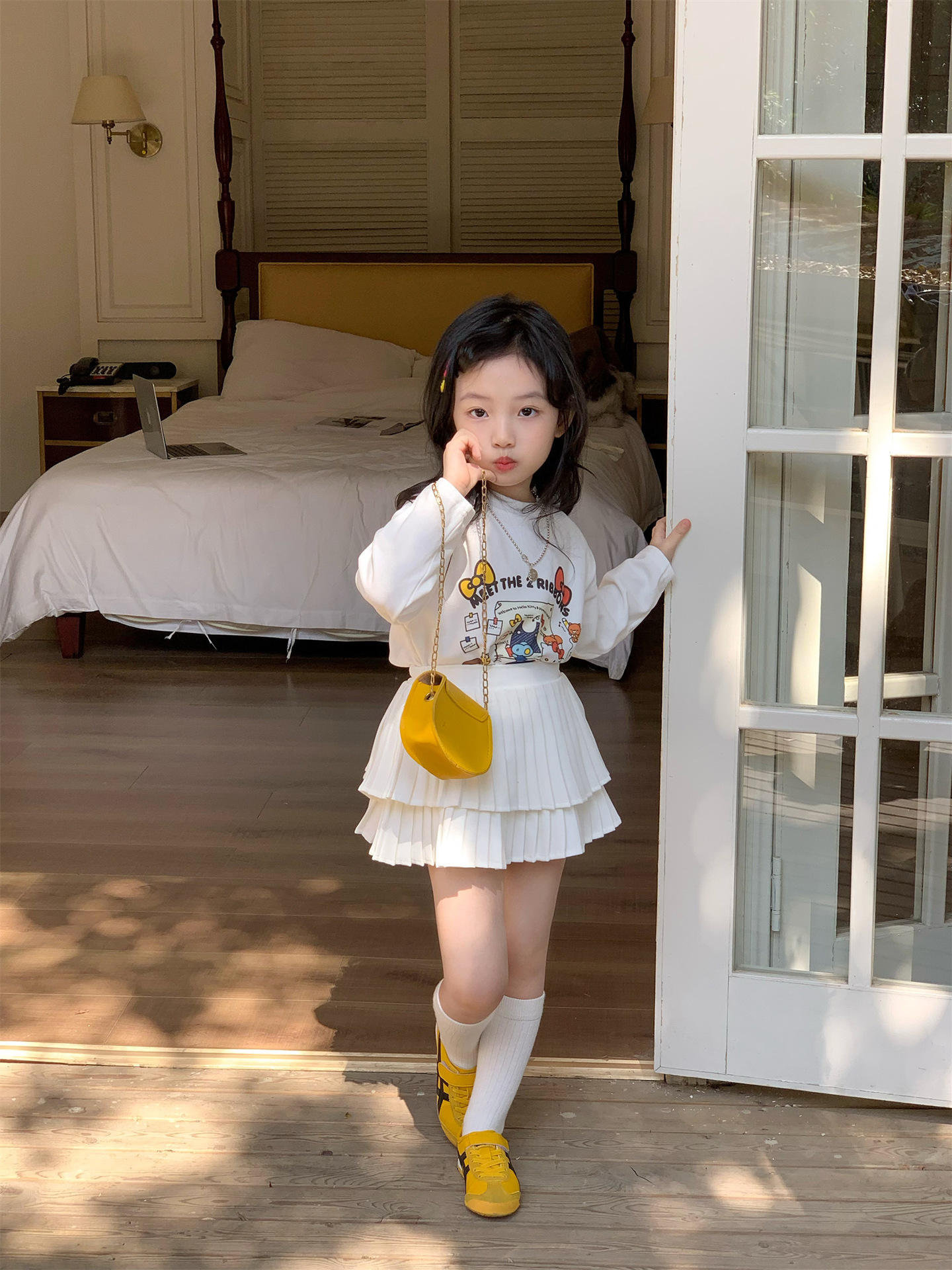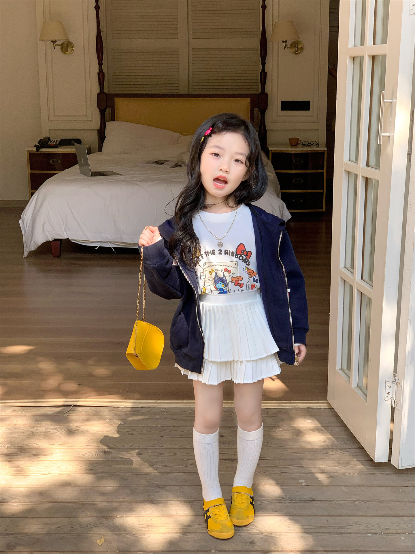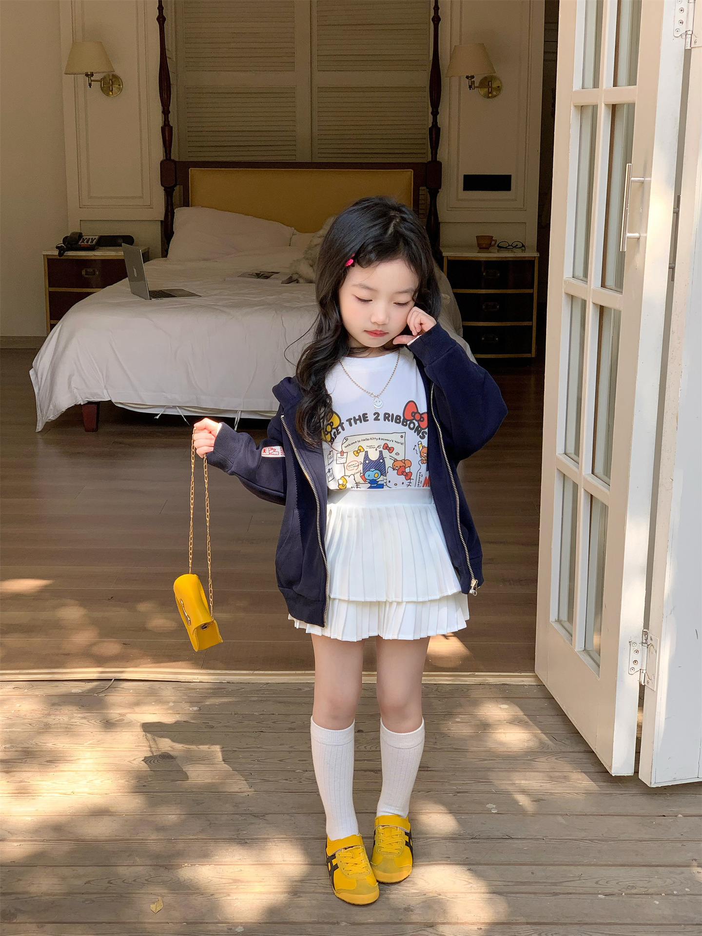여아 2025 가을 신상 여아 만화 캐릭터 후드 재킷+긴팔 티셔츠+러플 스커트 팬츠 3종 세트