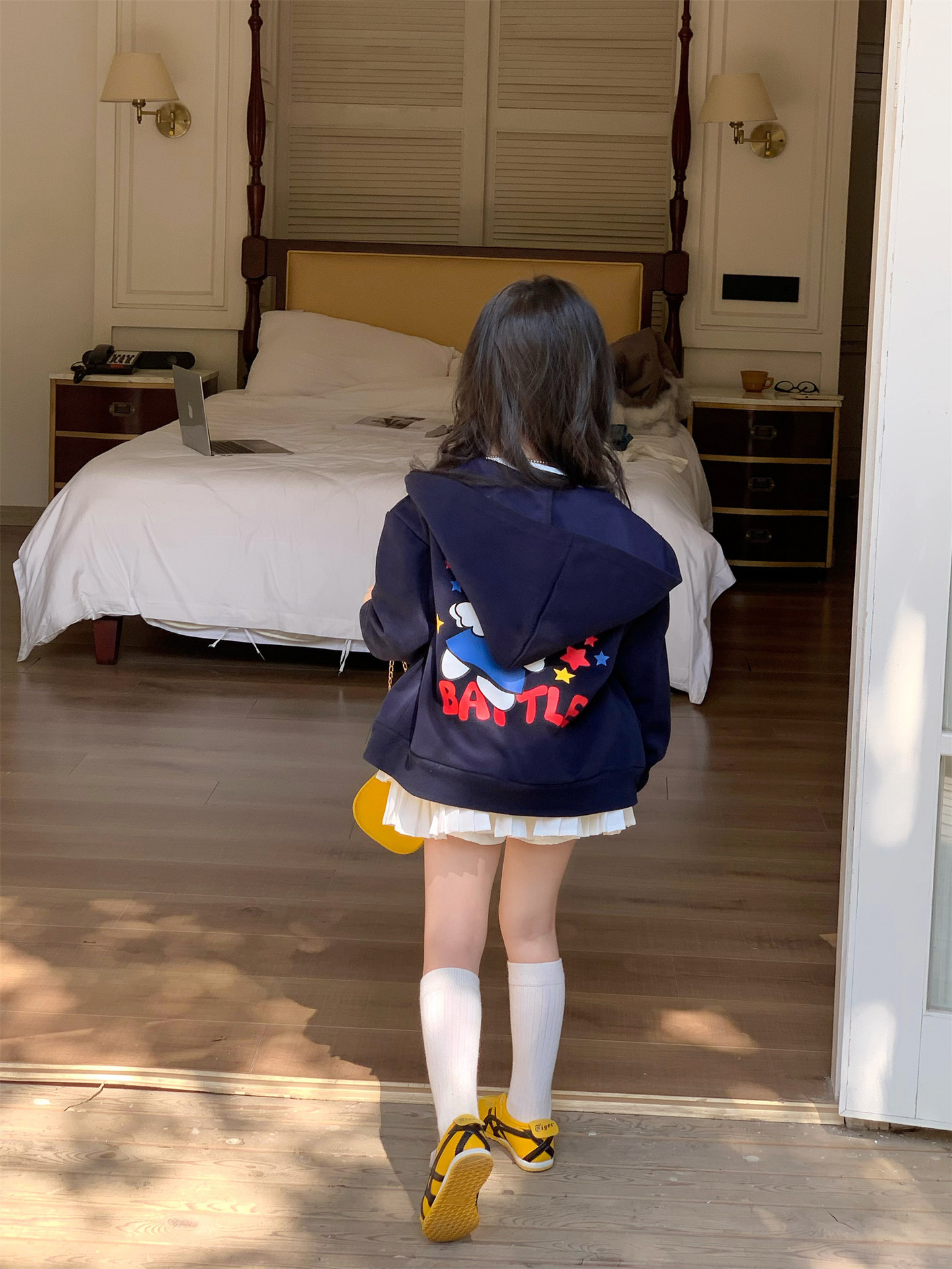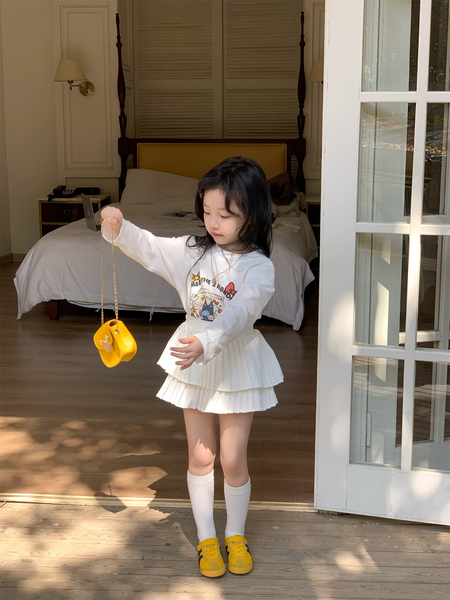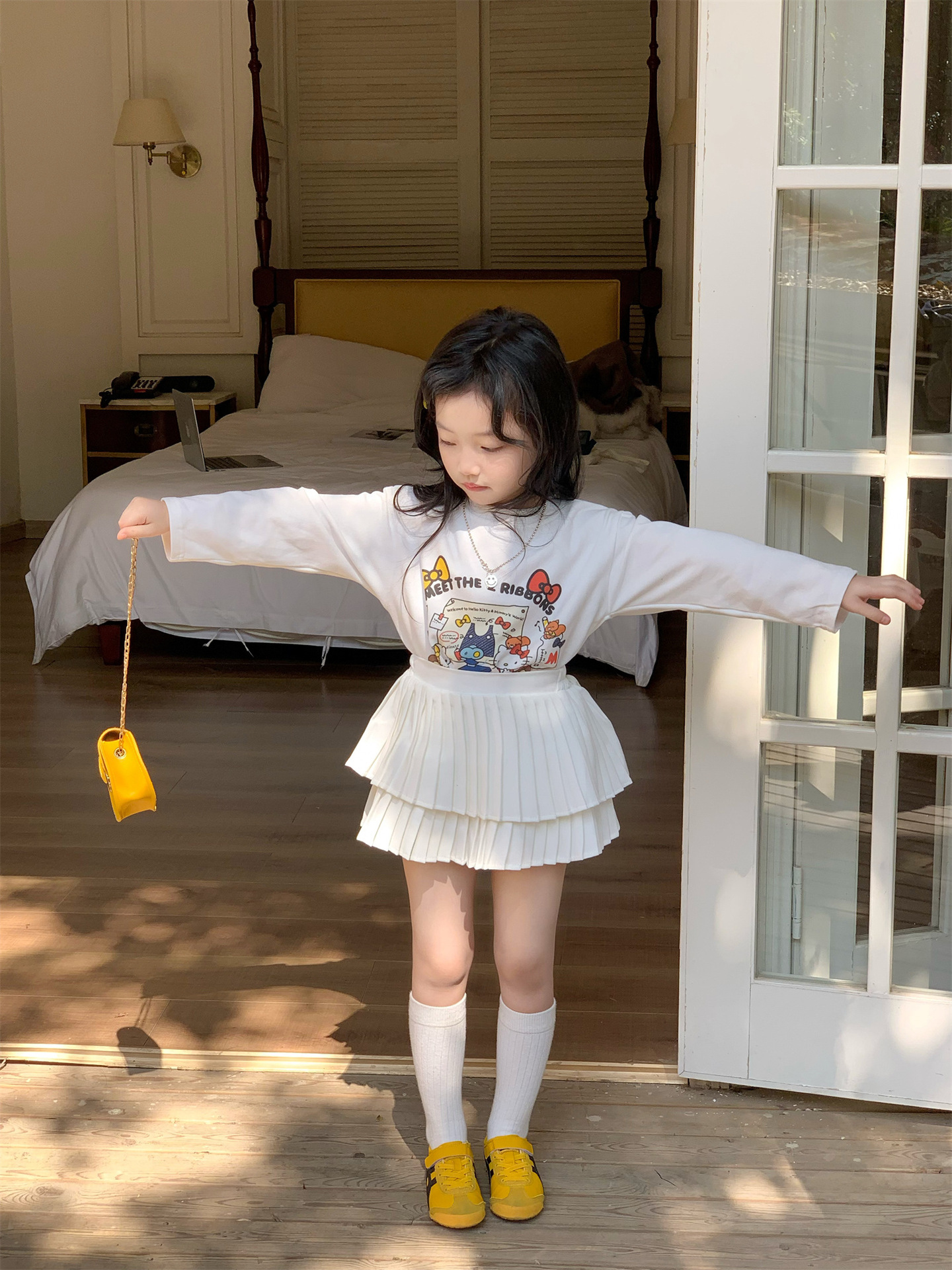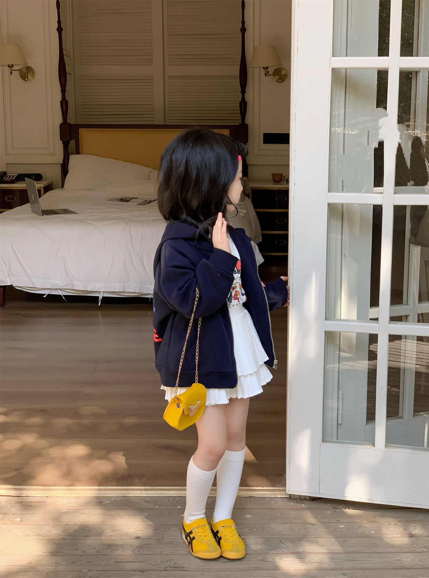 여아 2025 가을 신상 여아 만화 캐릭터 후드 재킷+긴팔 티셔츠+러플 스커트 팬츠 3종 세트