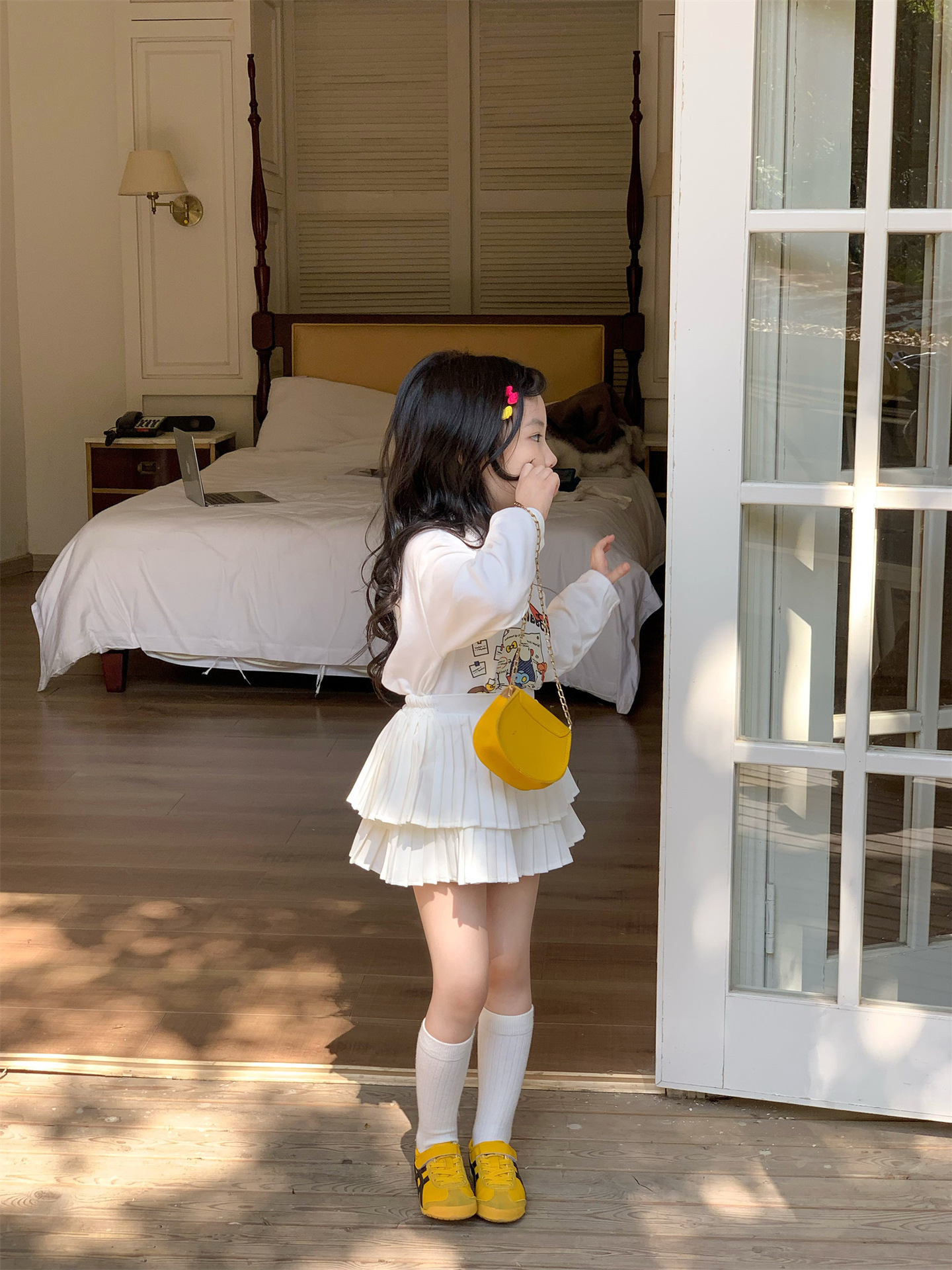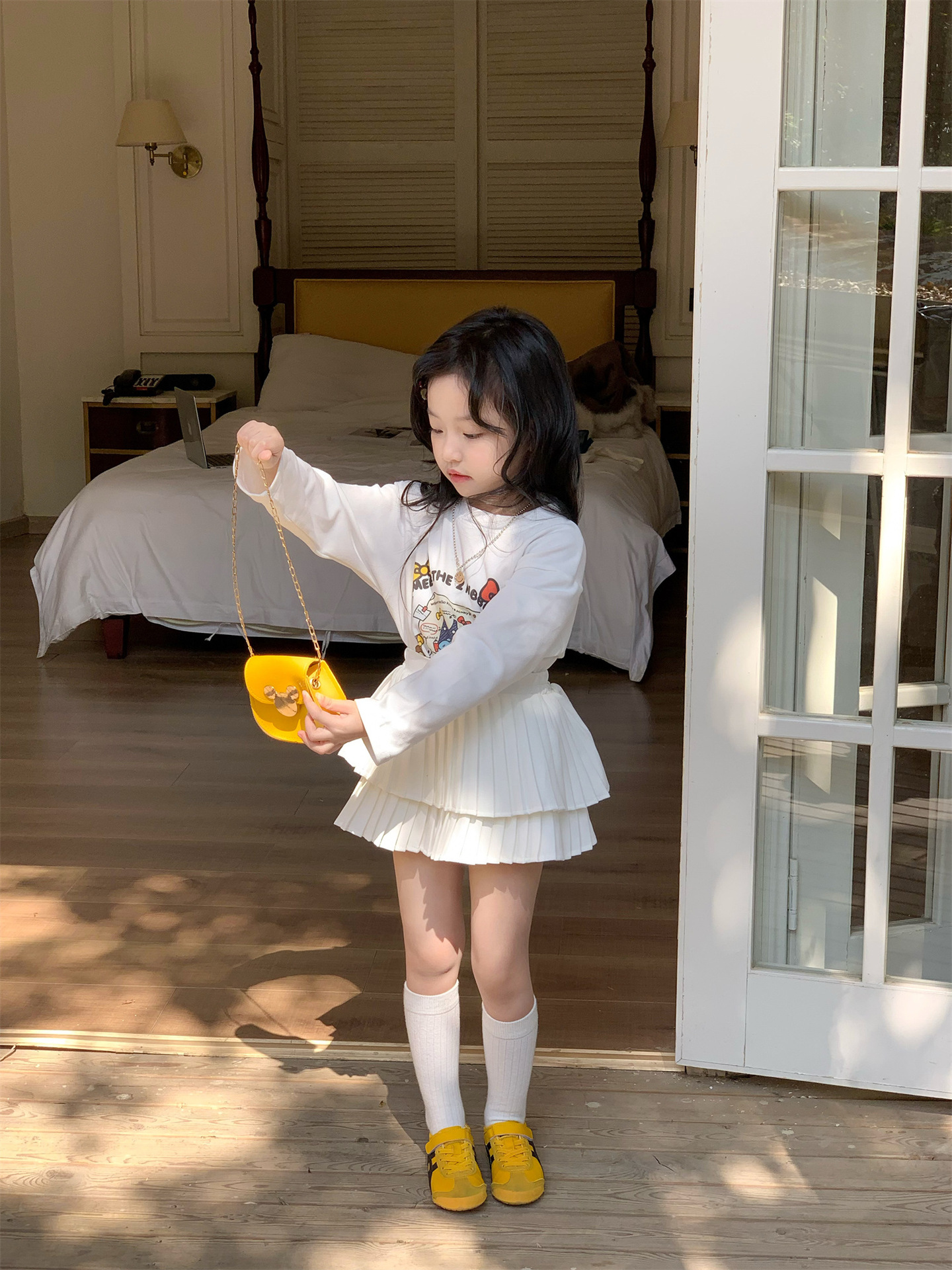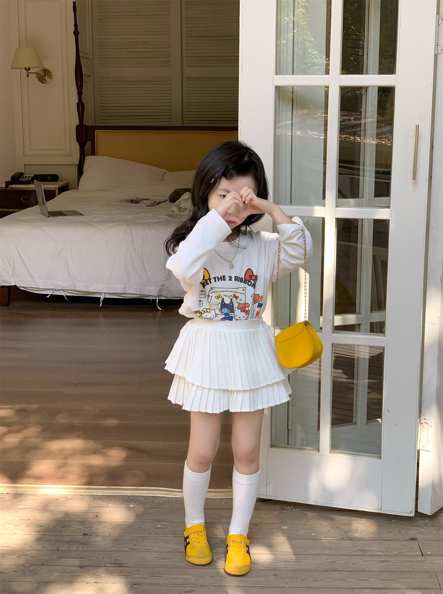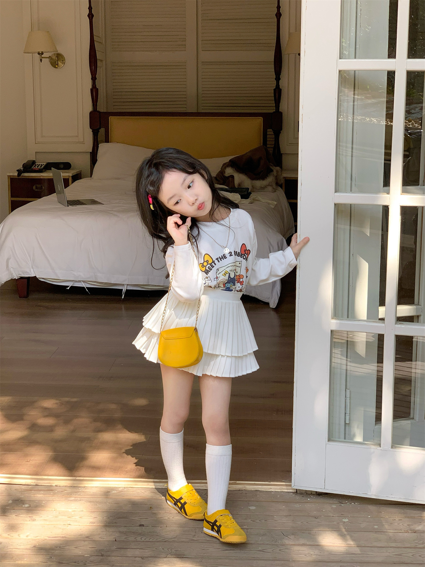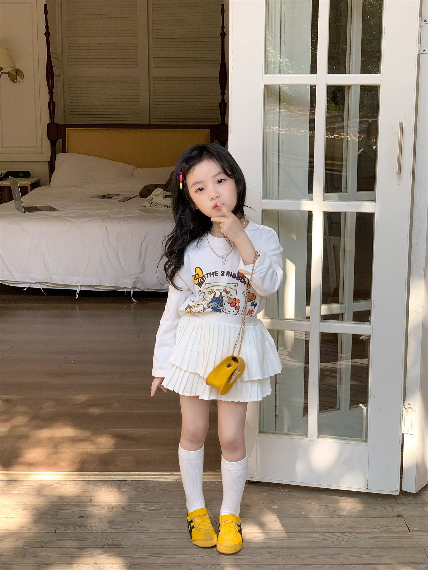 여아 2025 가을 신상 여아 만화 캐릭터 후드 재킷+긴팔 티셔츠+러플 스커트 팬츠 3종 세트