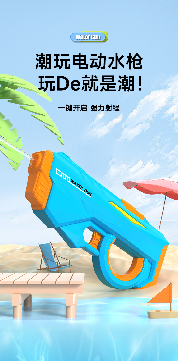 새로운 전동 물총, 완전 자동 연사, 물놀이, 해변 물총, 물싸움, 남아 여아 어린이 장난감, 물 펌프