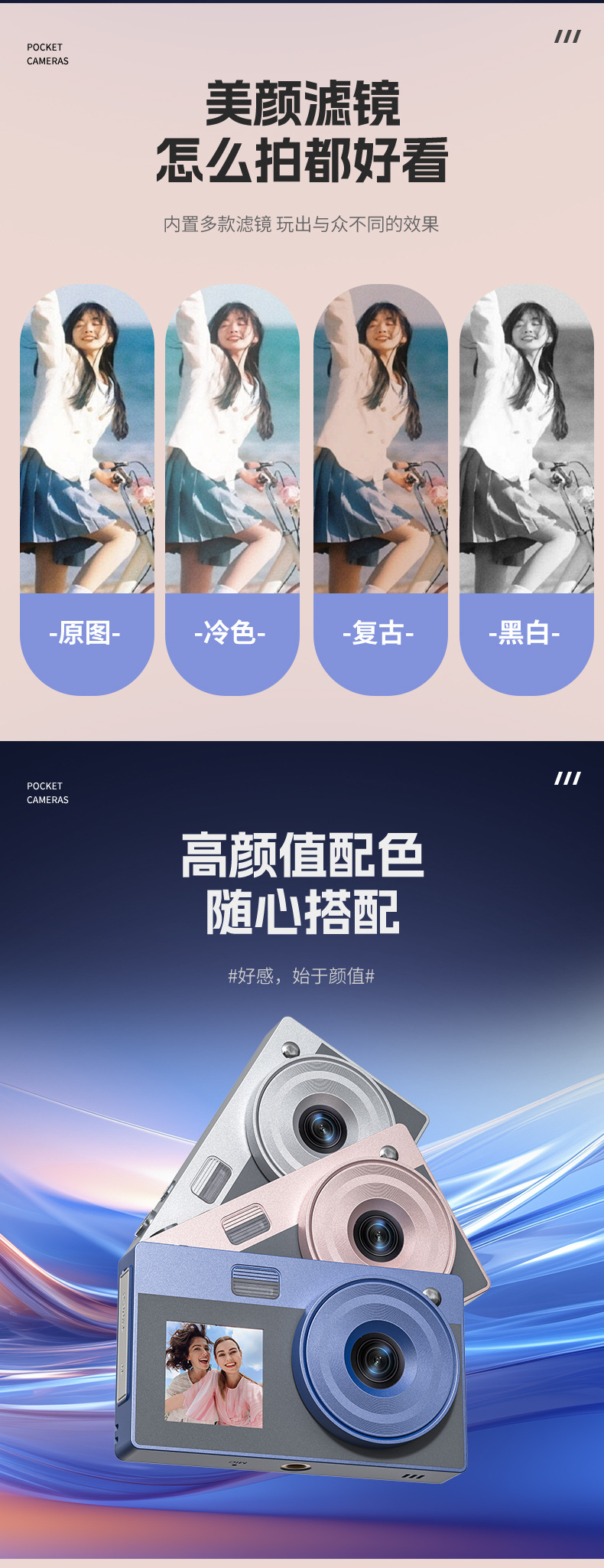 새로운 국경 개인 모델 듀얼 스크린 디지털 카메라 CCD 카드 기계 야외 휴대용 카메라 안티 쉐이크 스포츠 카메라