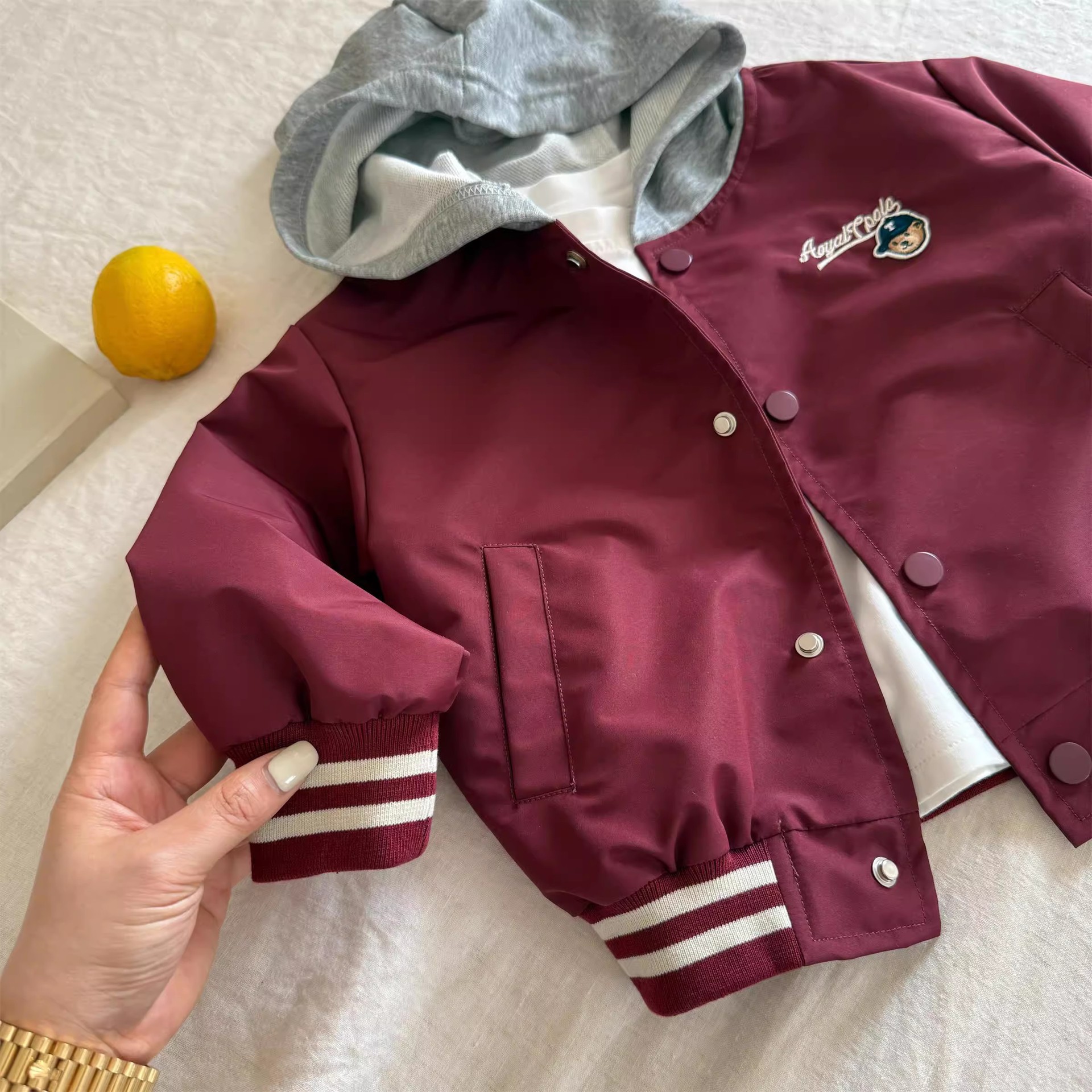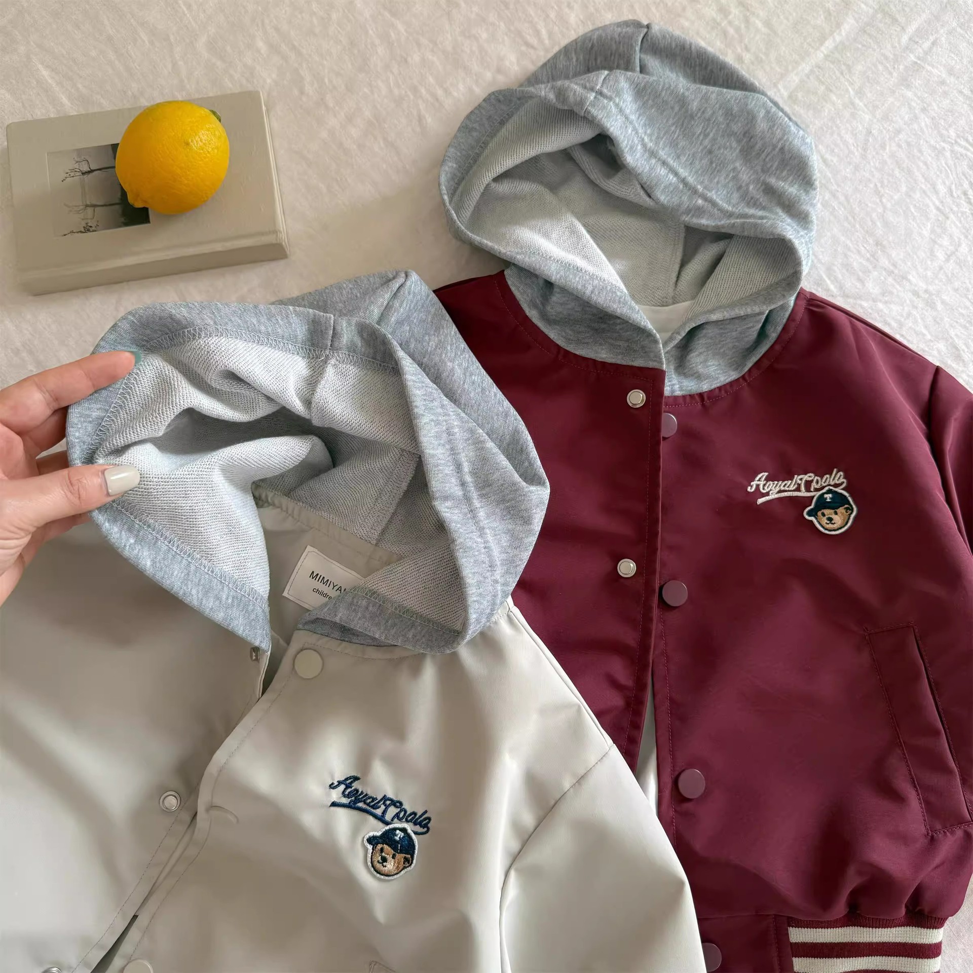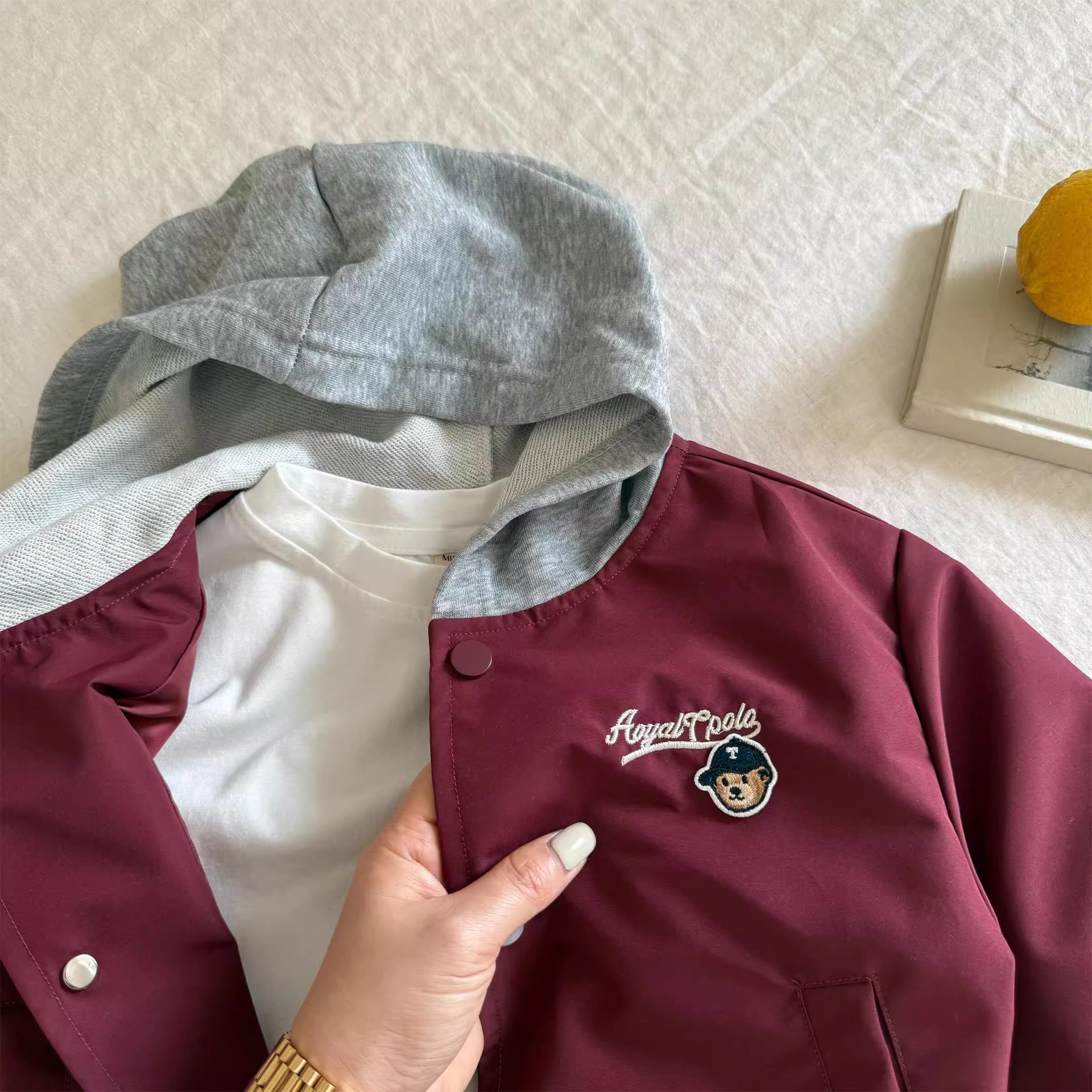 어린이 코트 2025 봄 새 소년 소녀 자수 곰 자켓 소년 소녀 아기 가짜 투피스 코트 패션 브랜드스토어 가기