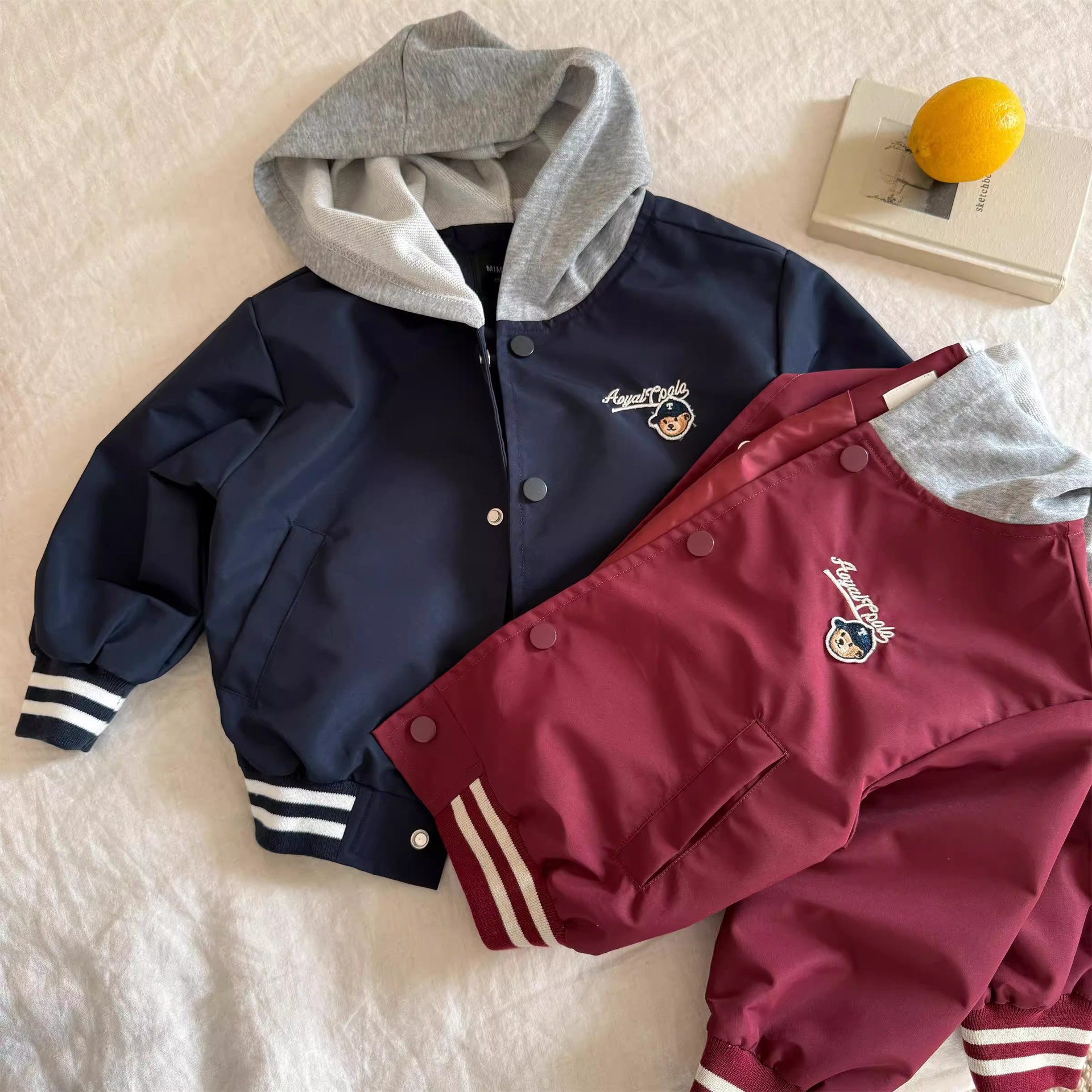 어린이 코트 2025 봄 새 소년 소녀 자수 곰 자켓 소년 소녀 아기 가짜 투피스 코트 패션 브랜드