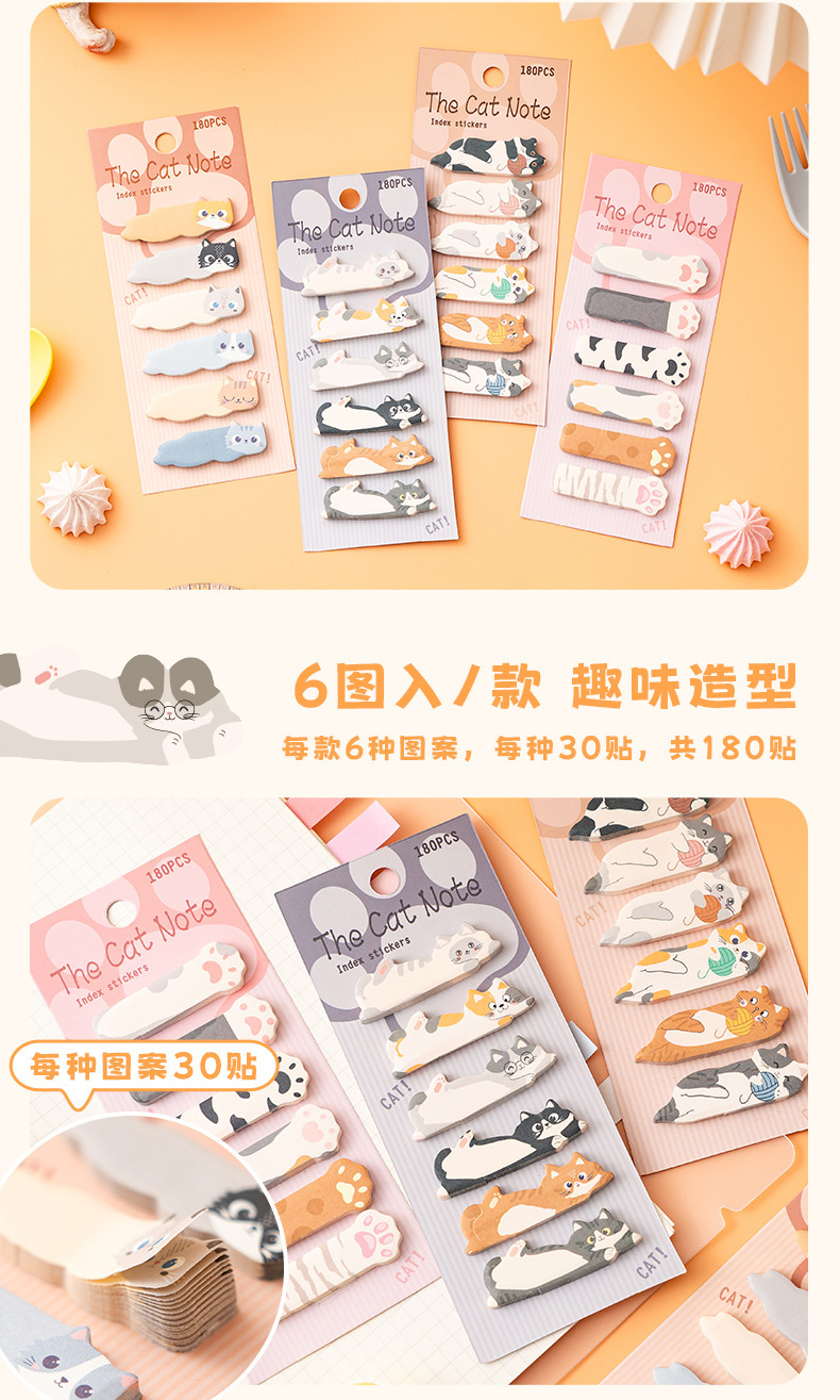 고양이 노트 더블 검지 색인 스티커 귀여운 만화 학생 포스트잇 노트 손 계정 분류 마커 작은 스트립 N 스티커스토어 가기