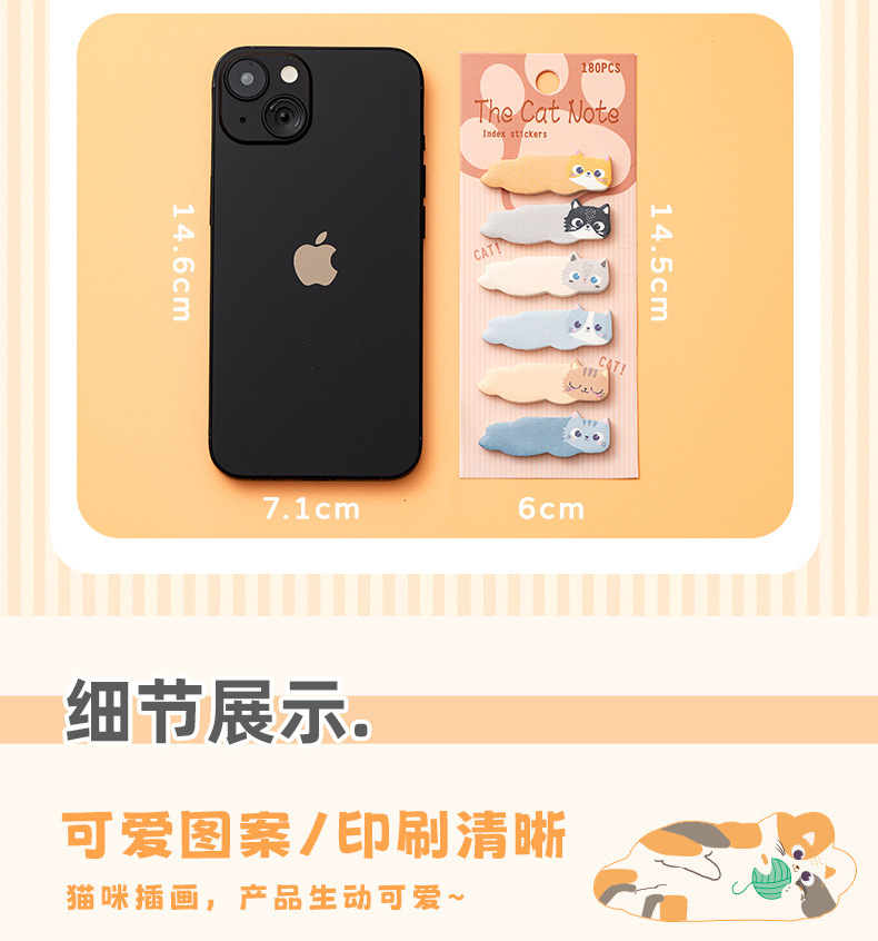 고양이 노트 더블 검지 색인 스티커 귀여운 만화 학생 포스트잇 노트 손 계정 분류 마커 작은 스트립 N 스티커