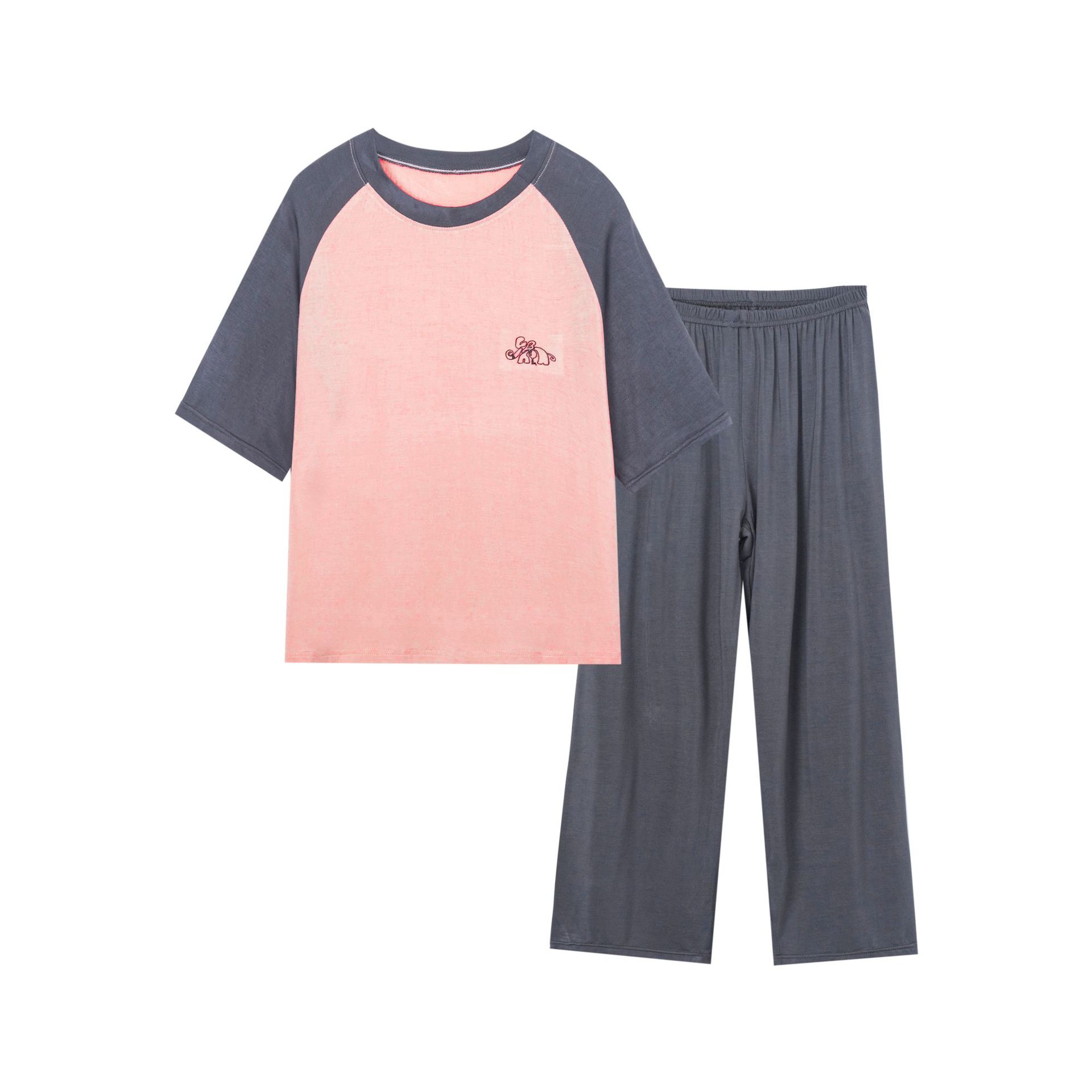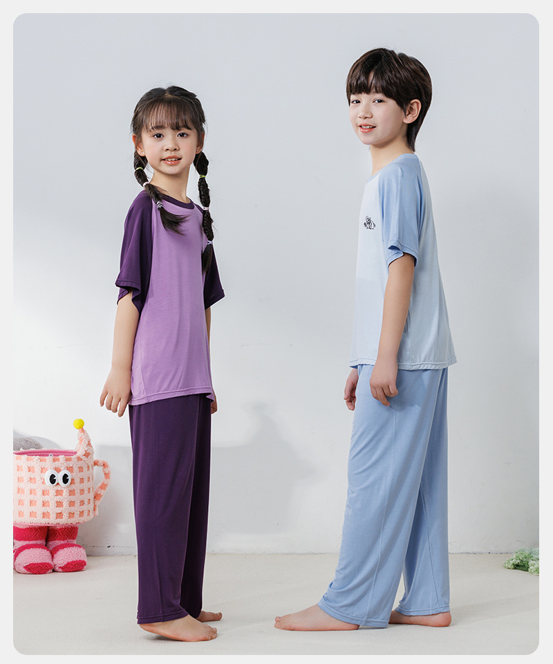 아동용 홈웨어 세트, 7부 소매 긴바지, 얇은 잠옷, 남아 여아용, 래글런 컬러블록 에어컨복, 모달 소재스토어 가기