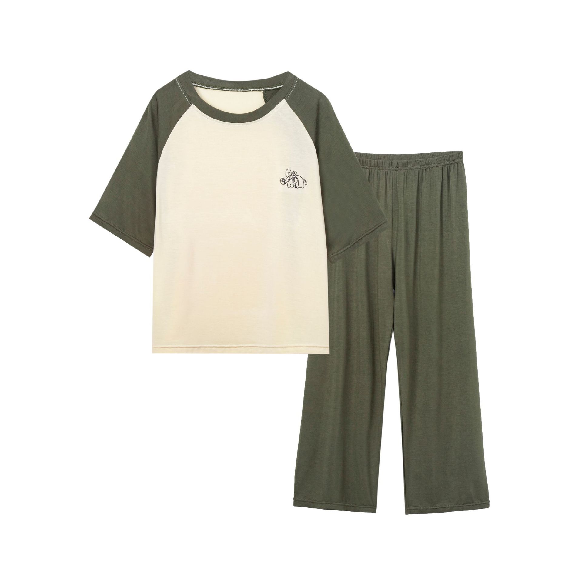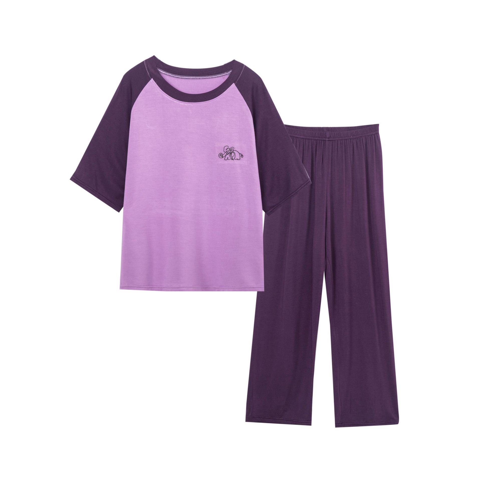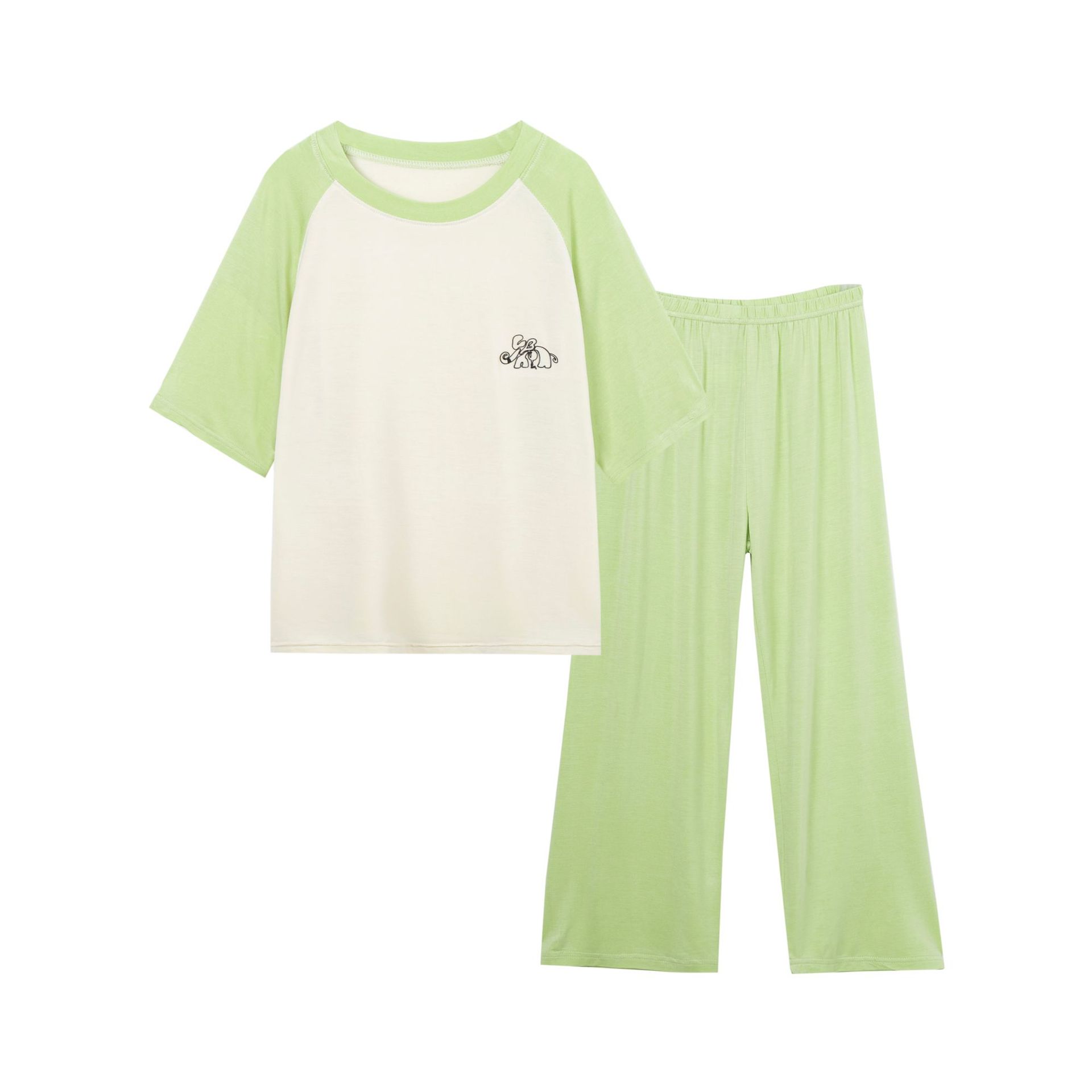 아동용 홈웨어 세트, 7부 소매 긴바지, 얇은 잠옷, 남아 여아용, 래글런 컬러블록 에어컨복, 모달 소재