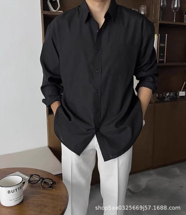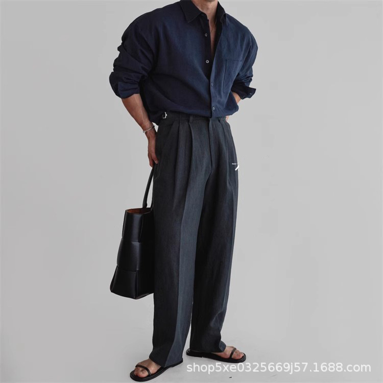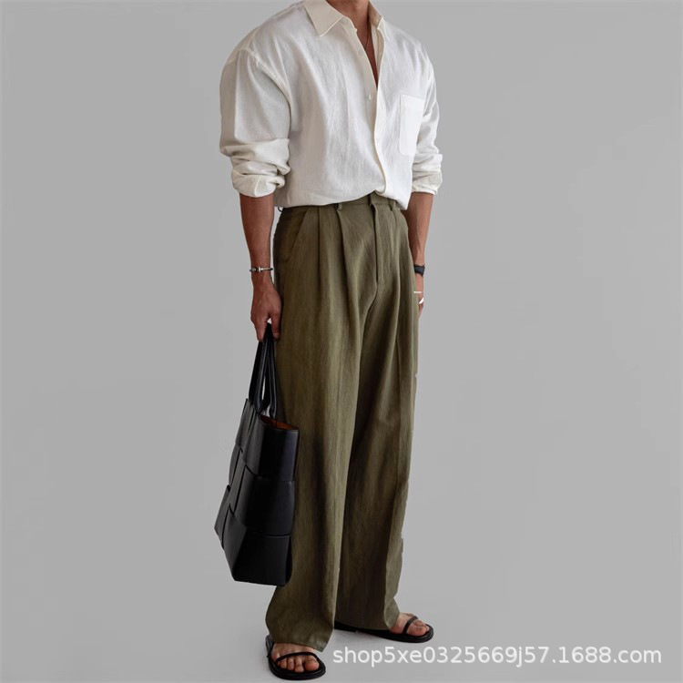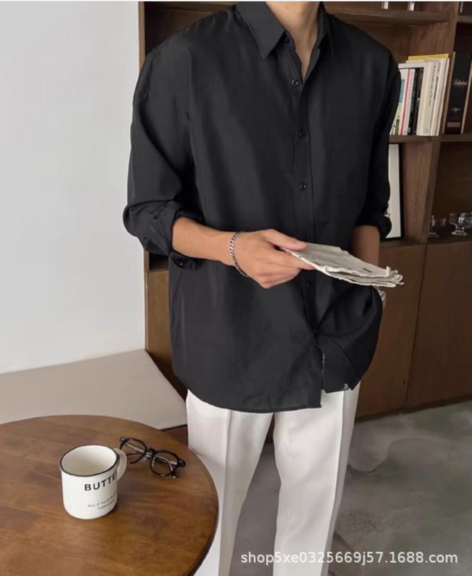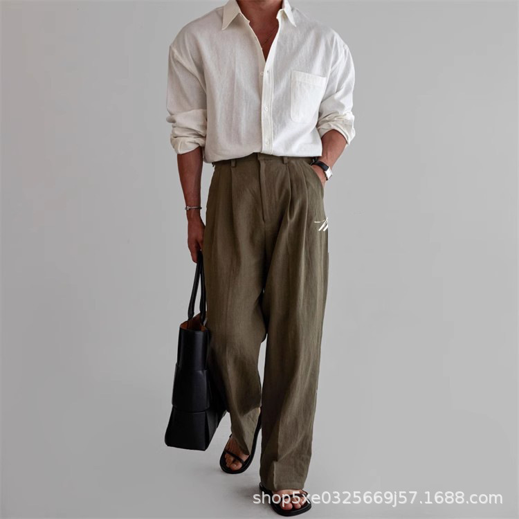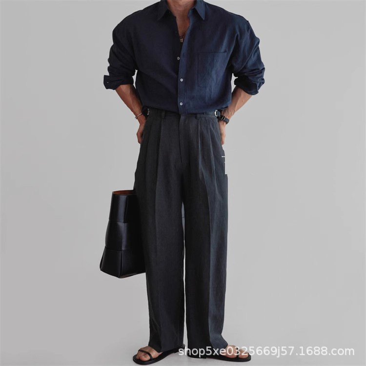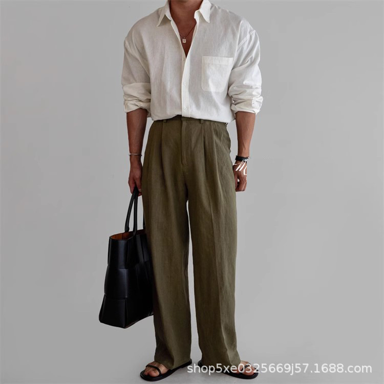 유럽면 리넨 화이트 셔츠 남성용 하이 엔드 루즈 긴팔 태양 보호 의류 린넨 통기성 셔츠 포켓 작업복 셔츠스토어 가기