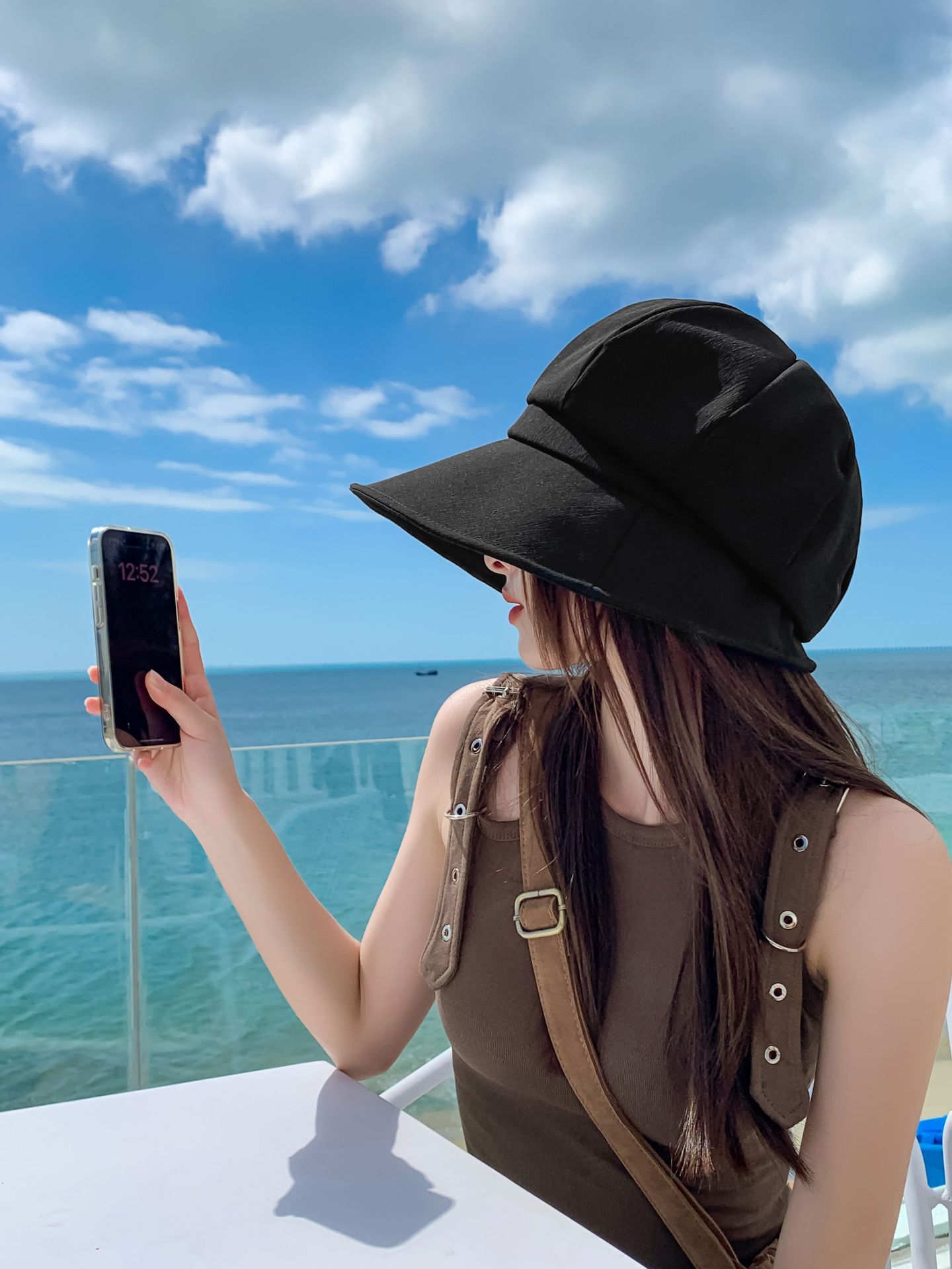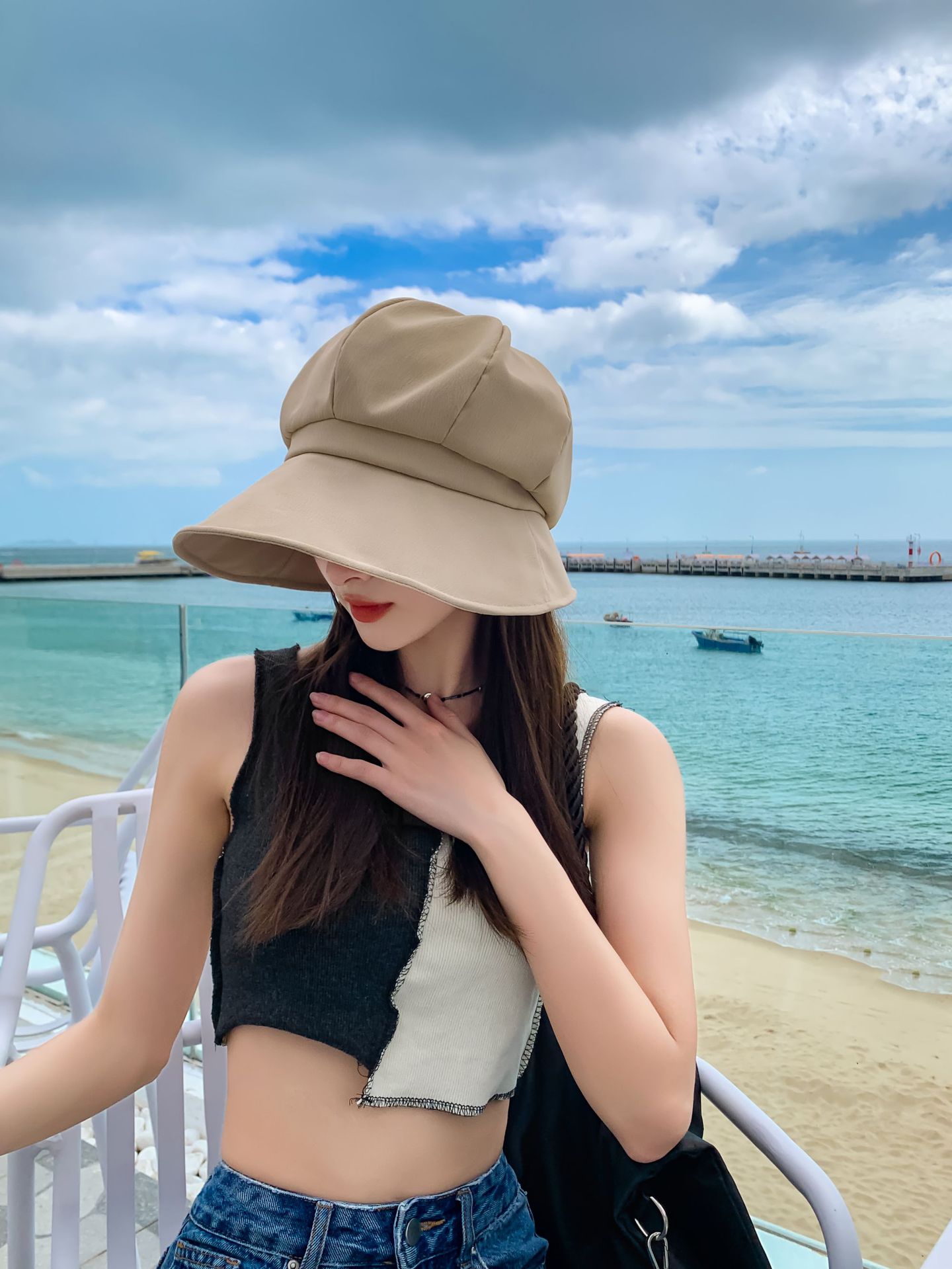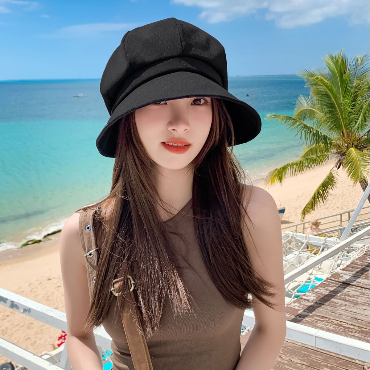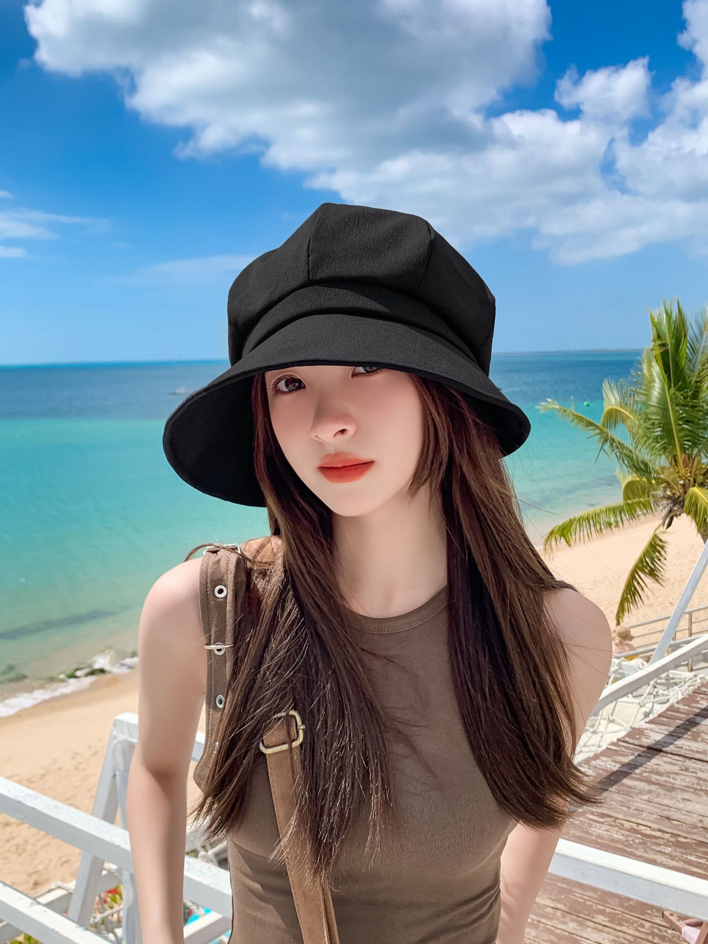 대형 브림 자외선 차단제 모자 어린이 여름 안티 자외선 태양 모자 블랙 올 매치 작은 팔각형 어부 모자스토어 가기